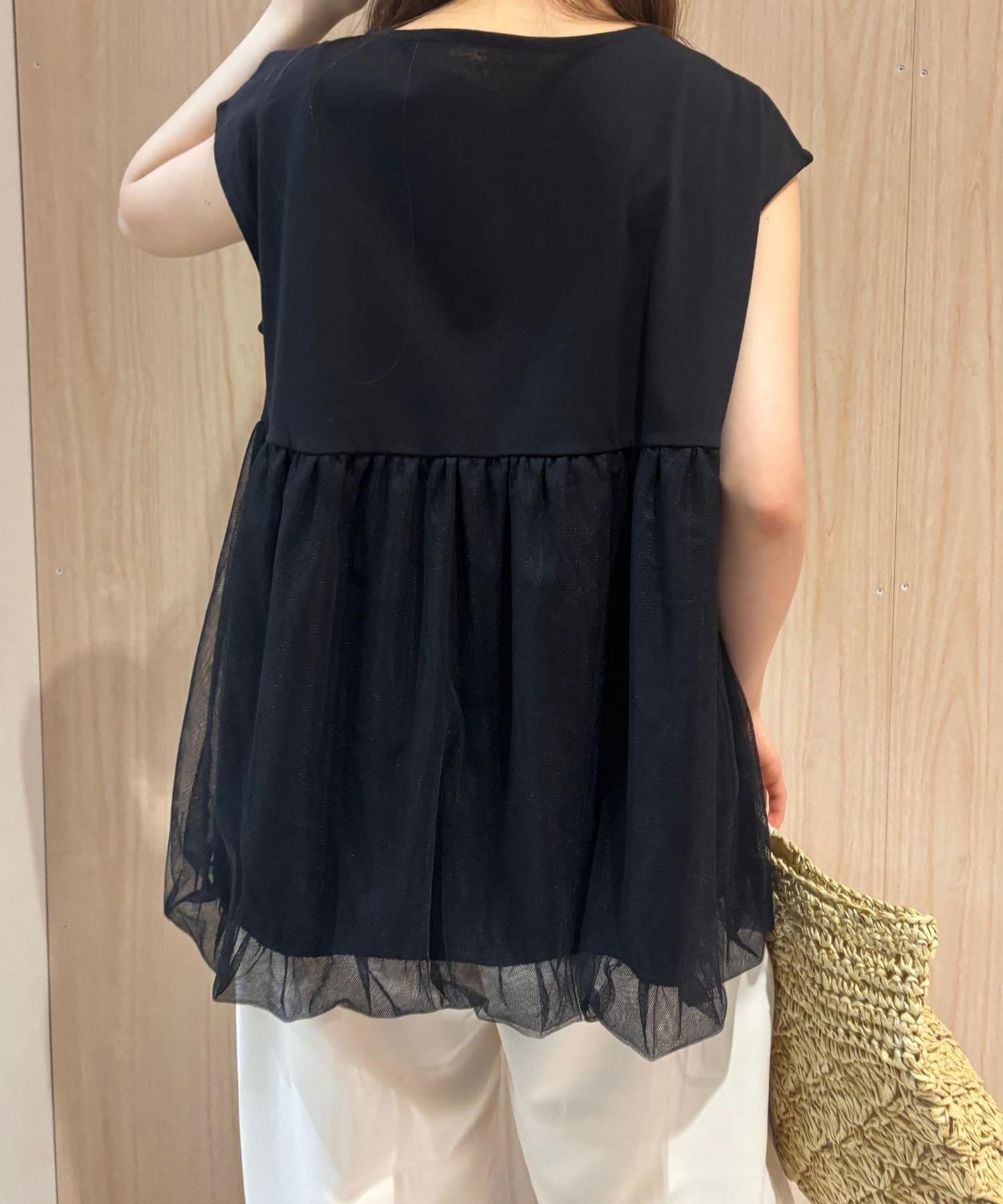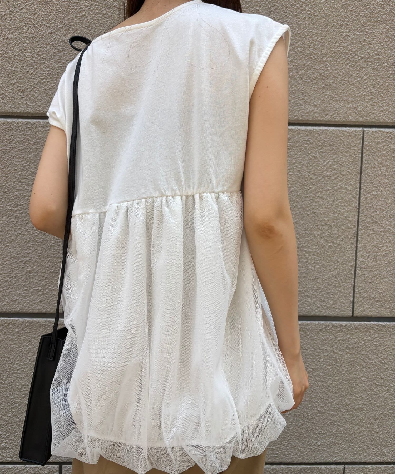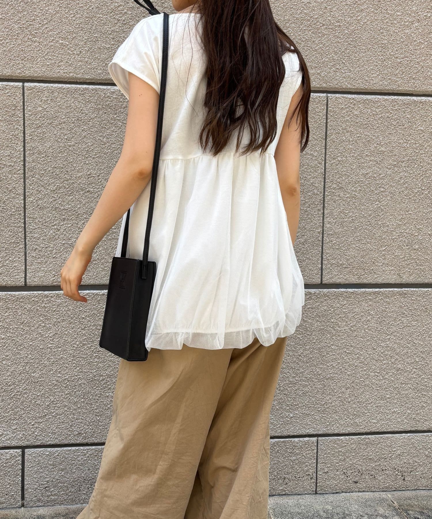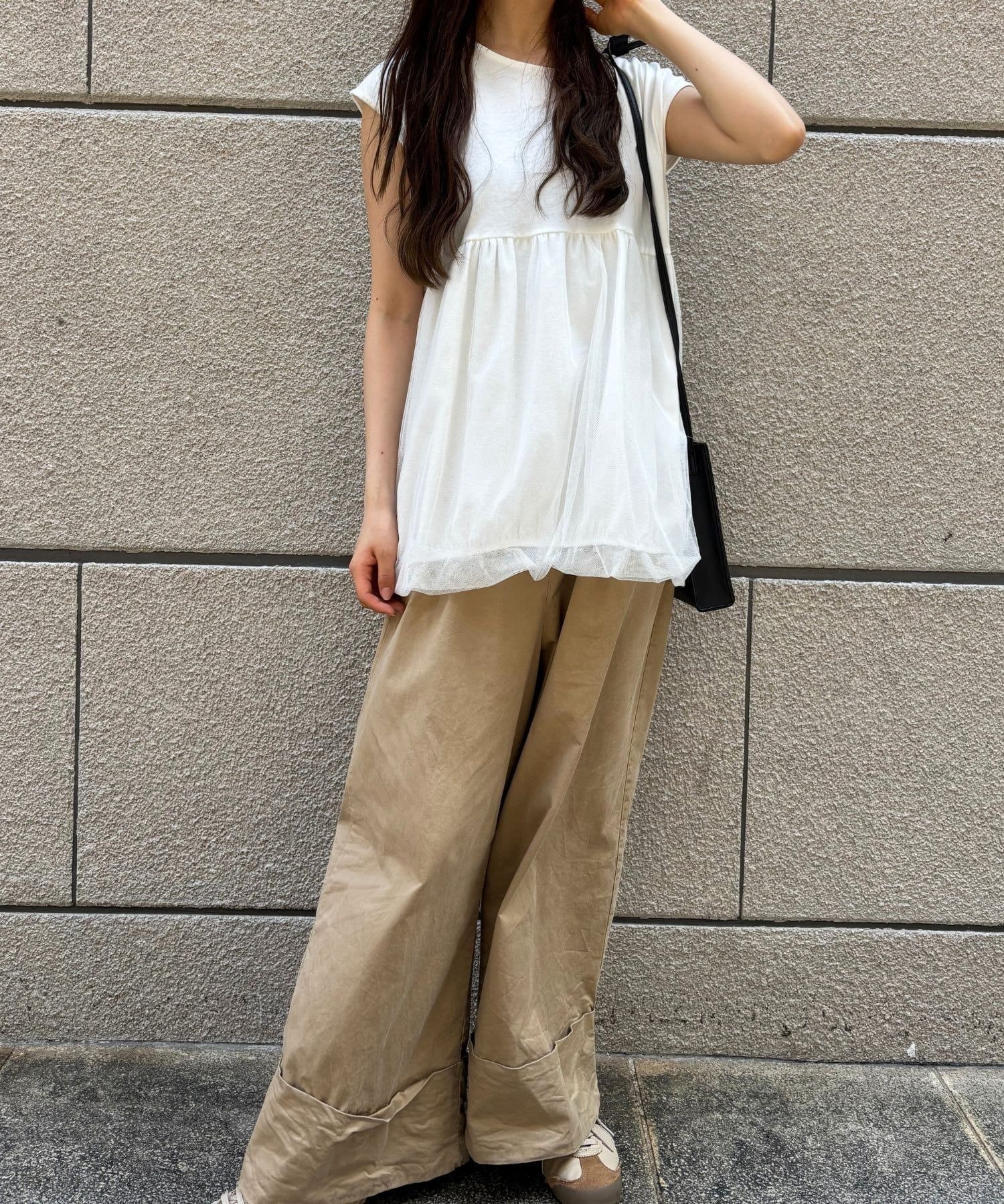 ふんわりと軽やかなチュールが、上品な甘さをプラス。カジュアルになりすぎず、オフィスにも、ちょっとしたお出かけにも、シーンを選ばず着回せる万能アイテムです。