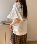 甘すぎない、大人っぽいフリルが、カジュアルなTシャツにフェミニンさをプラス。