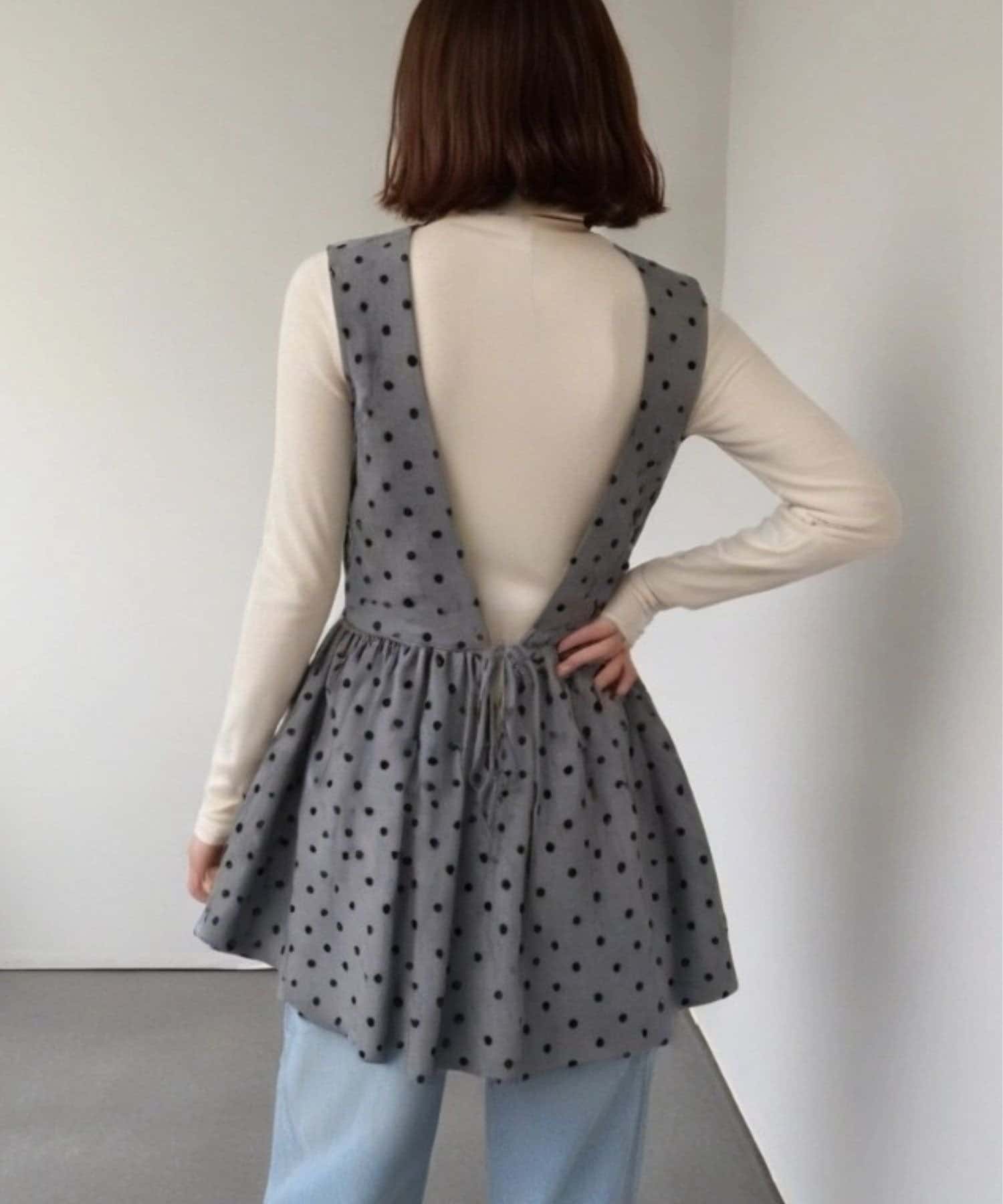 そんなあなたにぜひおすすめしたいのが、このドット柄ペプラムベスト。