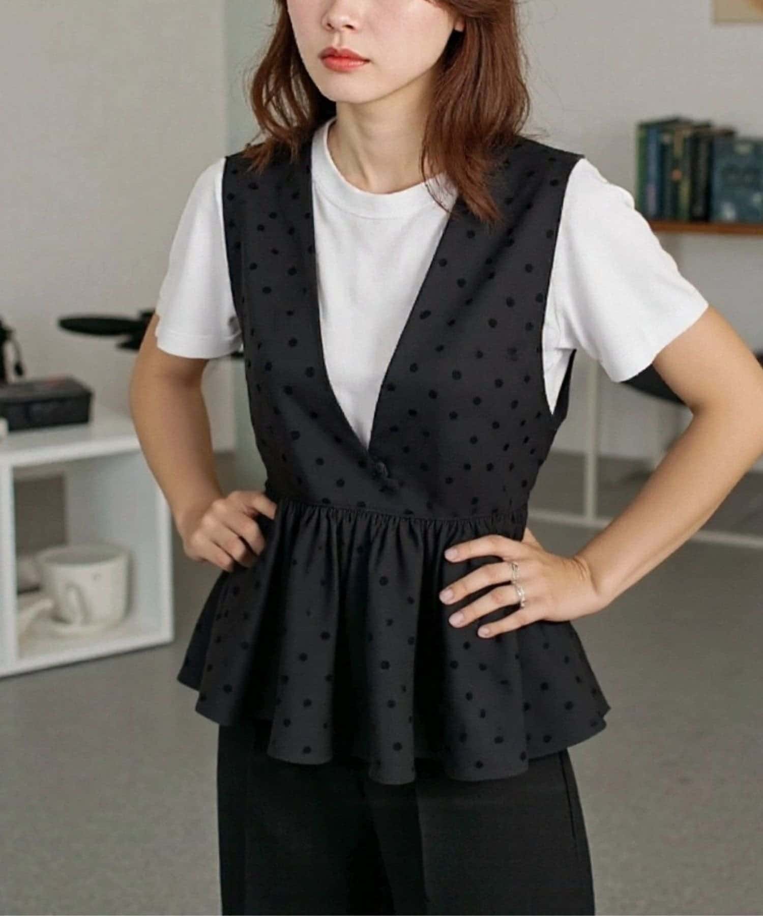 **一点投入で即、旬顔!ドット柄ペプラムベスト**