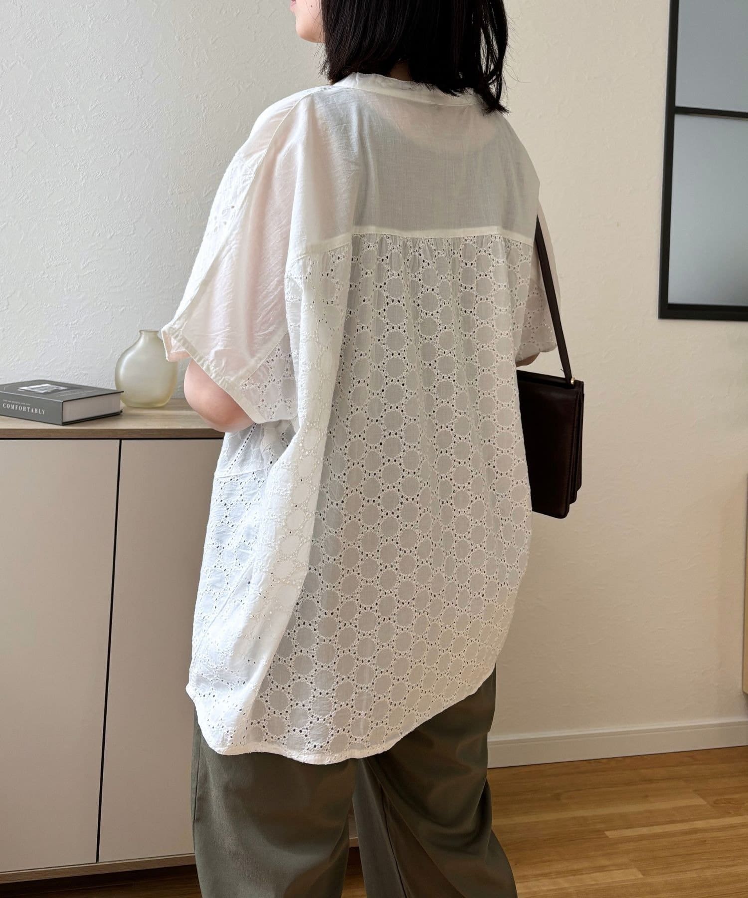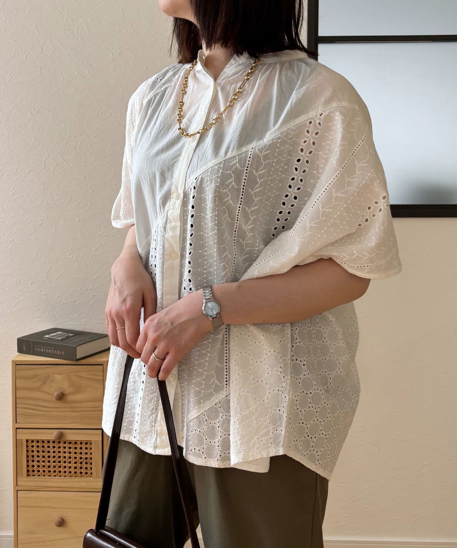 繊細な刺繍:上品で繊細な刺繍が、シンプルなブラウスに華やかさをプラス。大人の女性に似合う、落ち着いた印象を与えます。