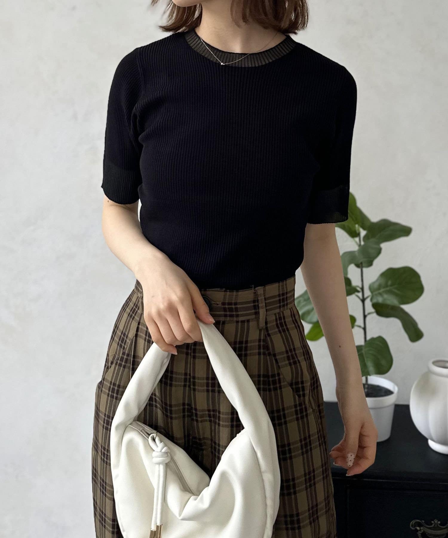 休日にもオフィスにもシーンを選ばない万能アイテム、シアーラインサマーニット