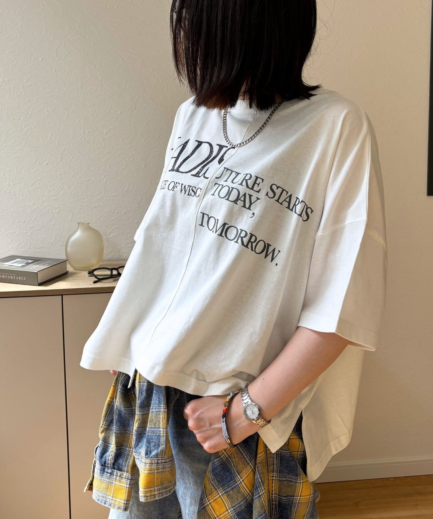 着るだけでこなれ感を演出できる、リメイク風Tシャツ