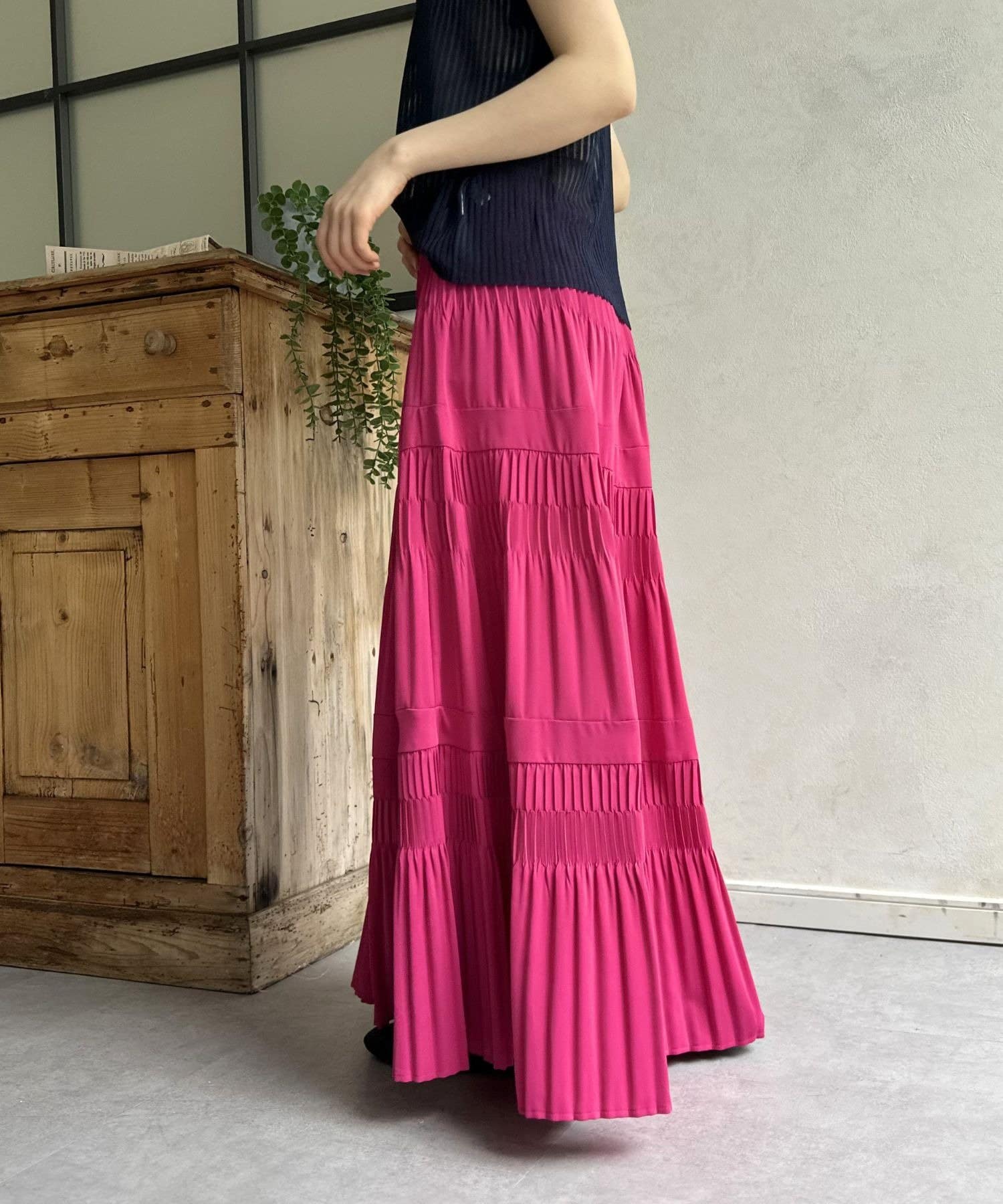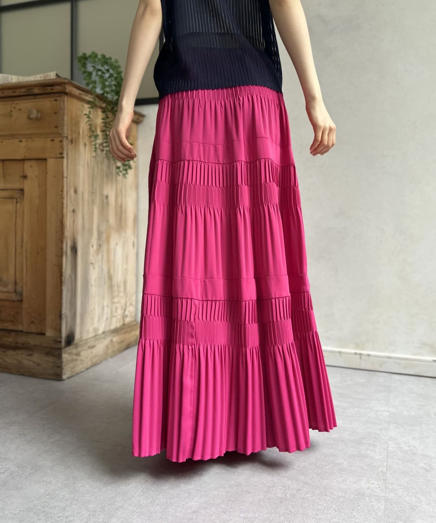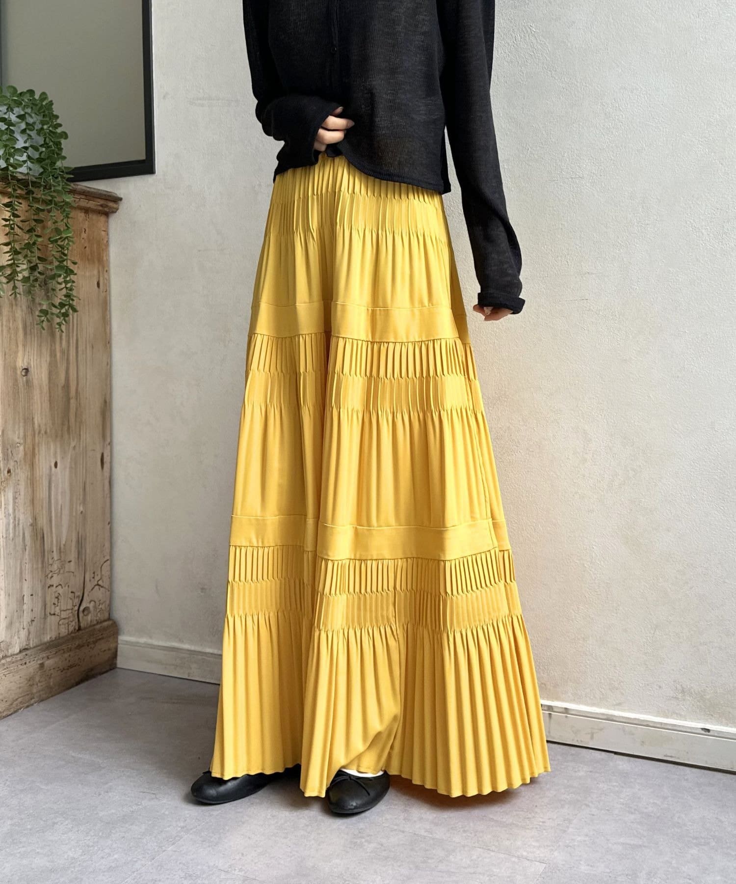 一枚でコーディネートが華やぐ、主役級ティアードプリーツスカート