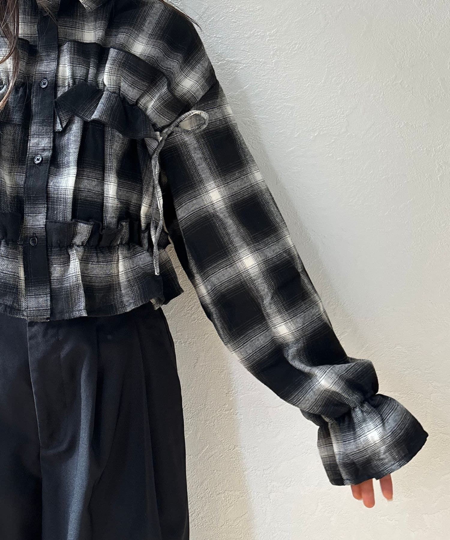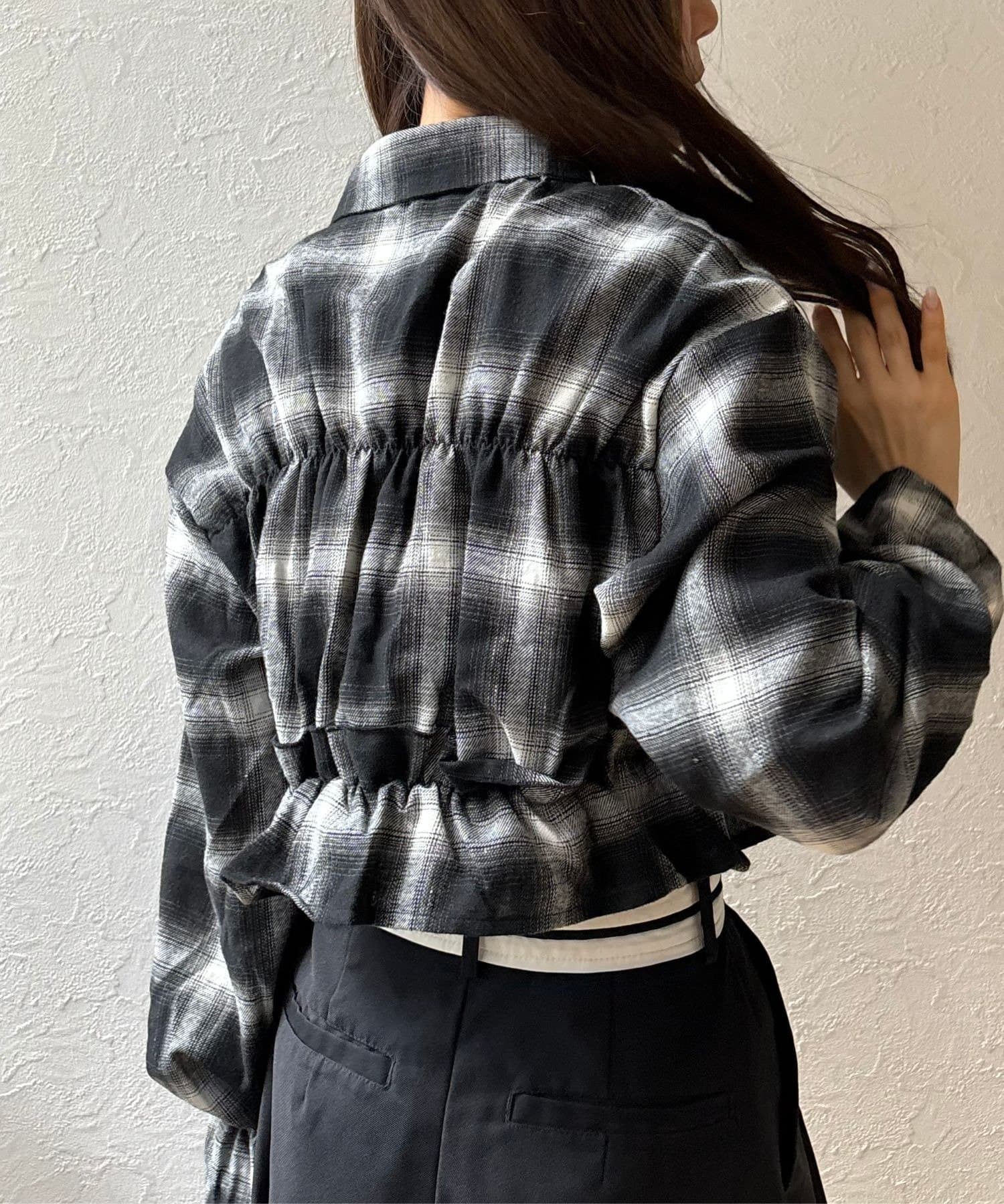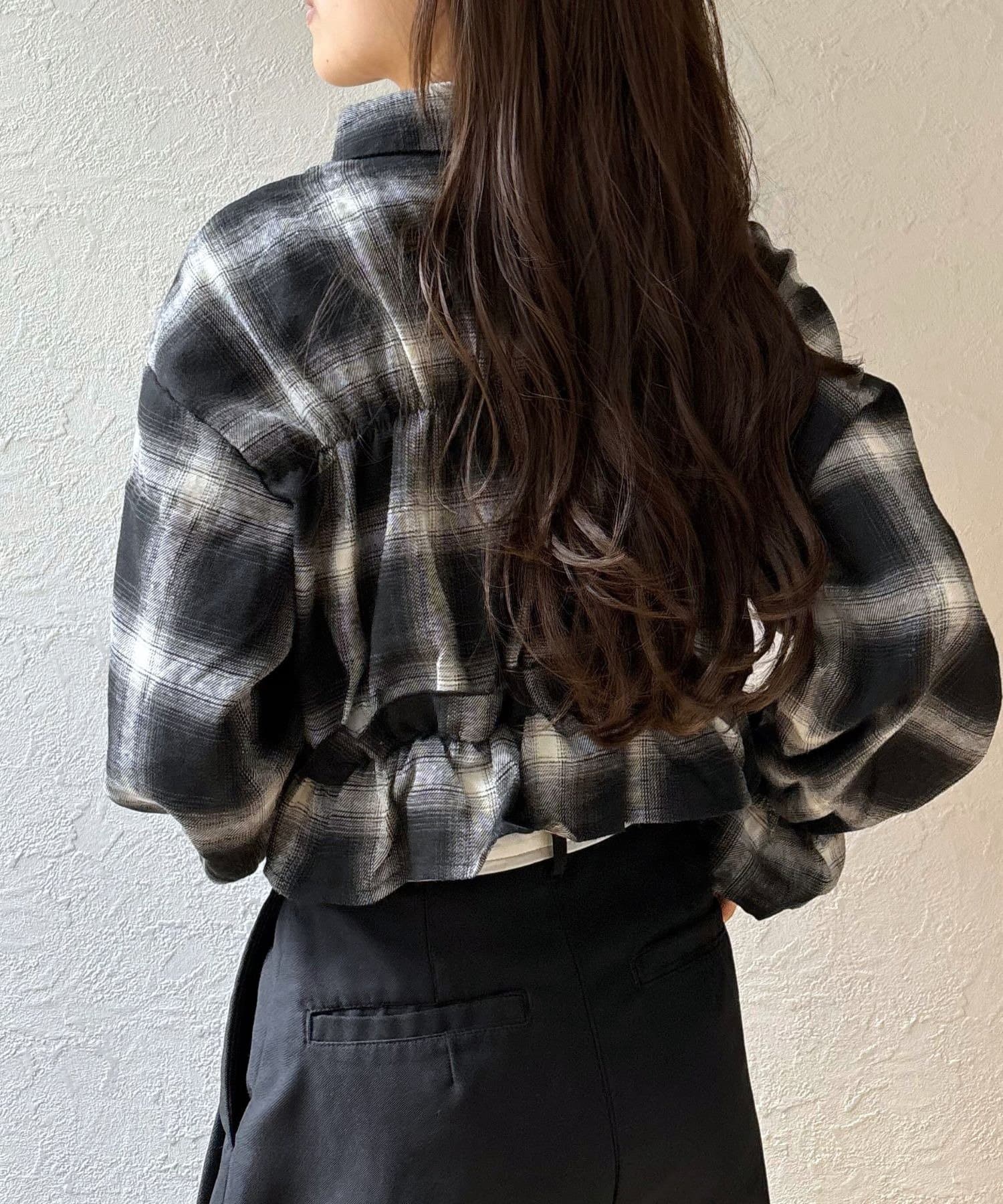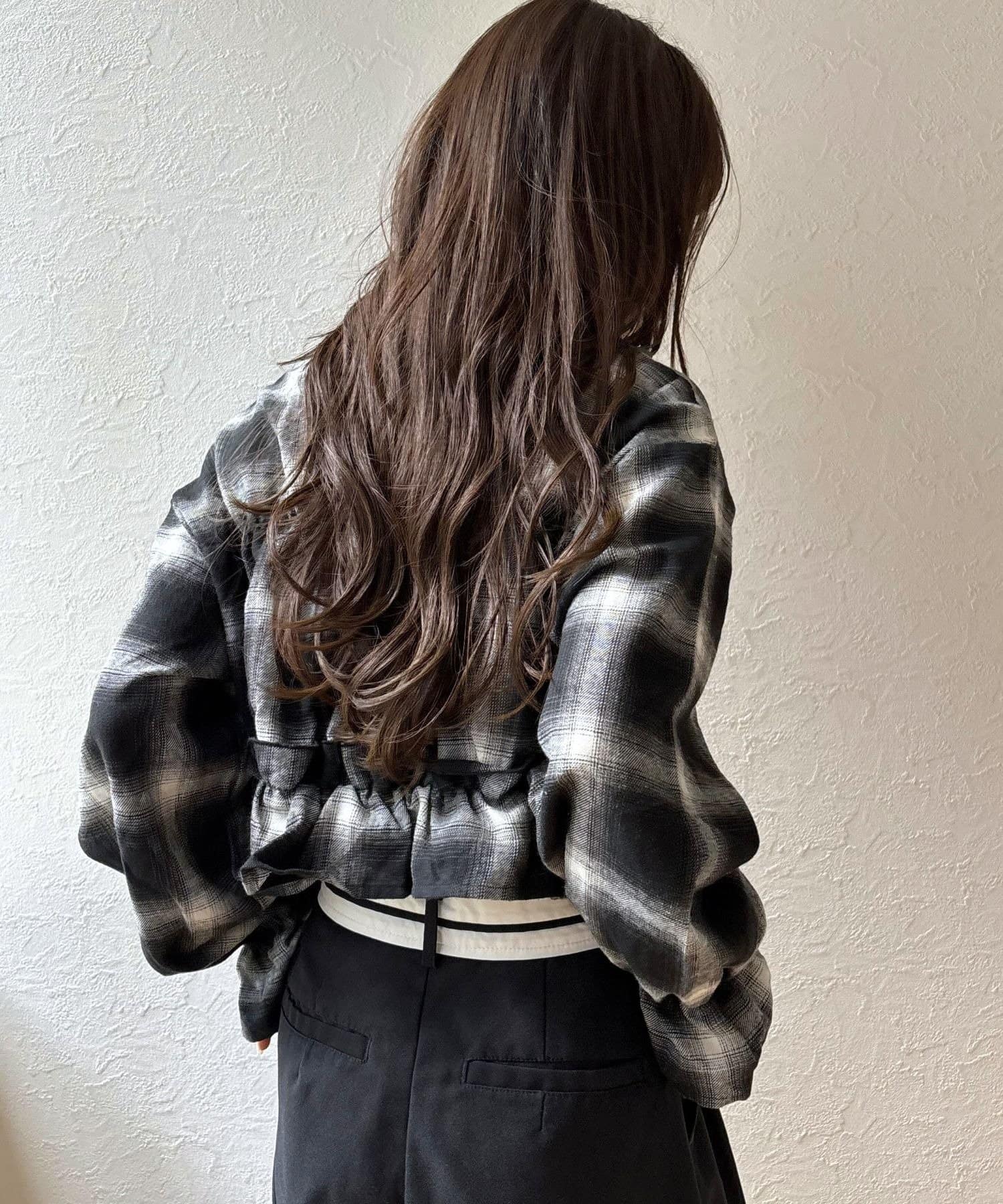 袖のシャーリングが、女性らしいふんわりとしたシルエットを作ります。