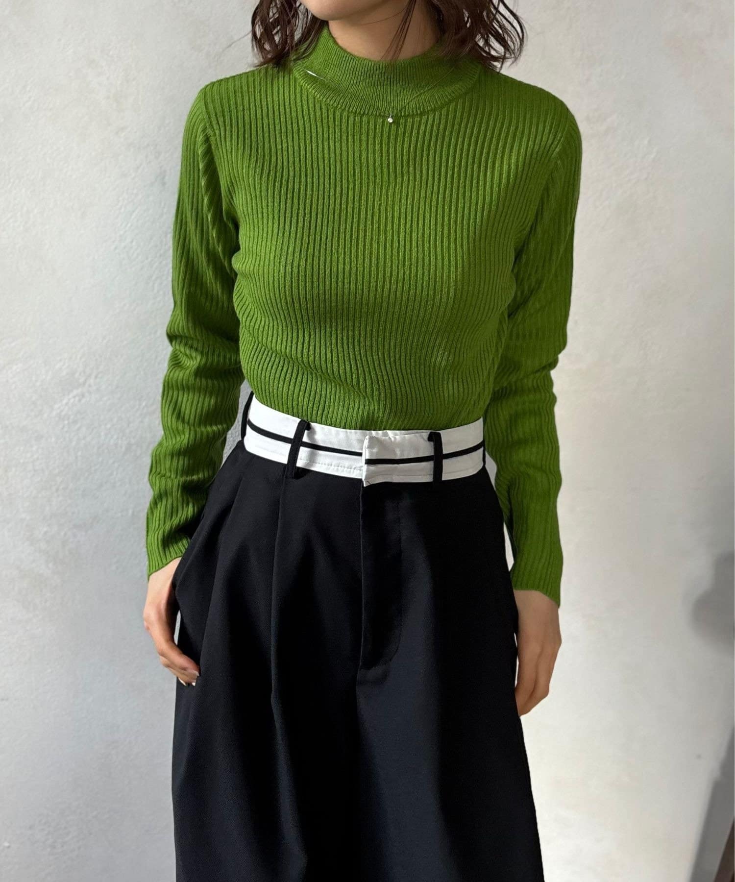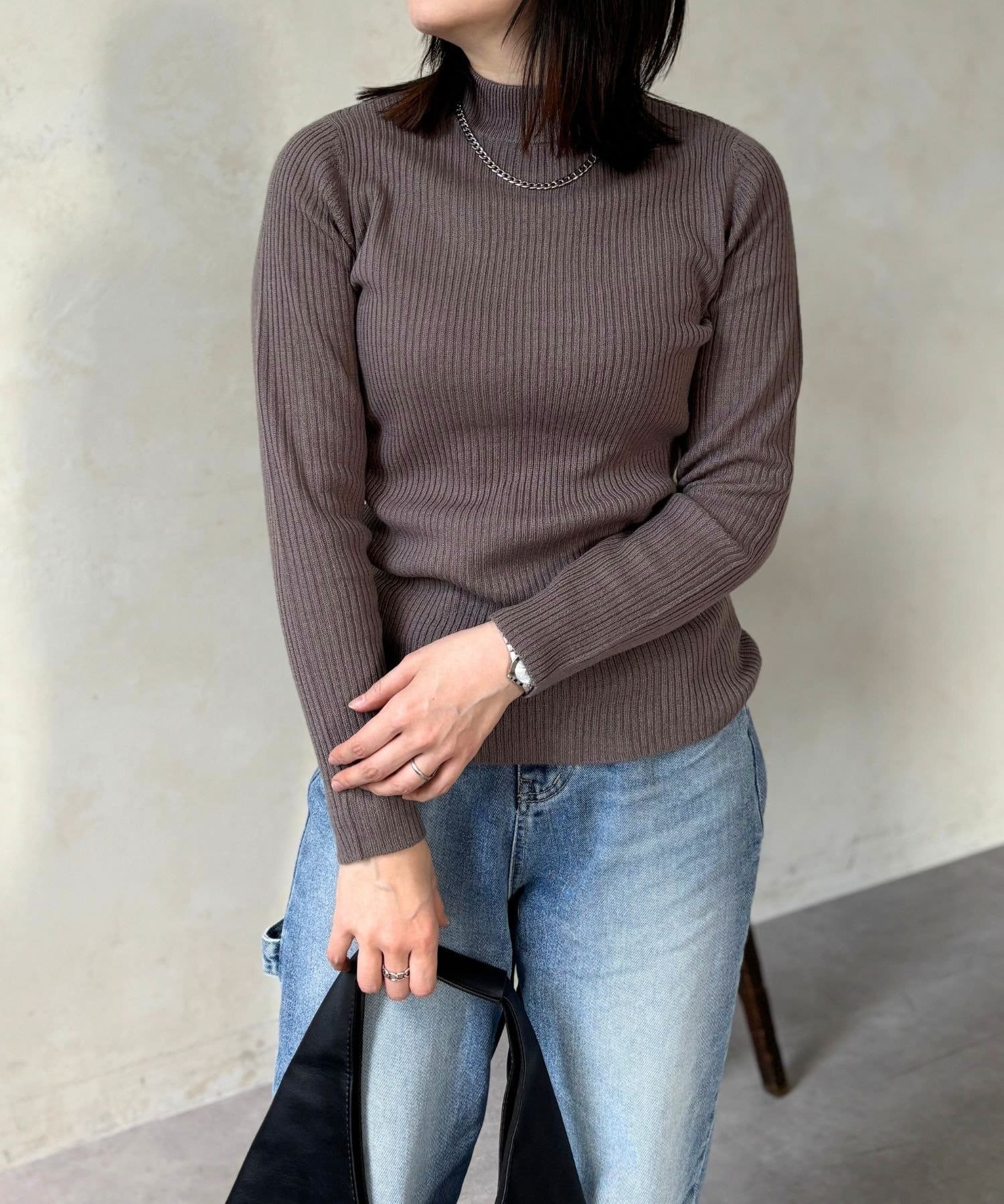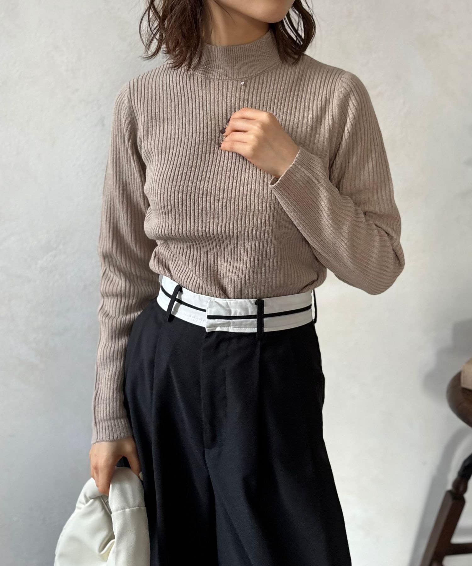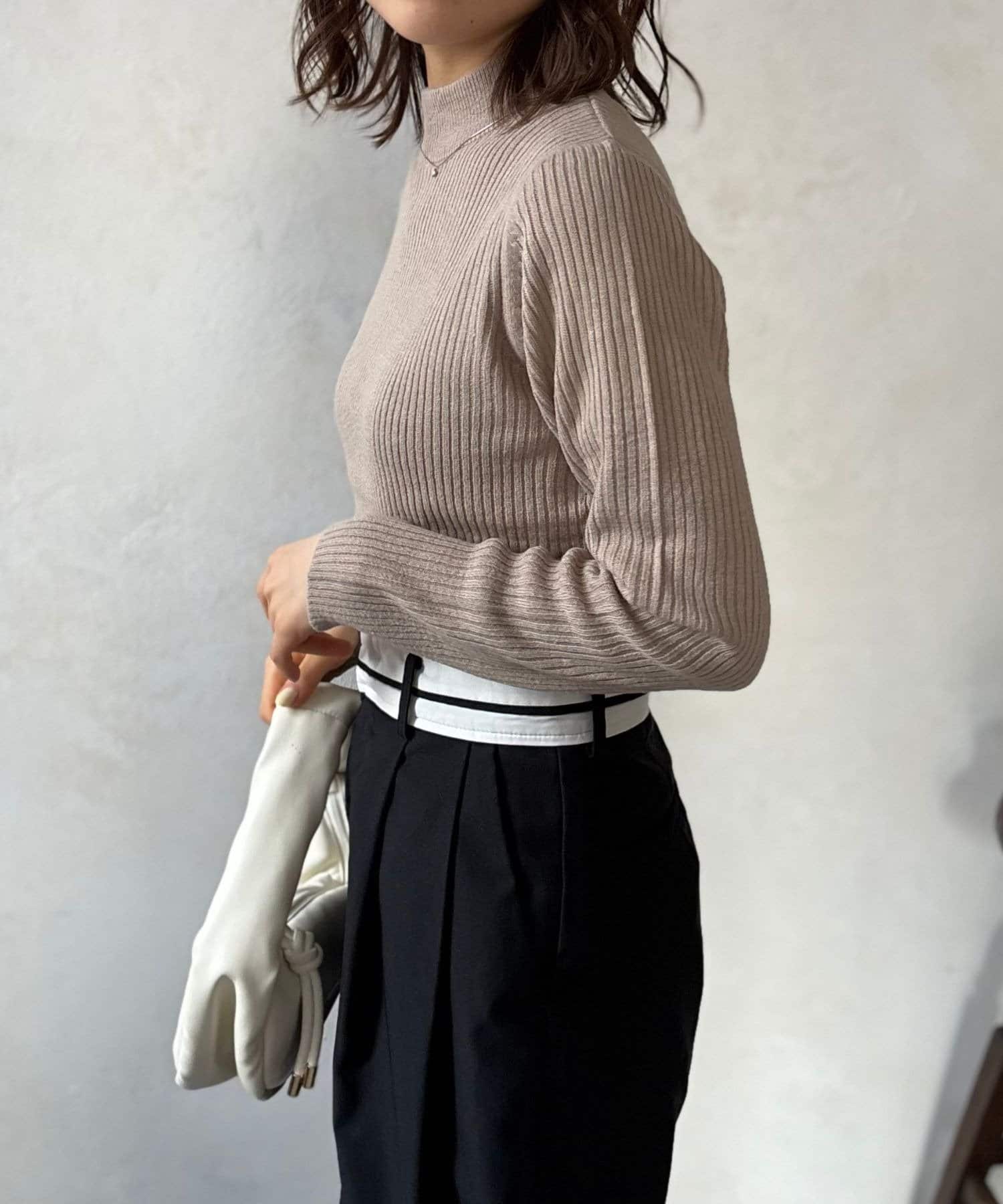 シンプルながらも洗練されたデザインで、どんなスタイルにも合わせやすいリブ編みプチハイネックニット。