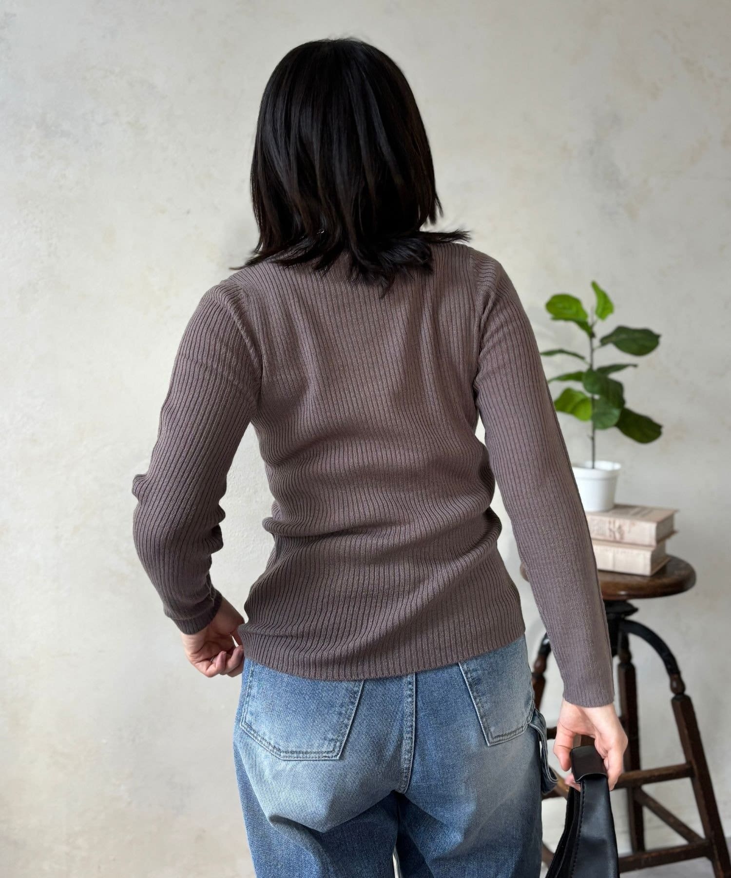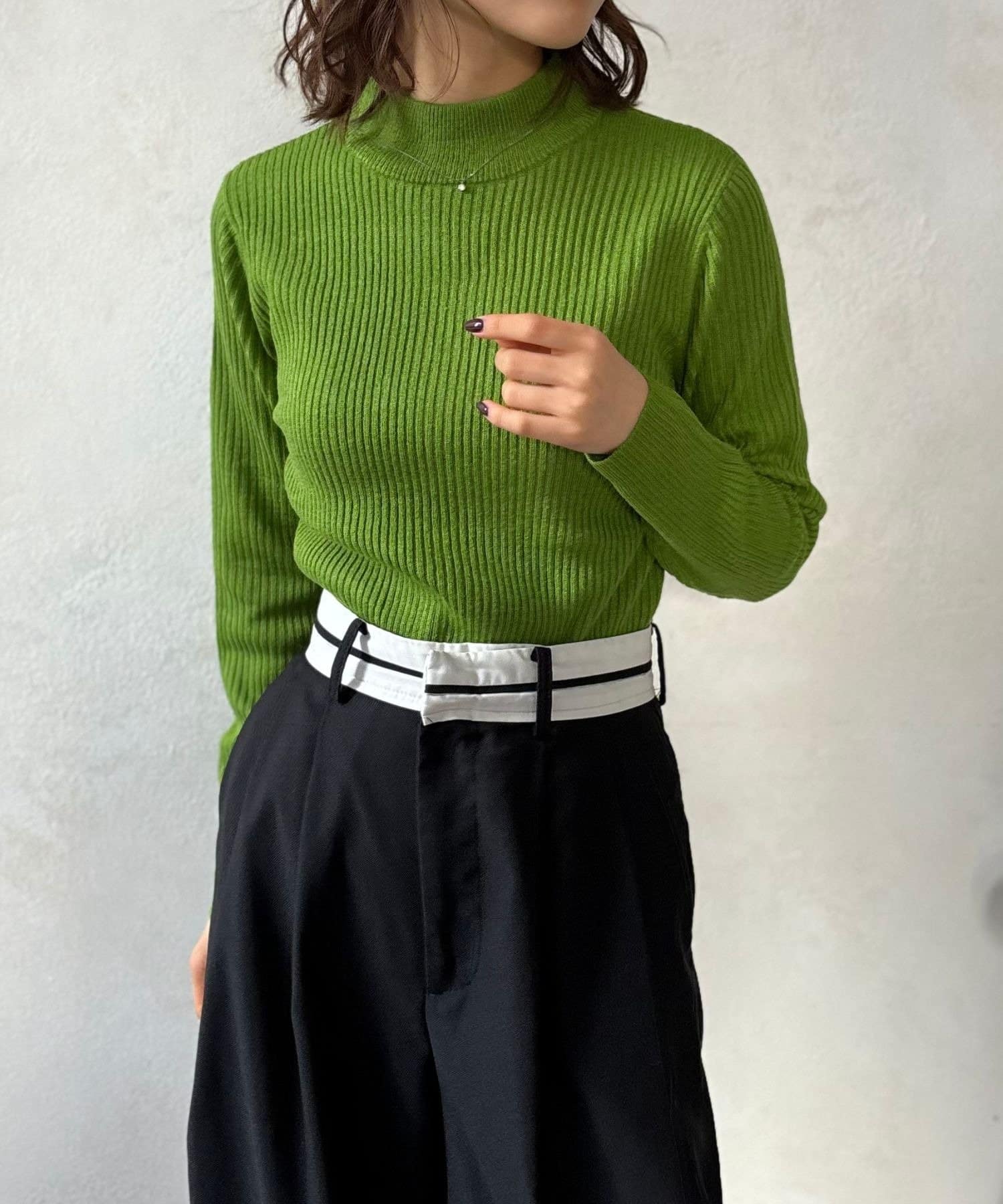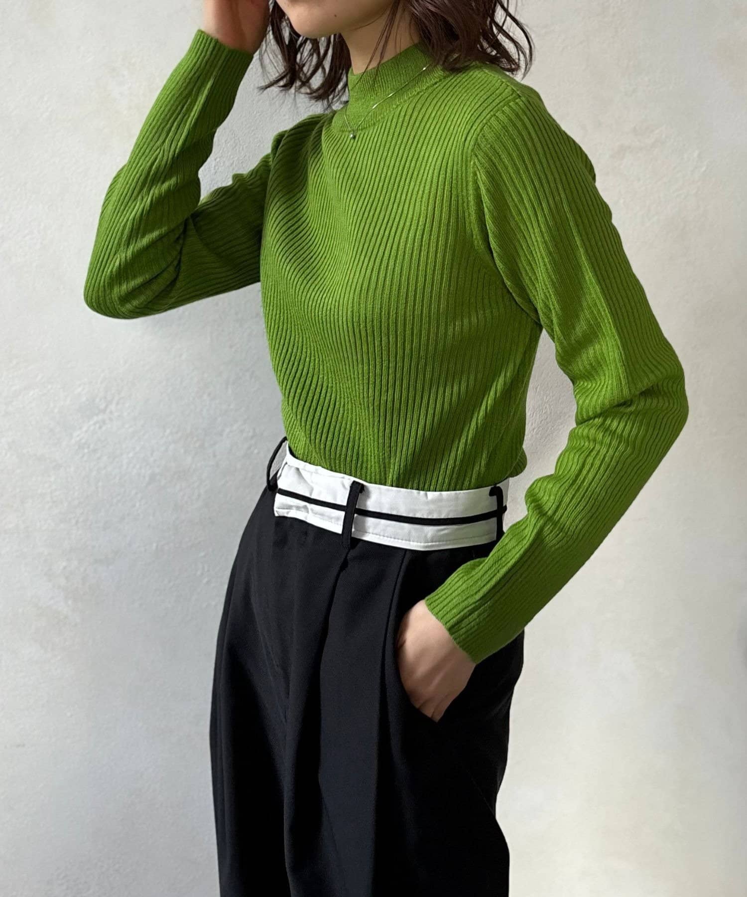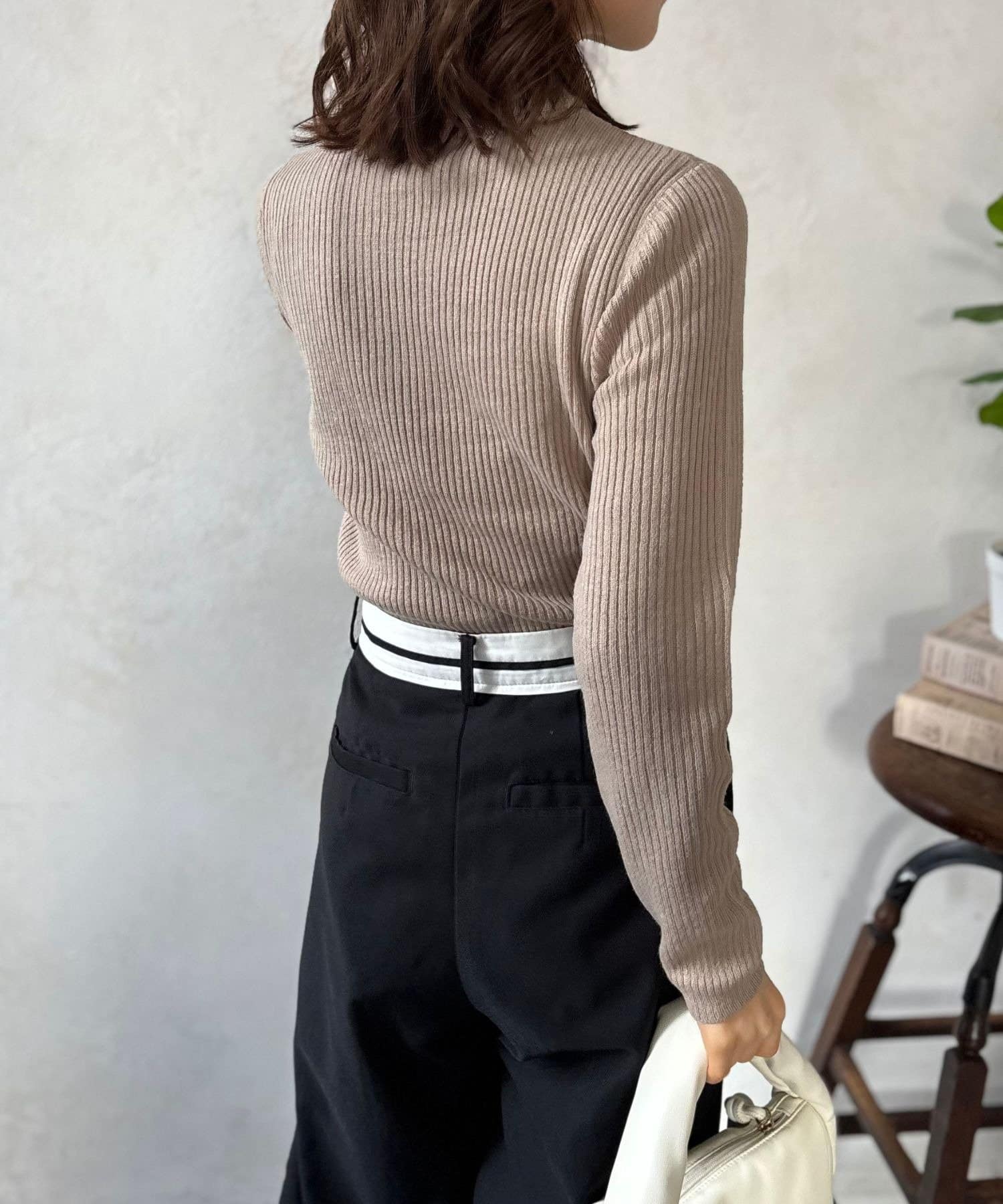 シンプルながらも洗練されたデザインで、どんなスタイルにも合わせやすいリブ編みプチハイネックニット。