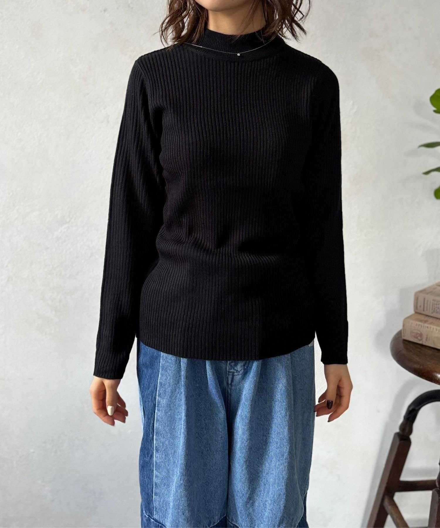 【首元すっきり/インナーにも】プチハイネックリブニット
