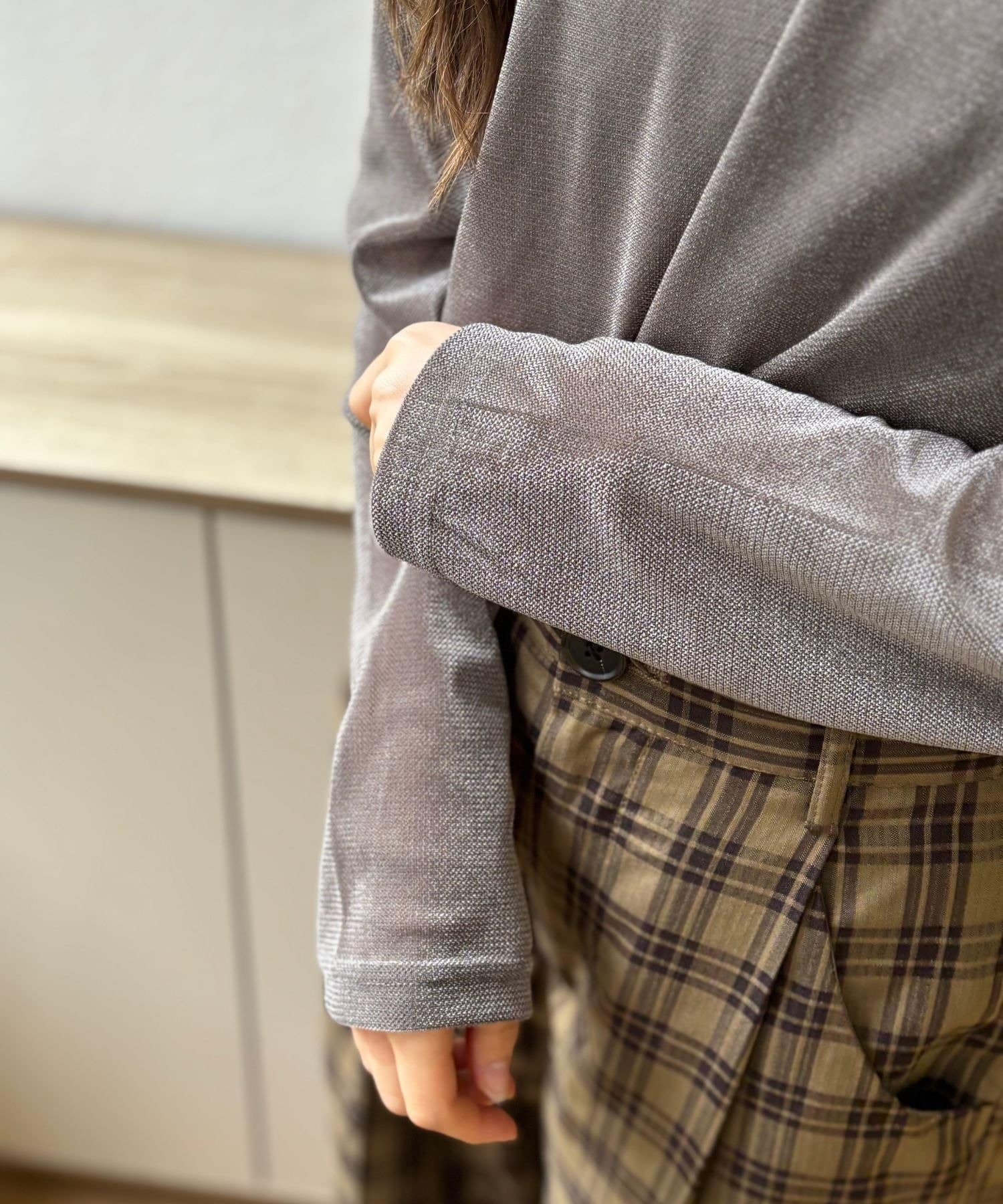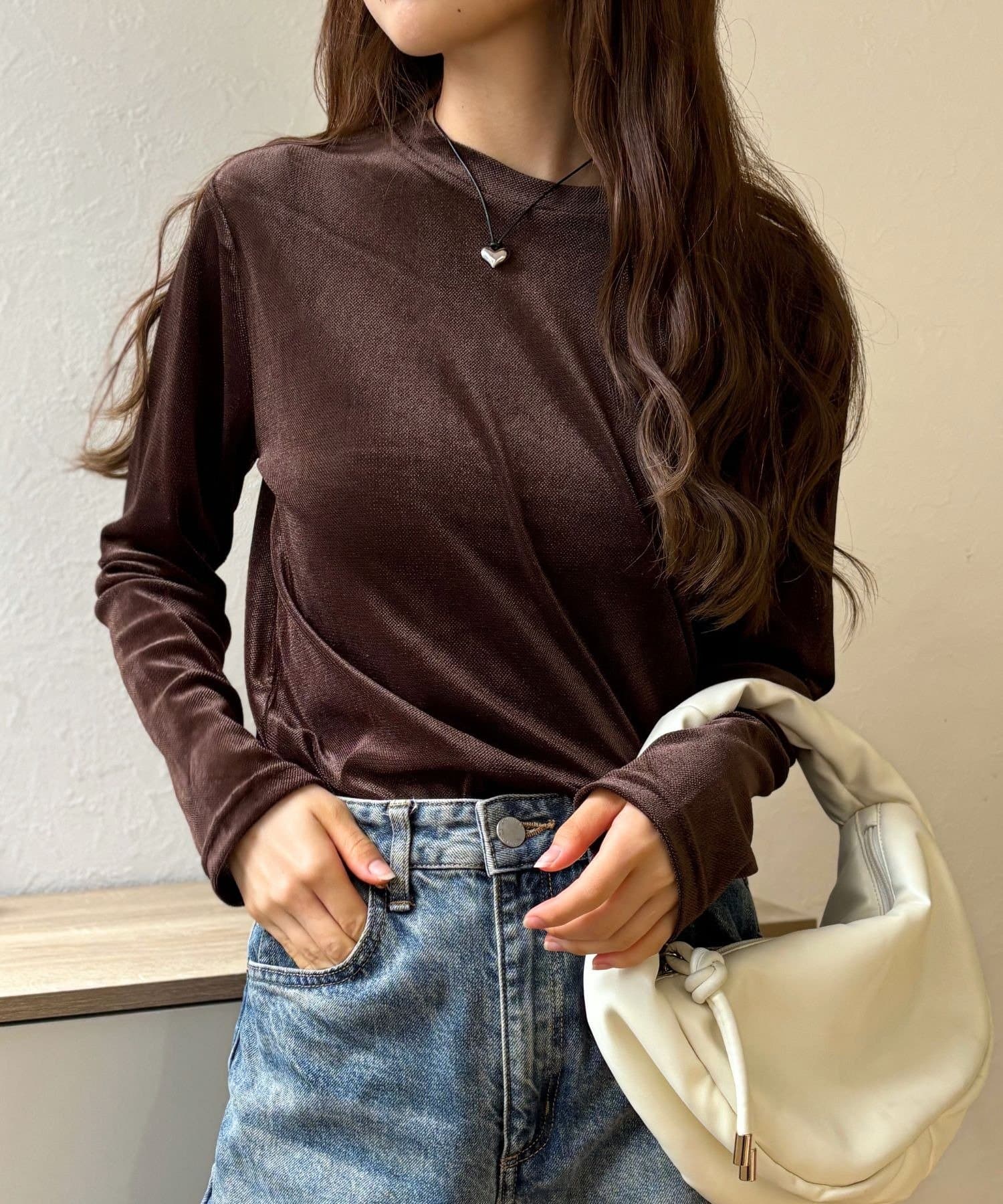 このシアーベロアトップスは、着るだけで一気に大人っぽくなります♪
