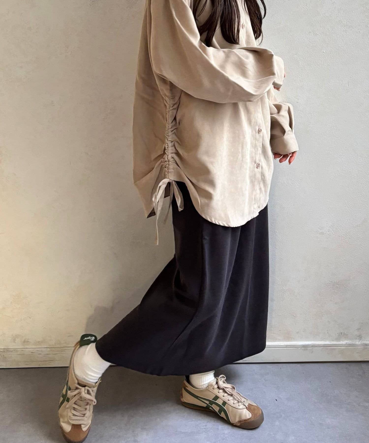 オーバーサイズのトップスと合わせて、ゆるっとシルエットを楽しむのが今年っぽい。