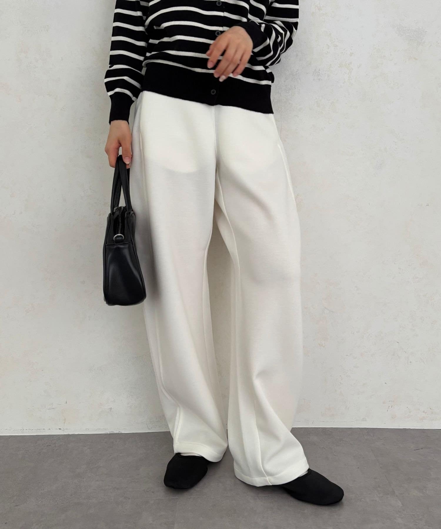 気になる脚のラインをカバーしつつ、スタイルアップも叶う絶妙なワイドシルエット。