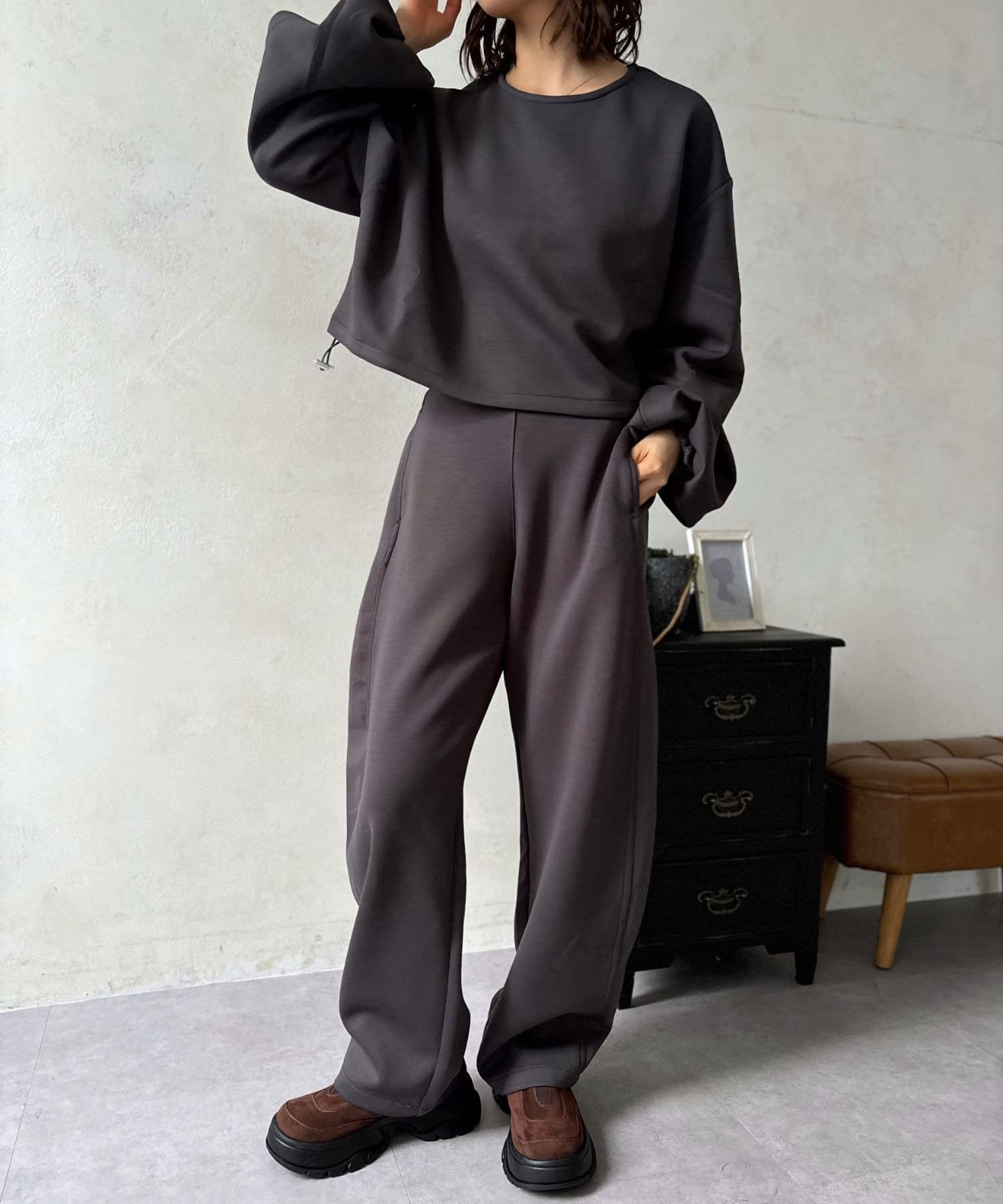 《21O1052206B0059/裾ドロストプルオーバー》とセットアップとして着用も可能!