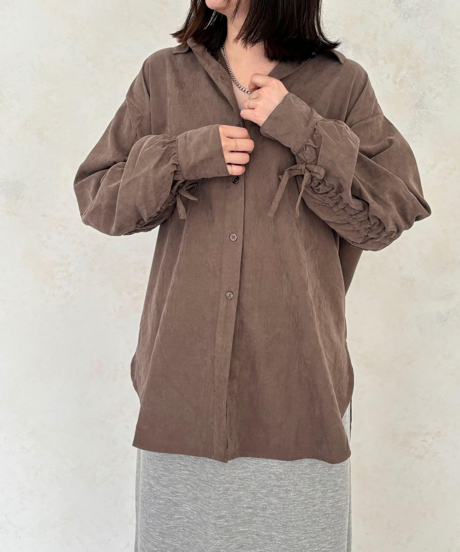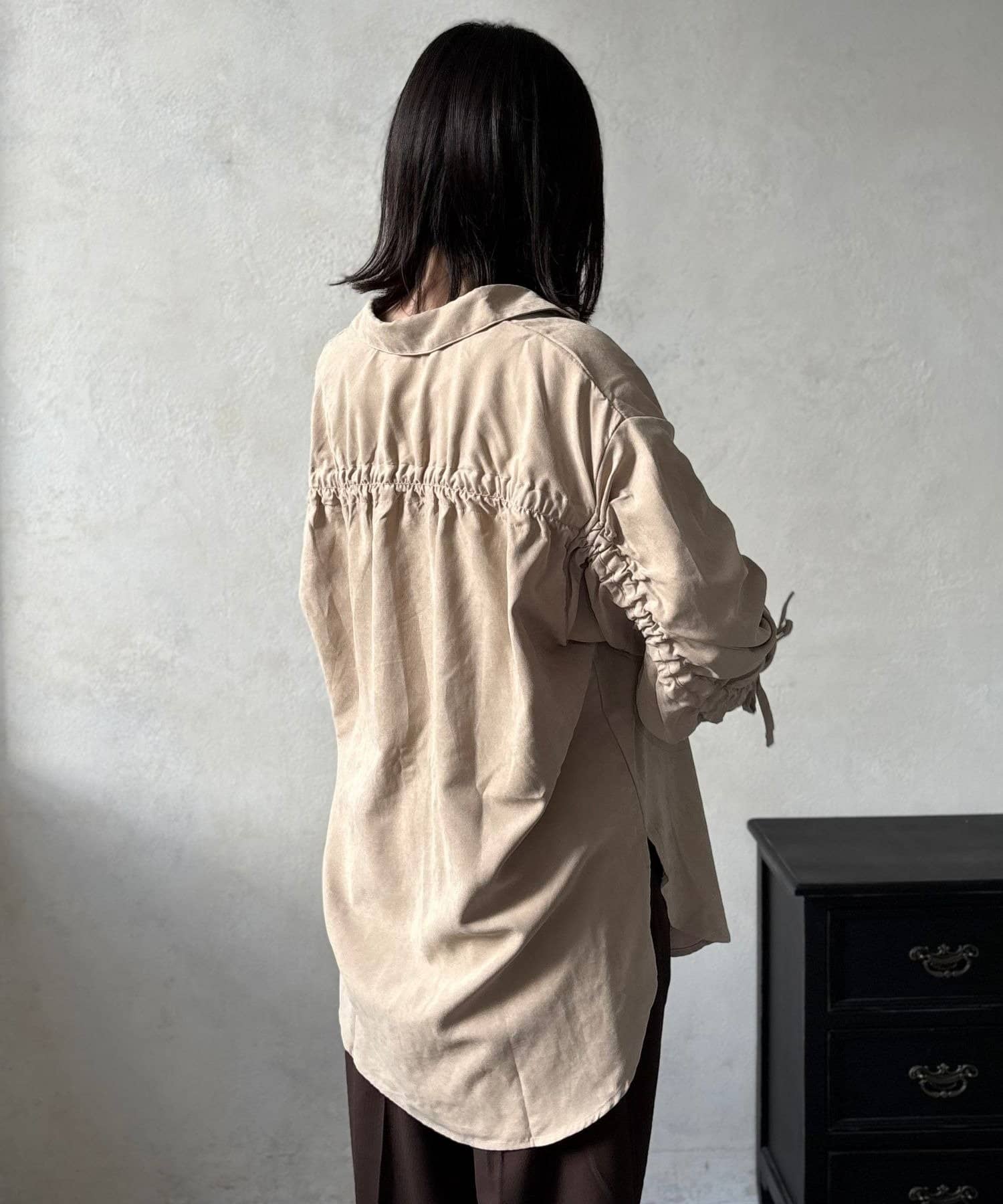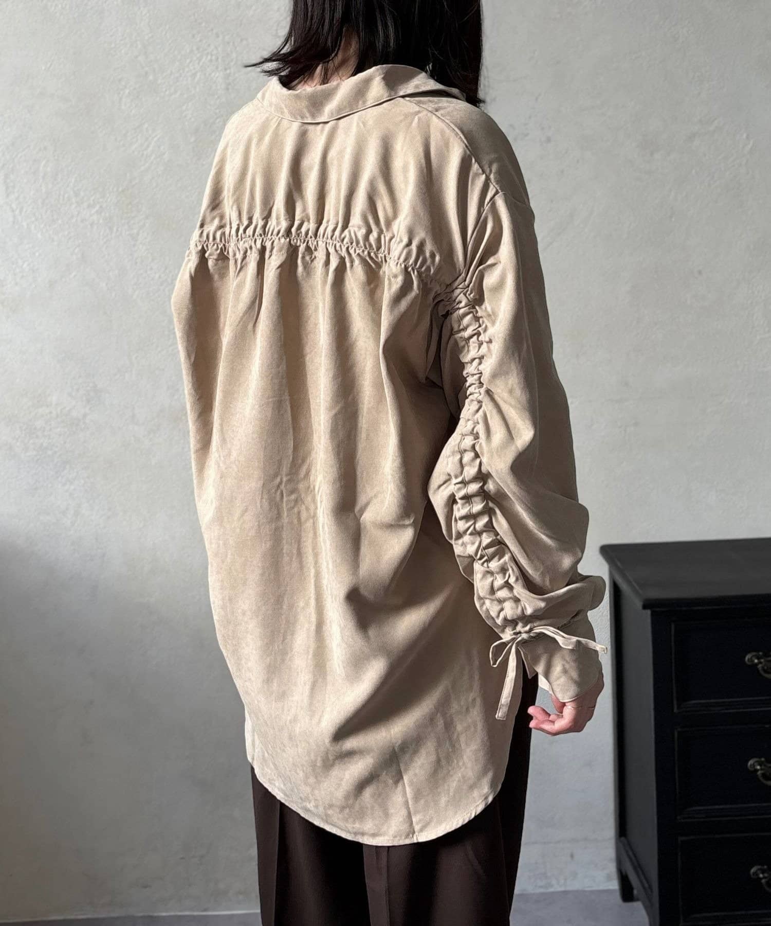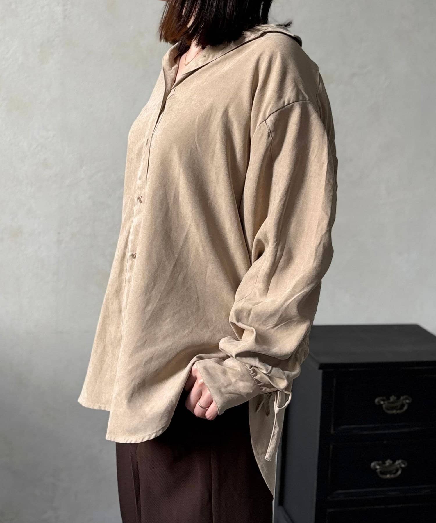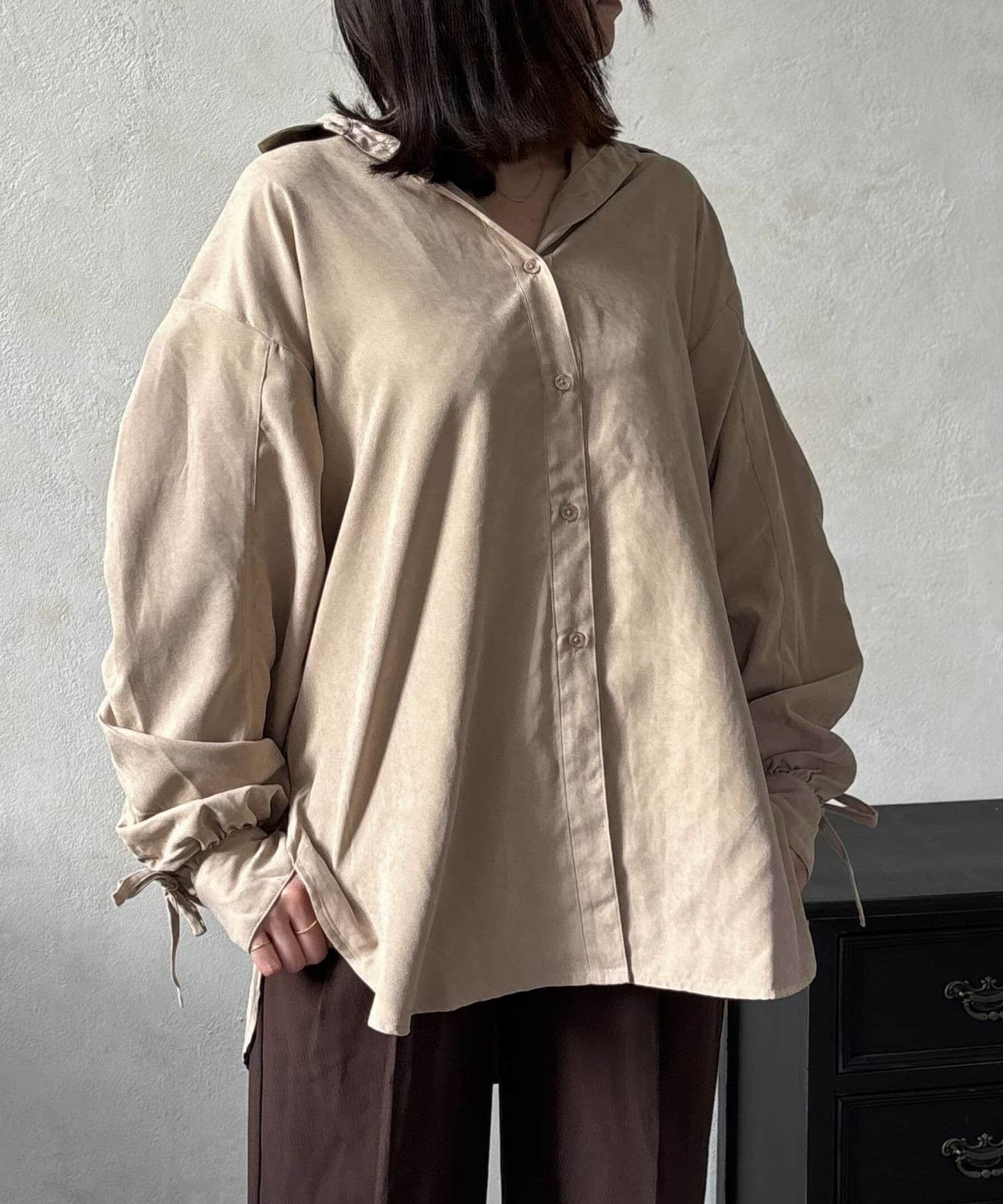 TOP > LOCUST > レディース > トップス > シャツ/ブラウス(ボタン) > ピーチ起毛袖ドロストシャツ
