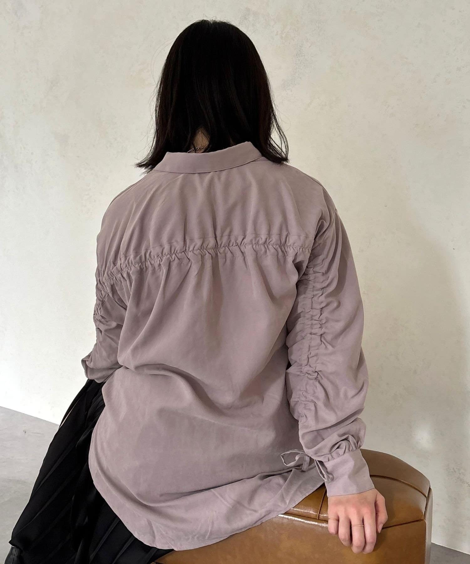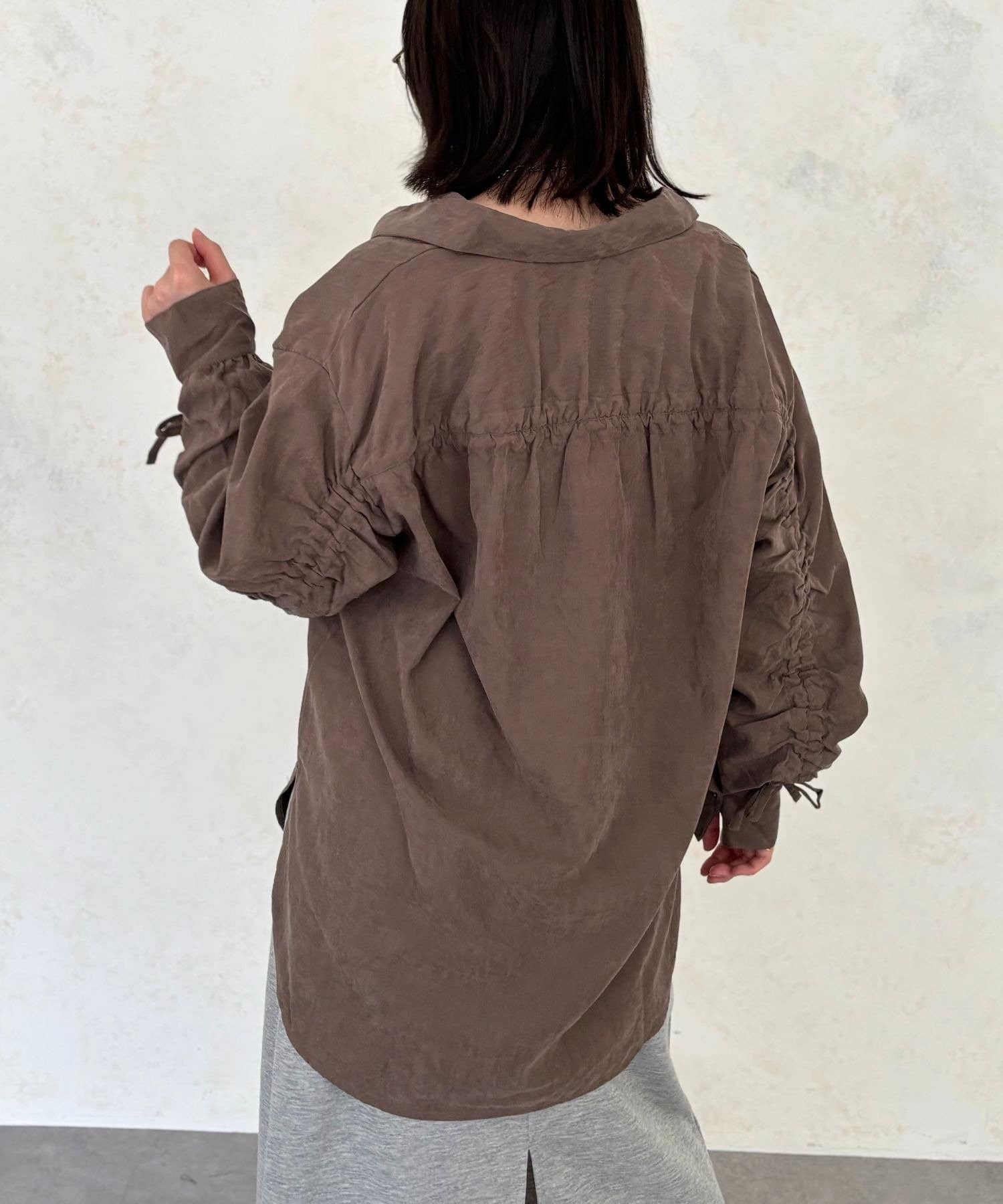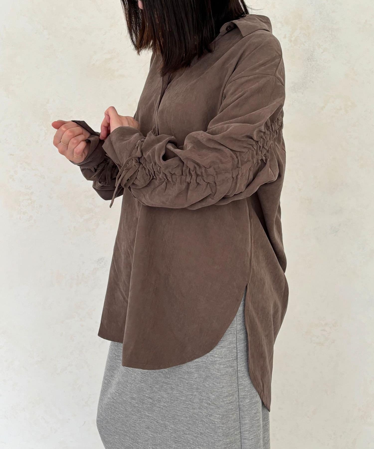 こなれ感たっぷり、大人の抜け感袖ドロストシャツ