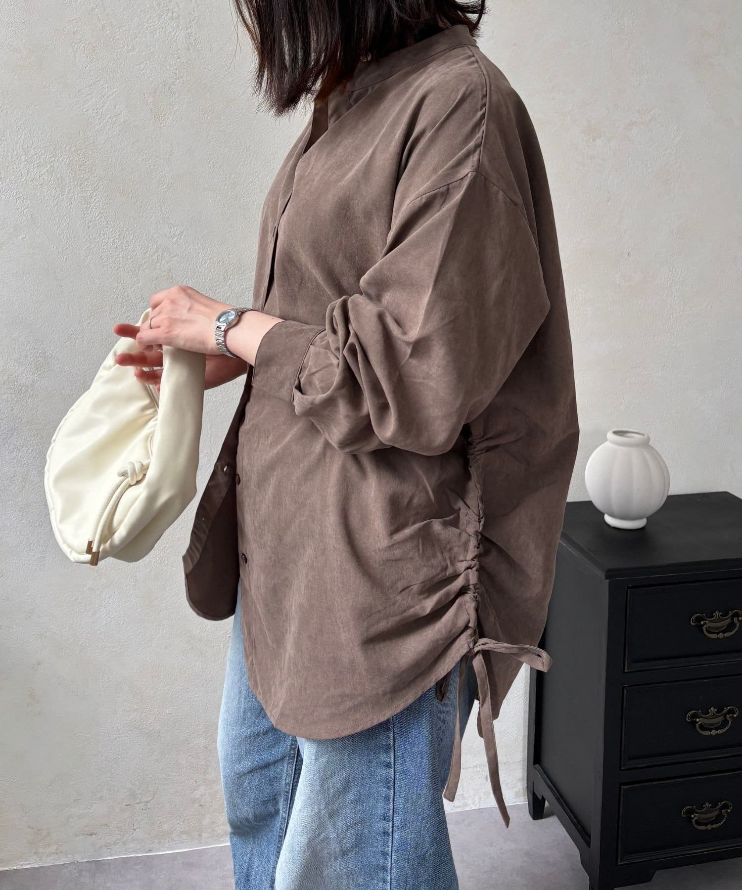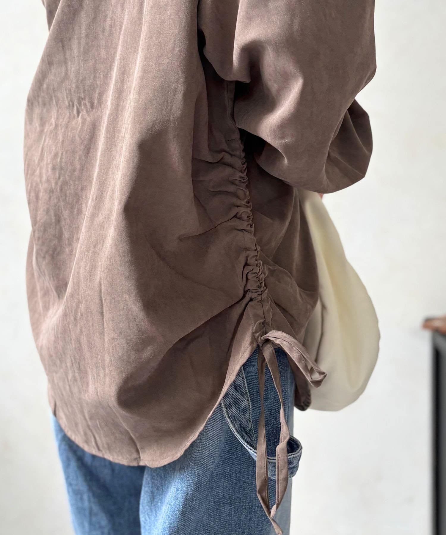 くしゅっと絞ってシルエットを調整すれば、自分らしい着こなしが楽しめます。