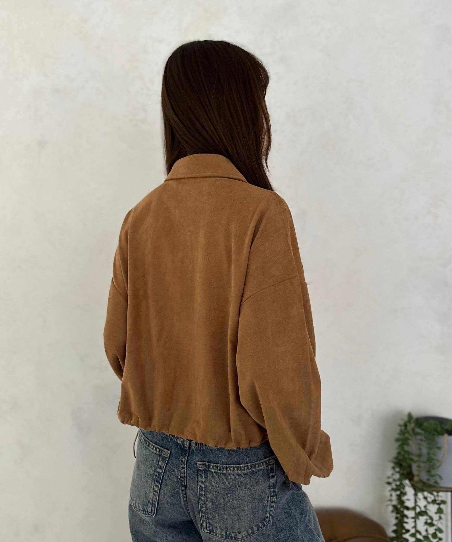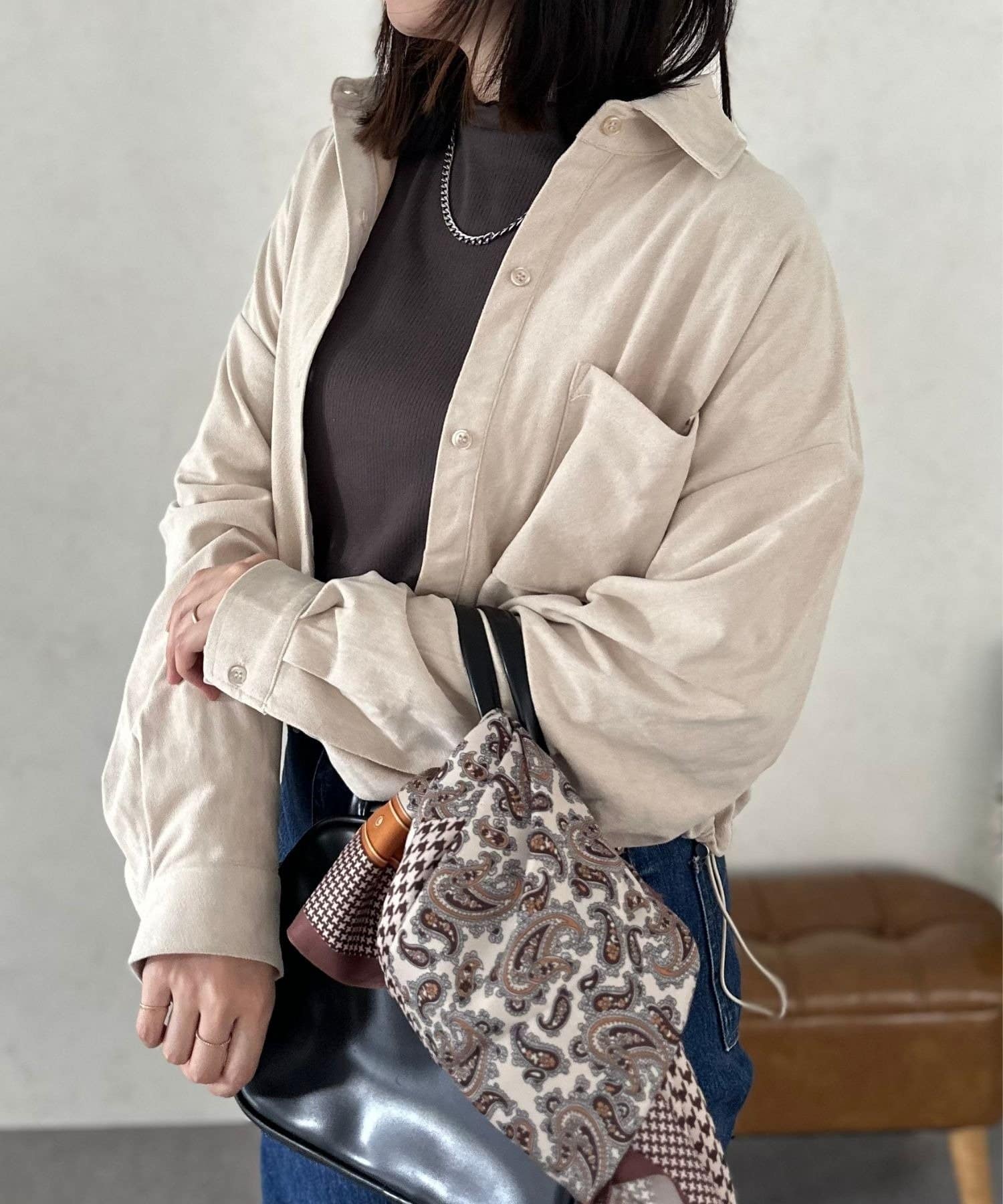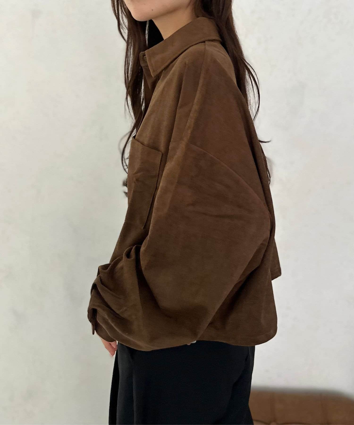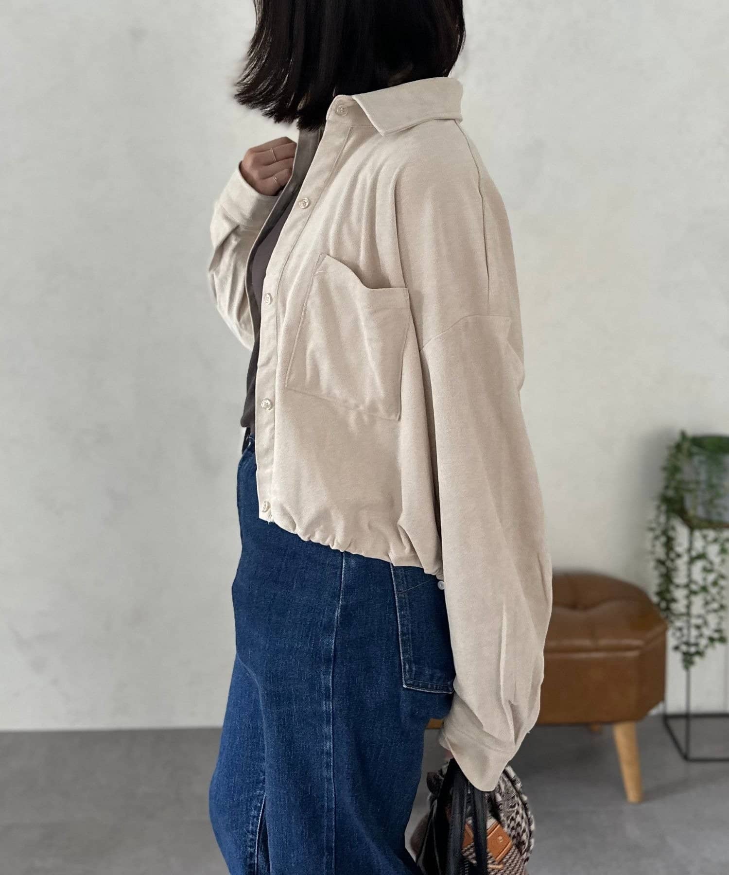 ボタンを閉めてトップスとして着るのはもちろん、前を開けて羽織りとしても使える万能アイテム。