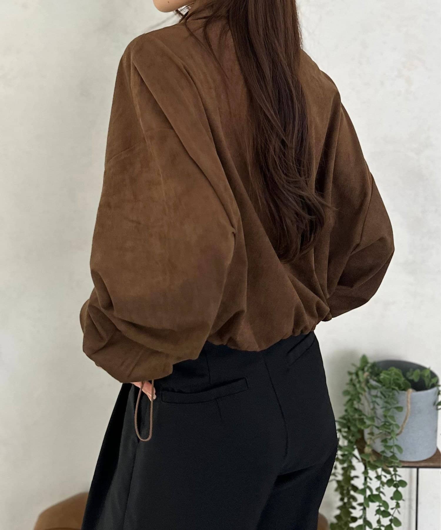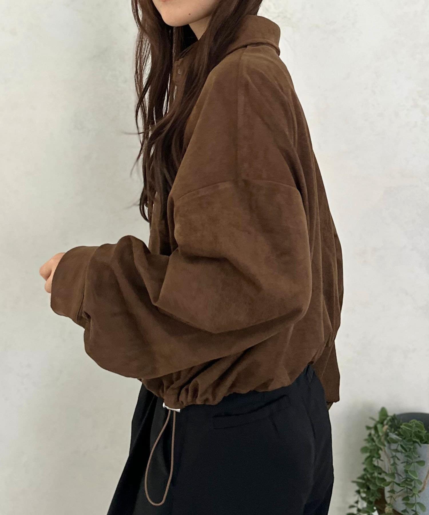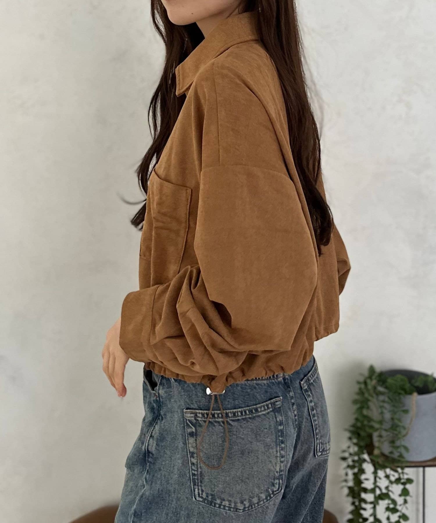 裾のドロストを絞れば、一気にトレンドの短丈シルエットに。