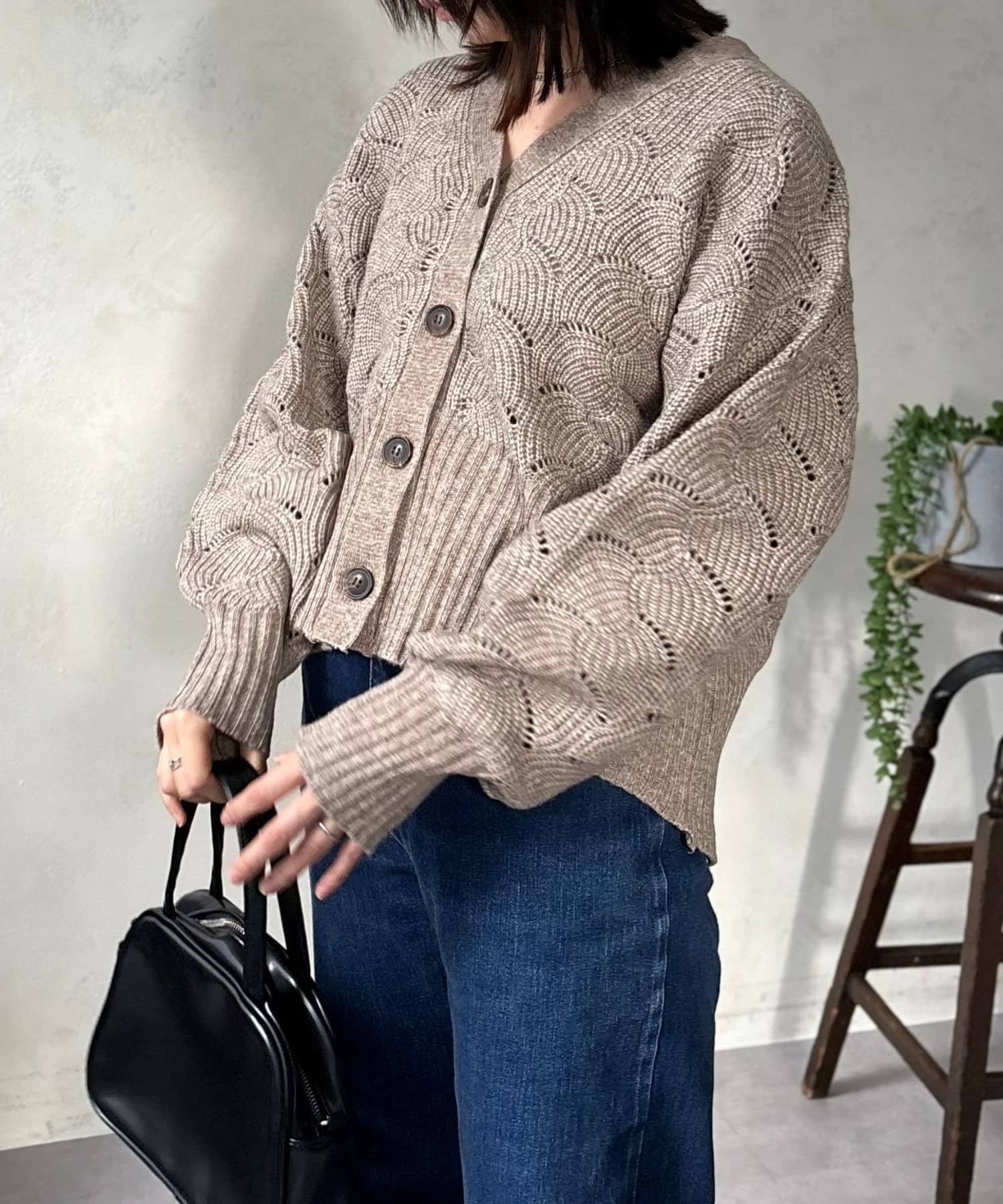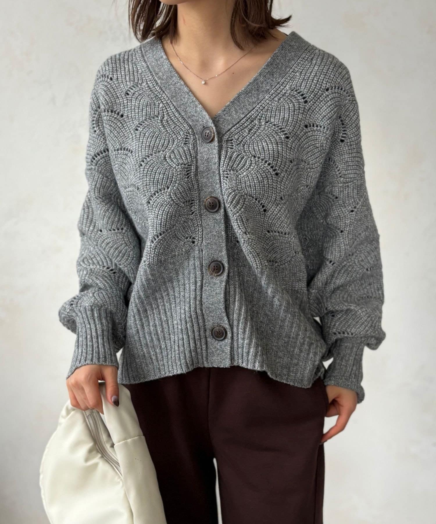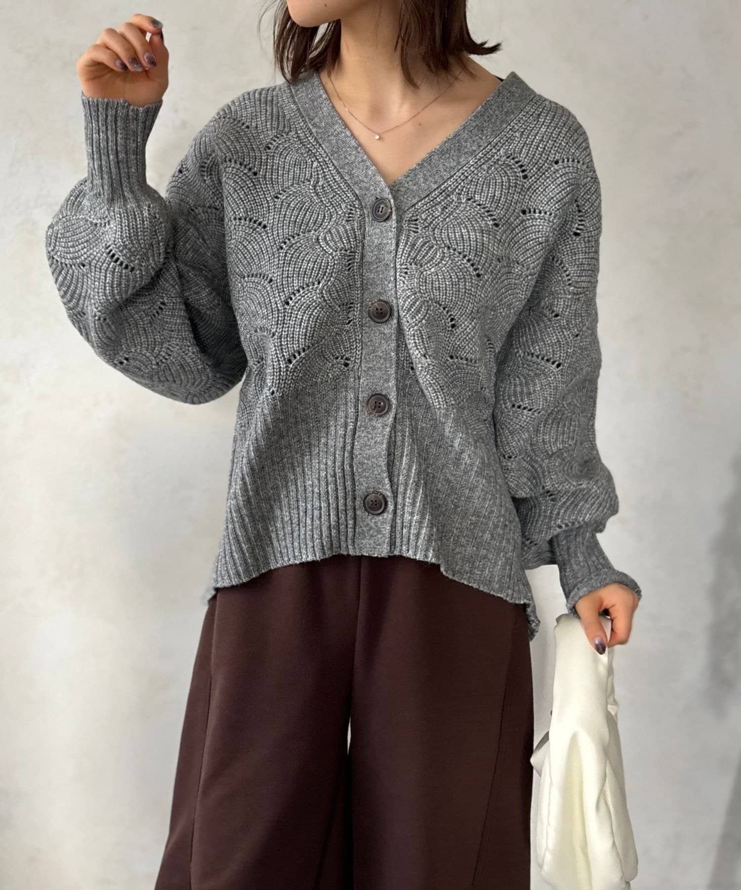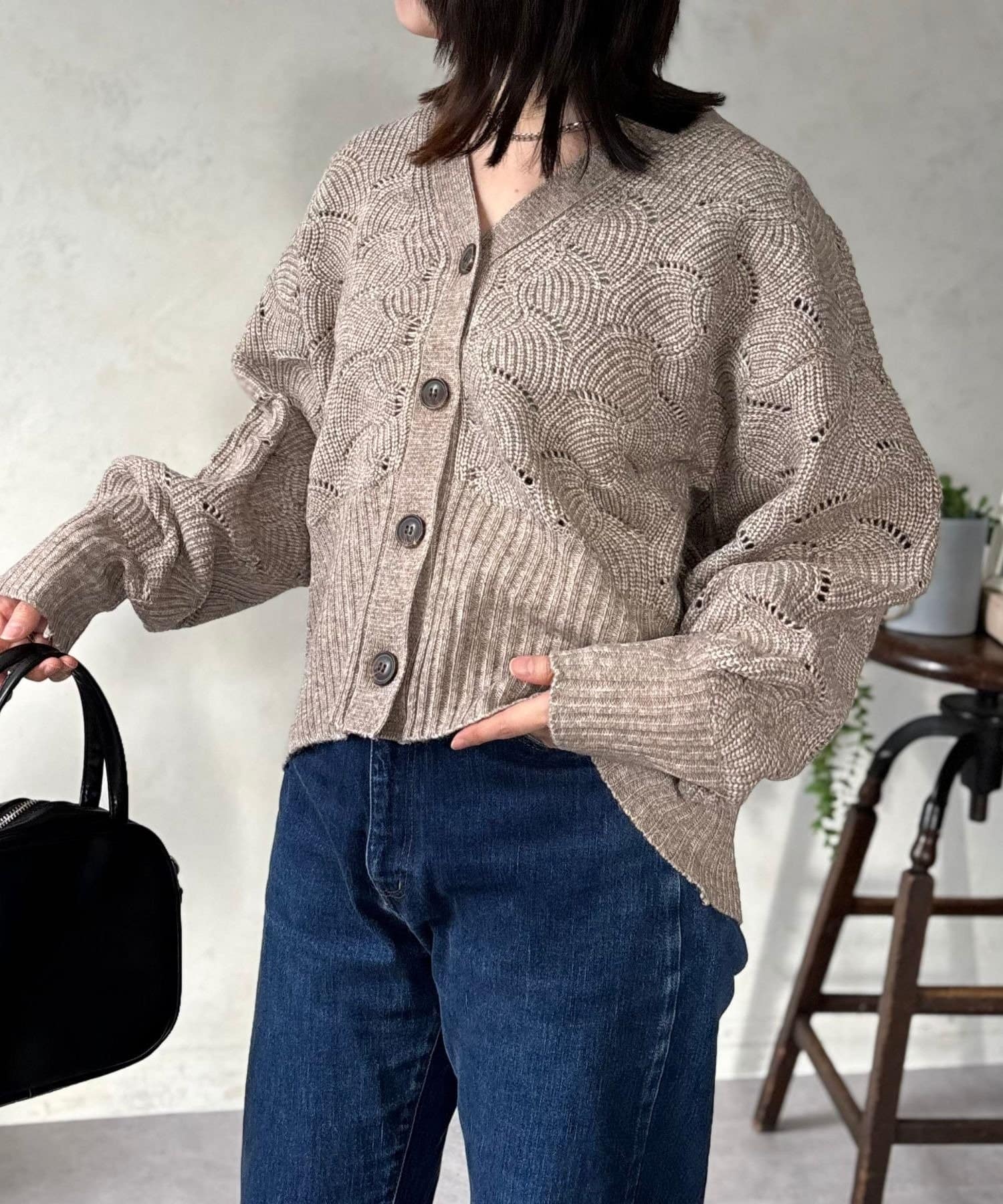 ブラウスやワンピースに羽織れば、オフィスにもOKなきちんとスタイルに。アクセサリーをプラスして、華やかさを演出するのも◎。