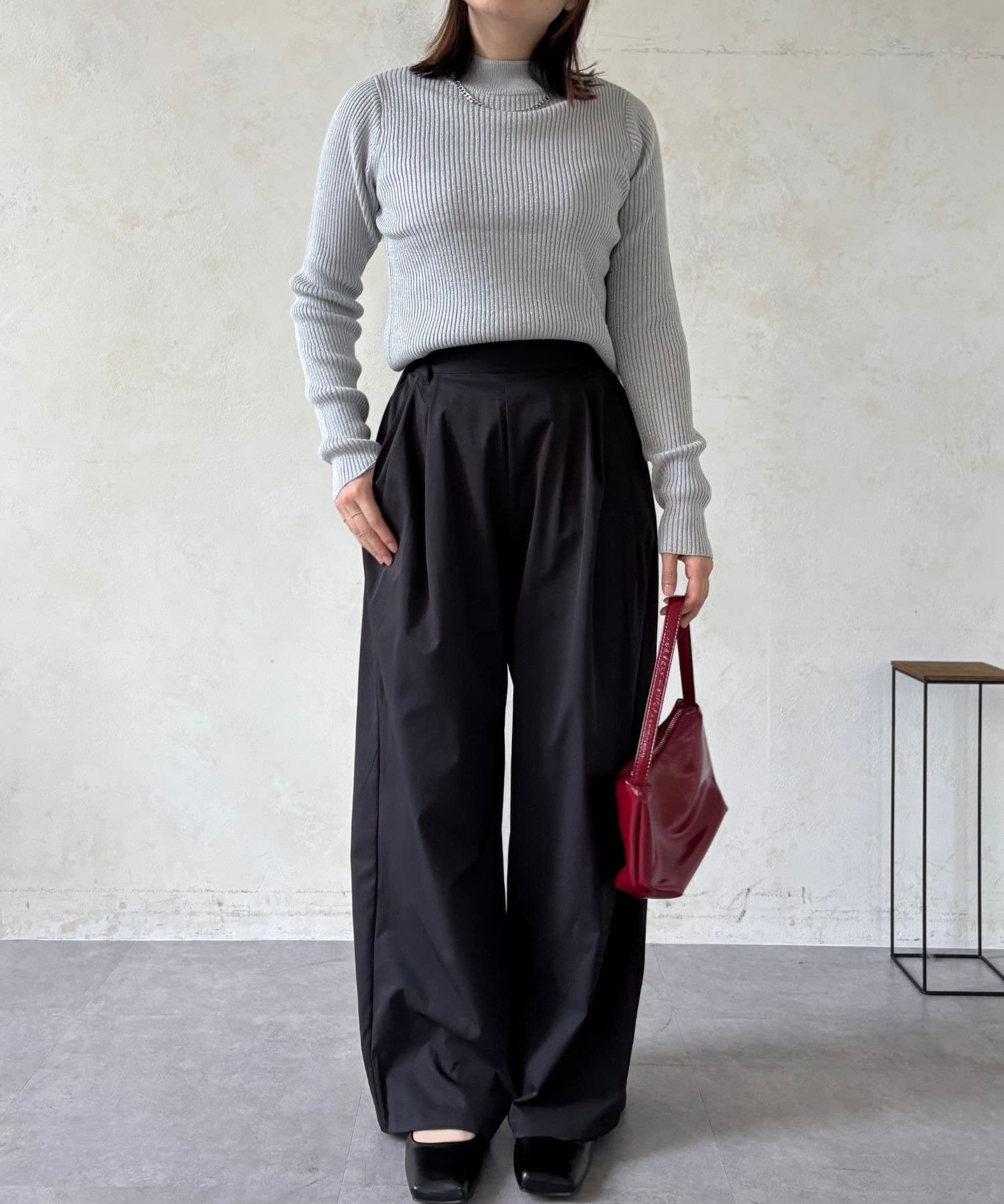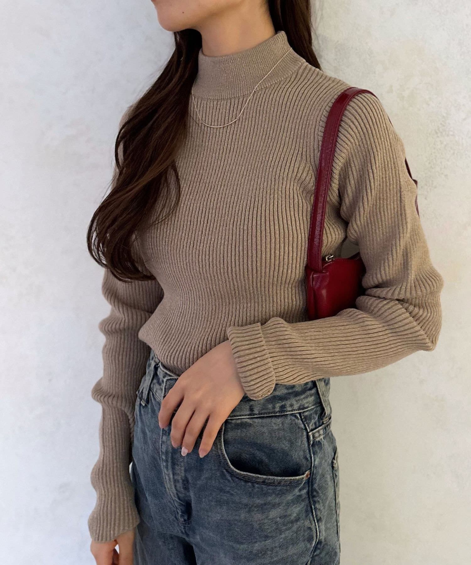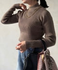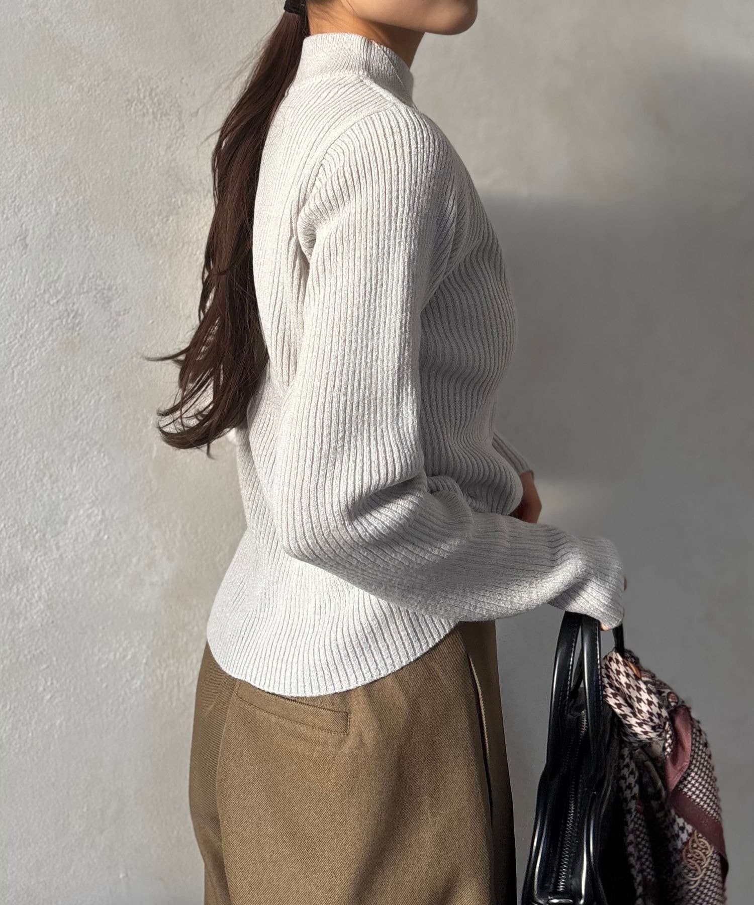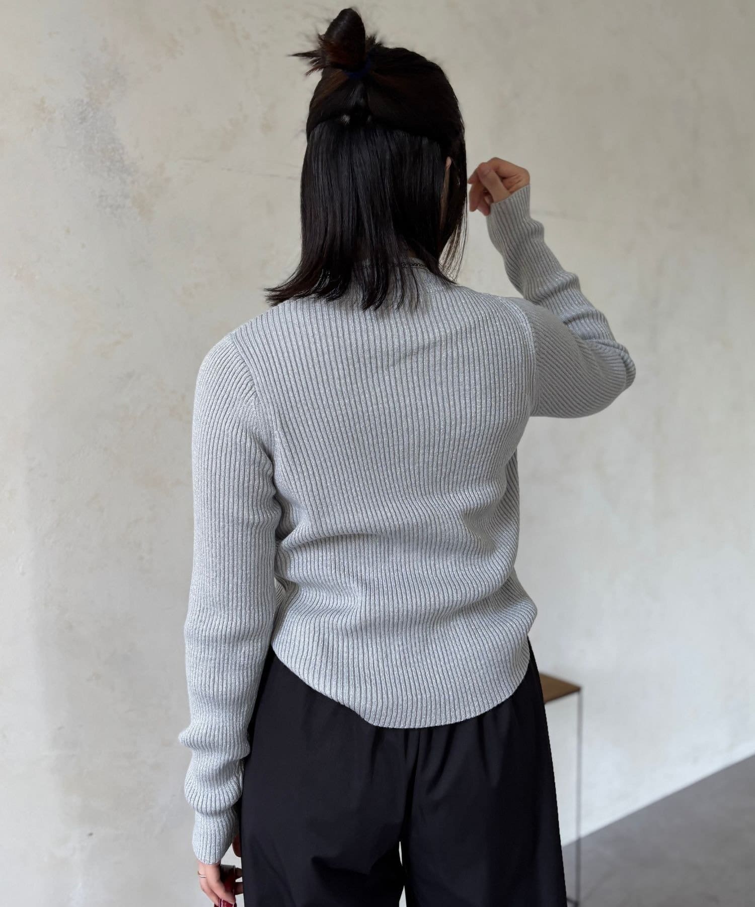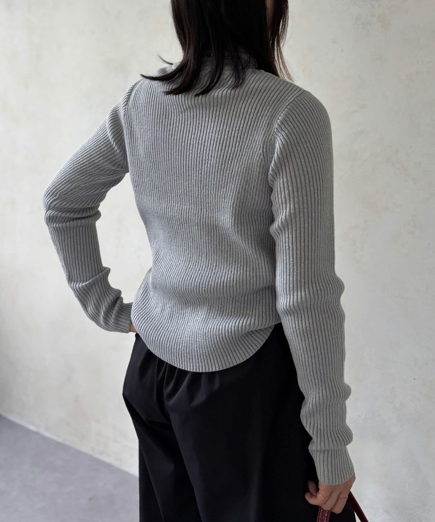 伸縮性のあるリブ編みなので、ボディラインに優しくフィットし、ストレスフリーな着心地を叶えます。