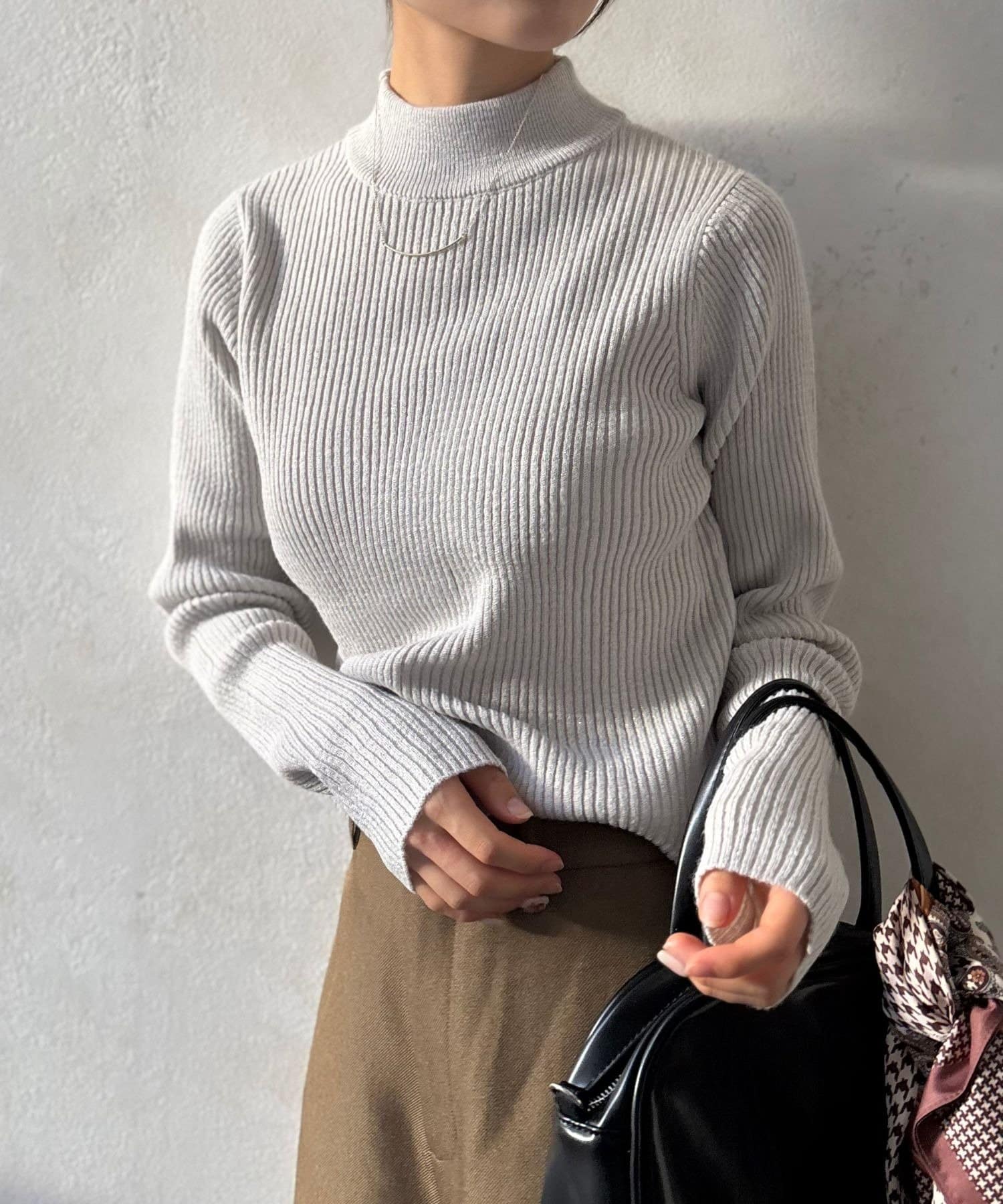 縦のラインを強調するリブ編みは、着るだけでスタイルアップ効果も期待できます。