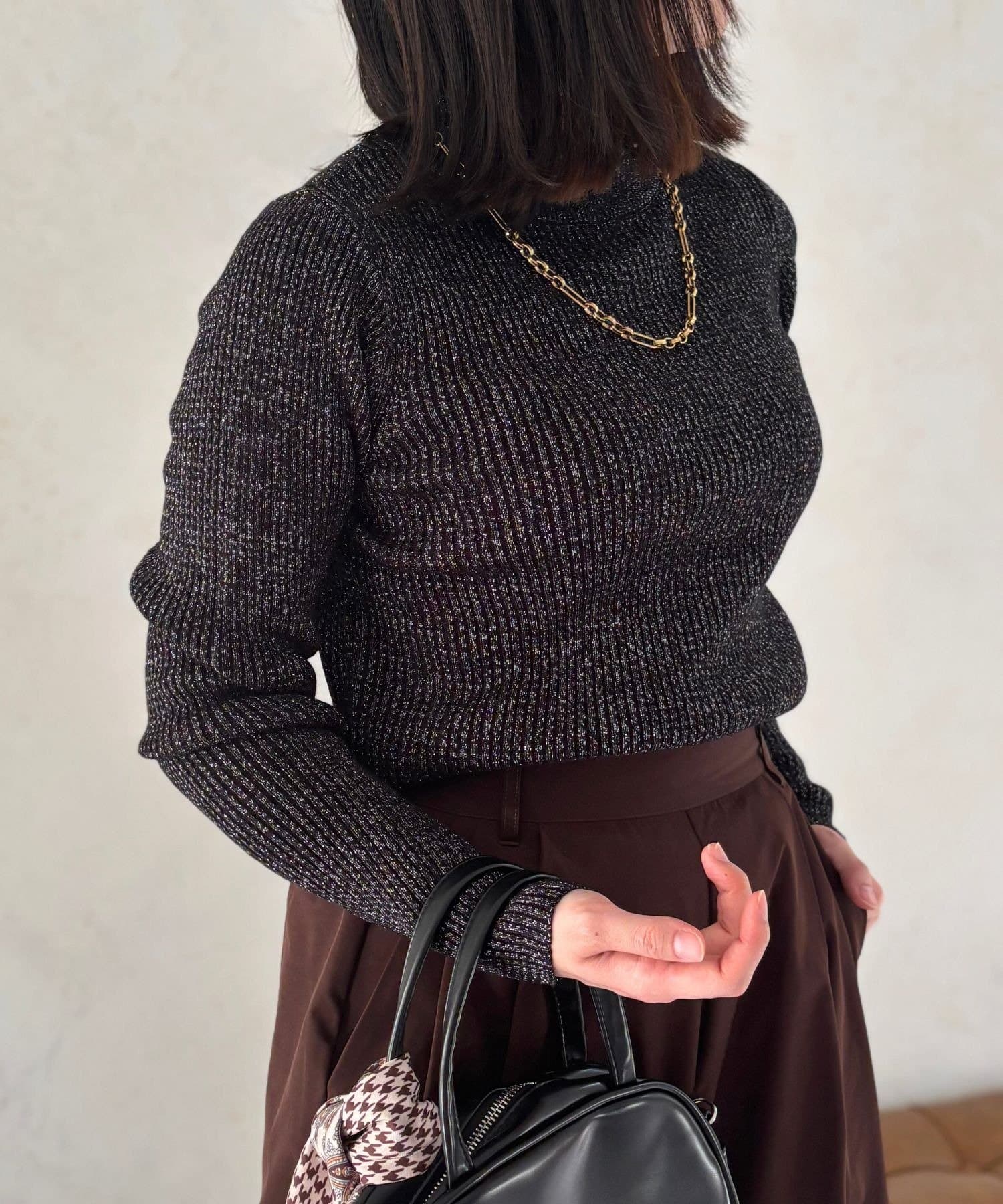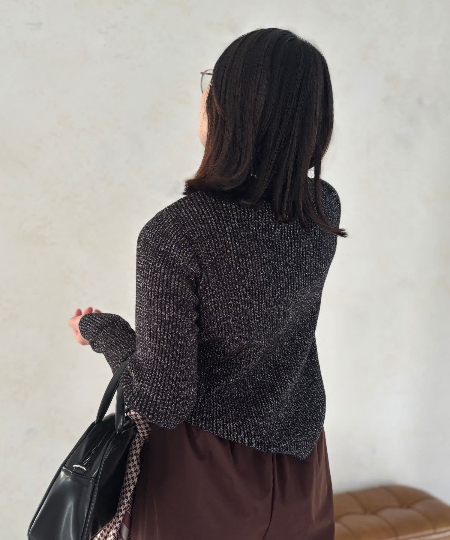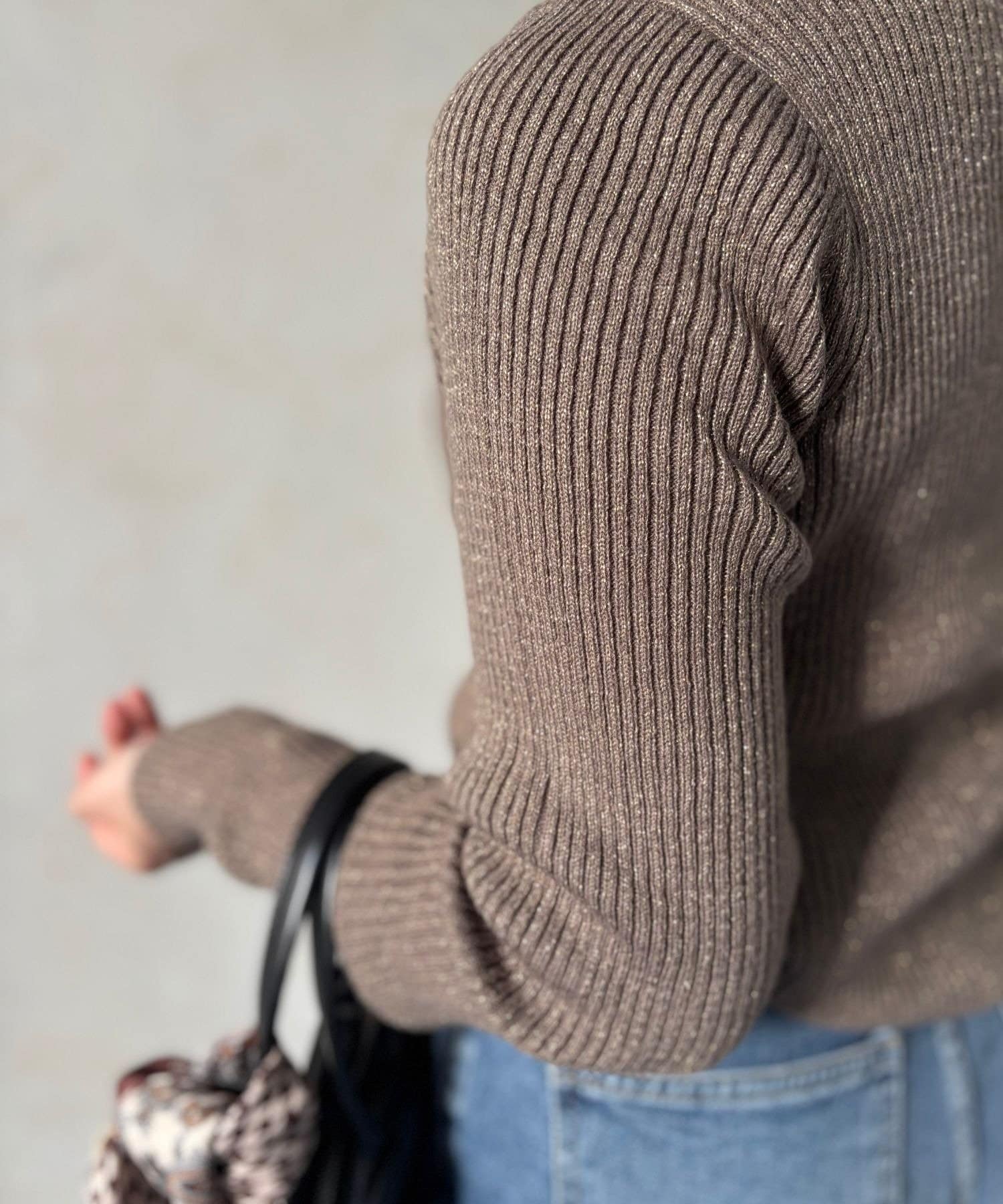 カジュアルなのにどこか特別感のある、繊細なラメが上品なラメリブトップス