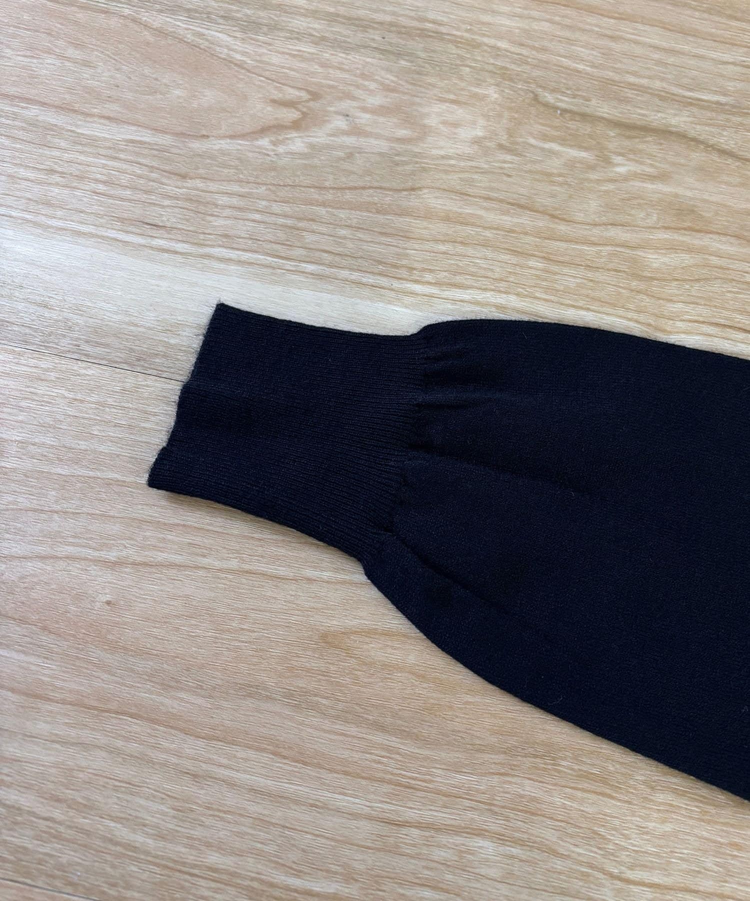 シンプルながらも、リブ編みがさりげないアクセントになり、上品な印象に。