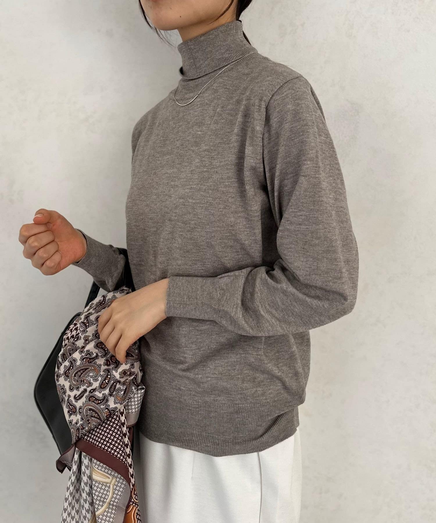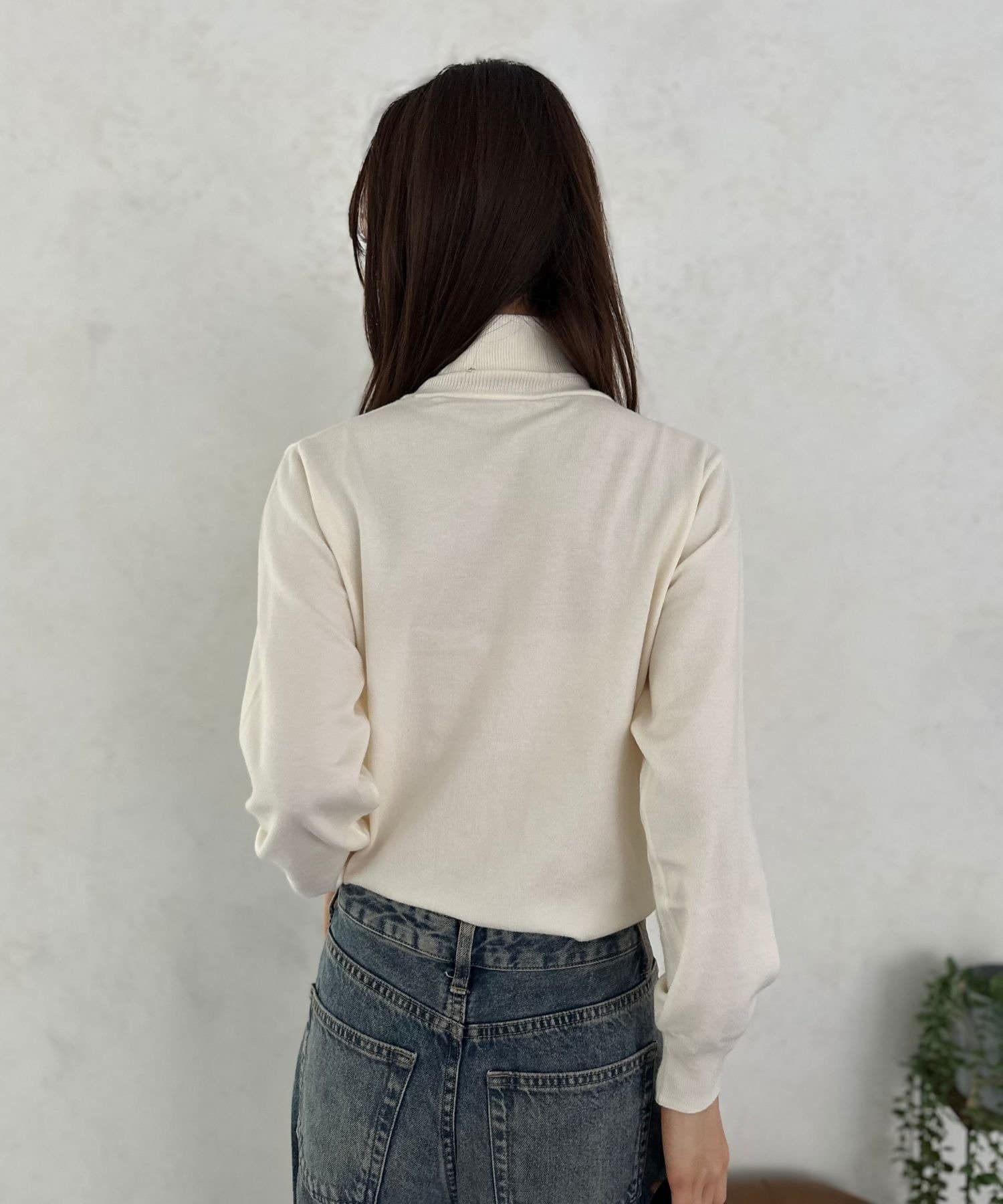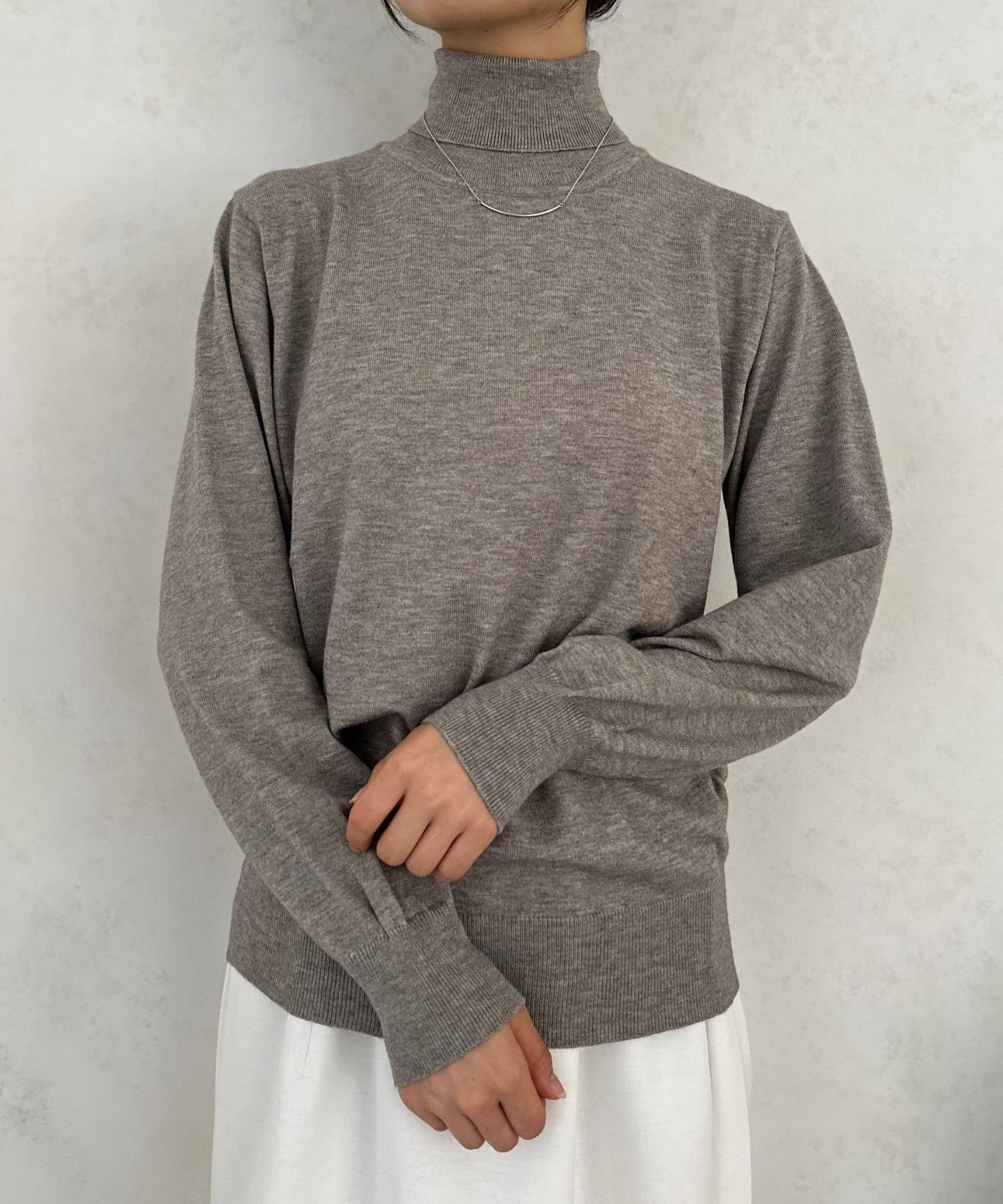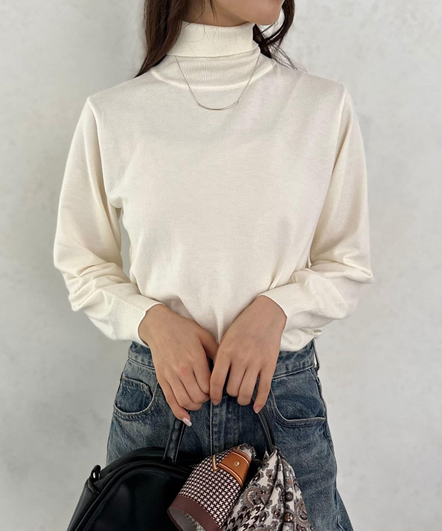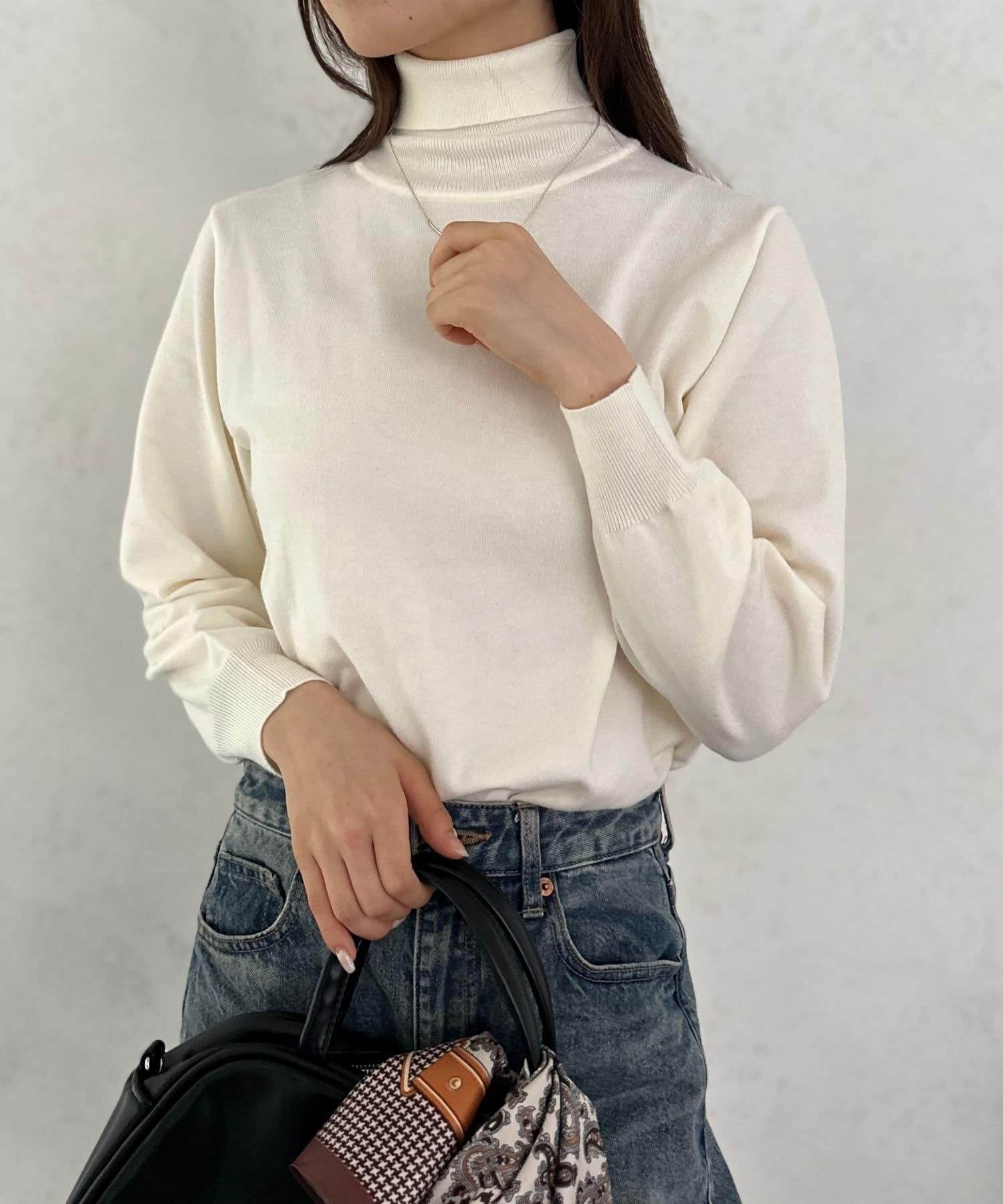 首元を優しく包み込むタートルネックは、小顔効果も期待できます。