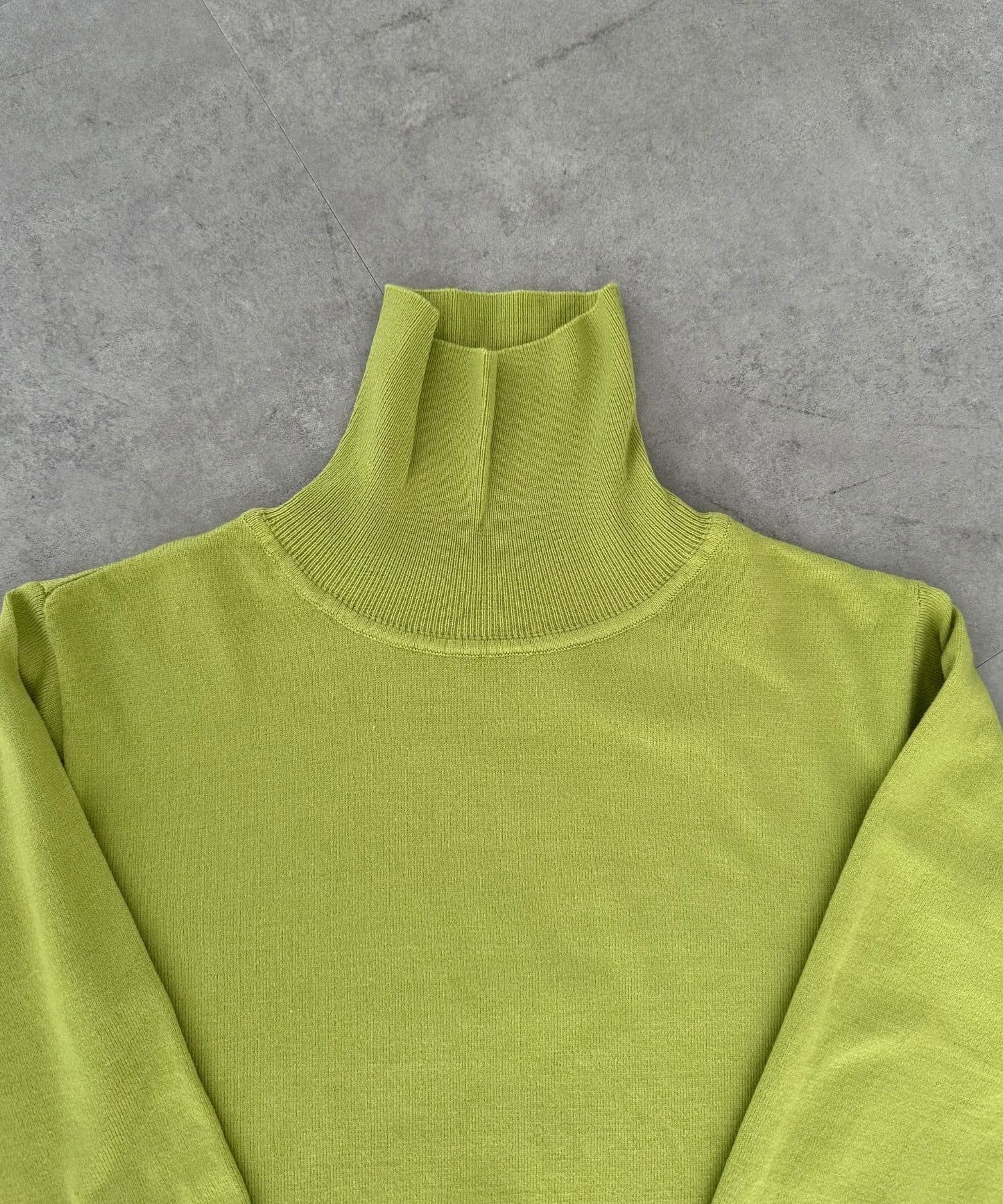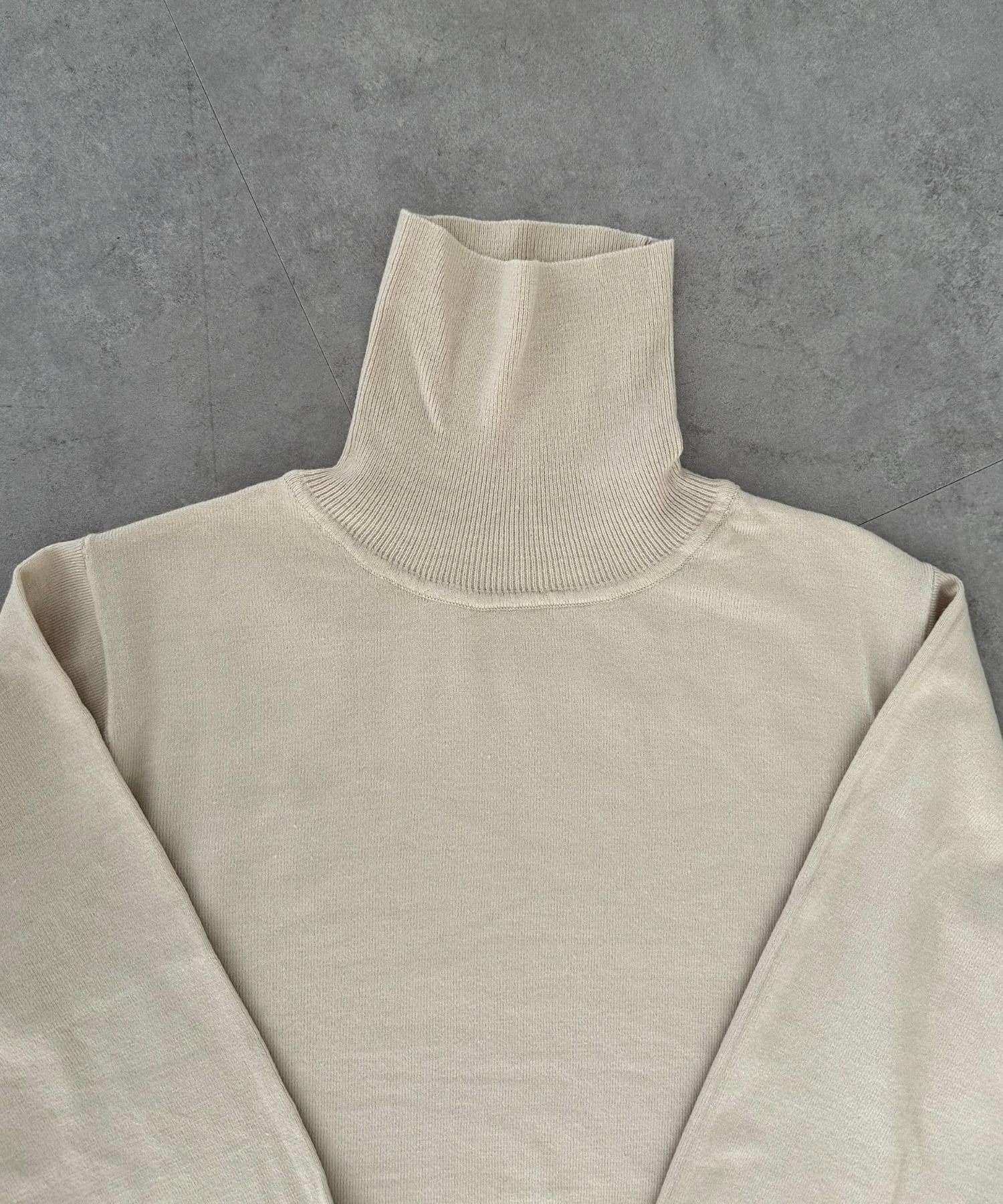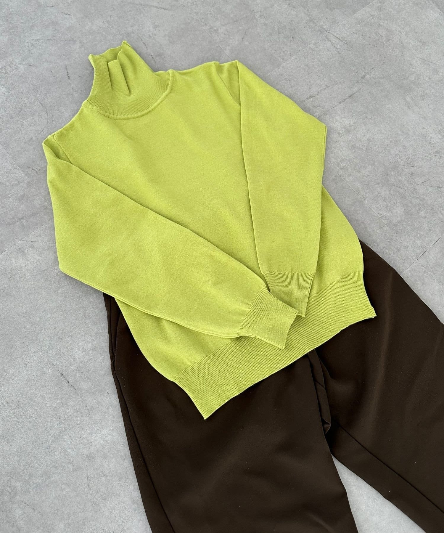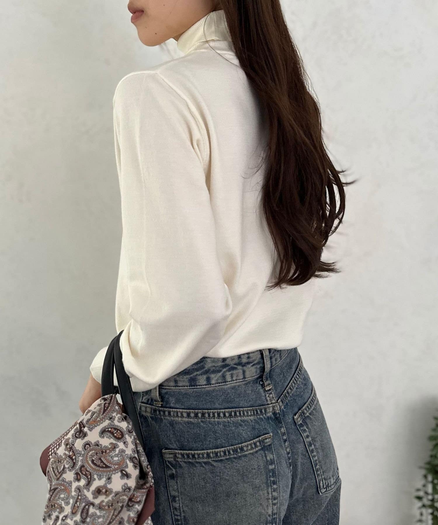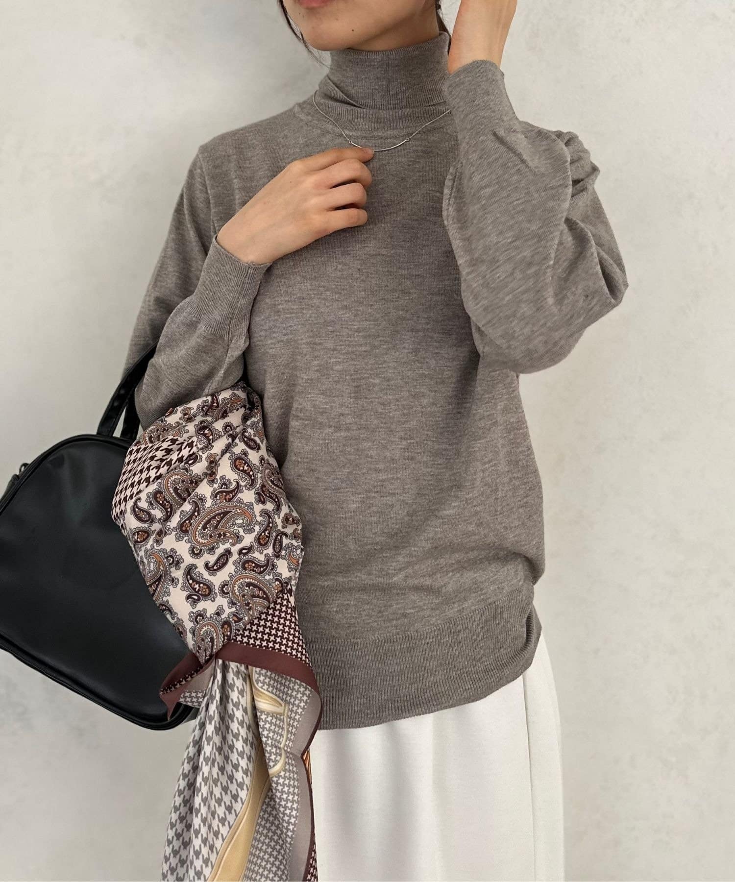 首元を優しく包み込むタートルネックは、小顔効果も期待できます。