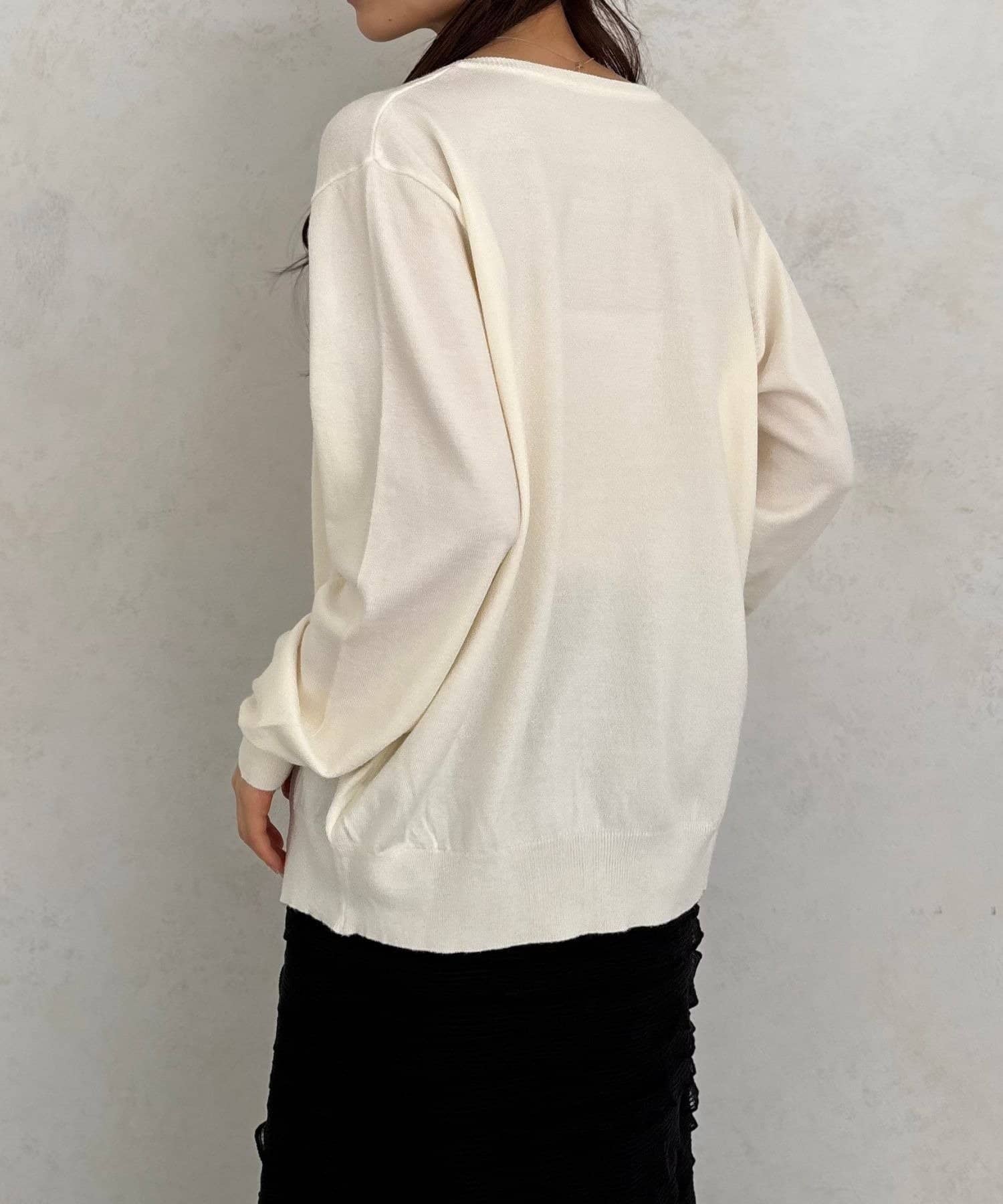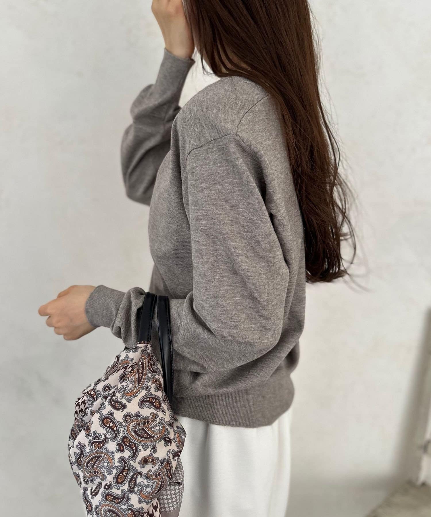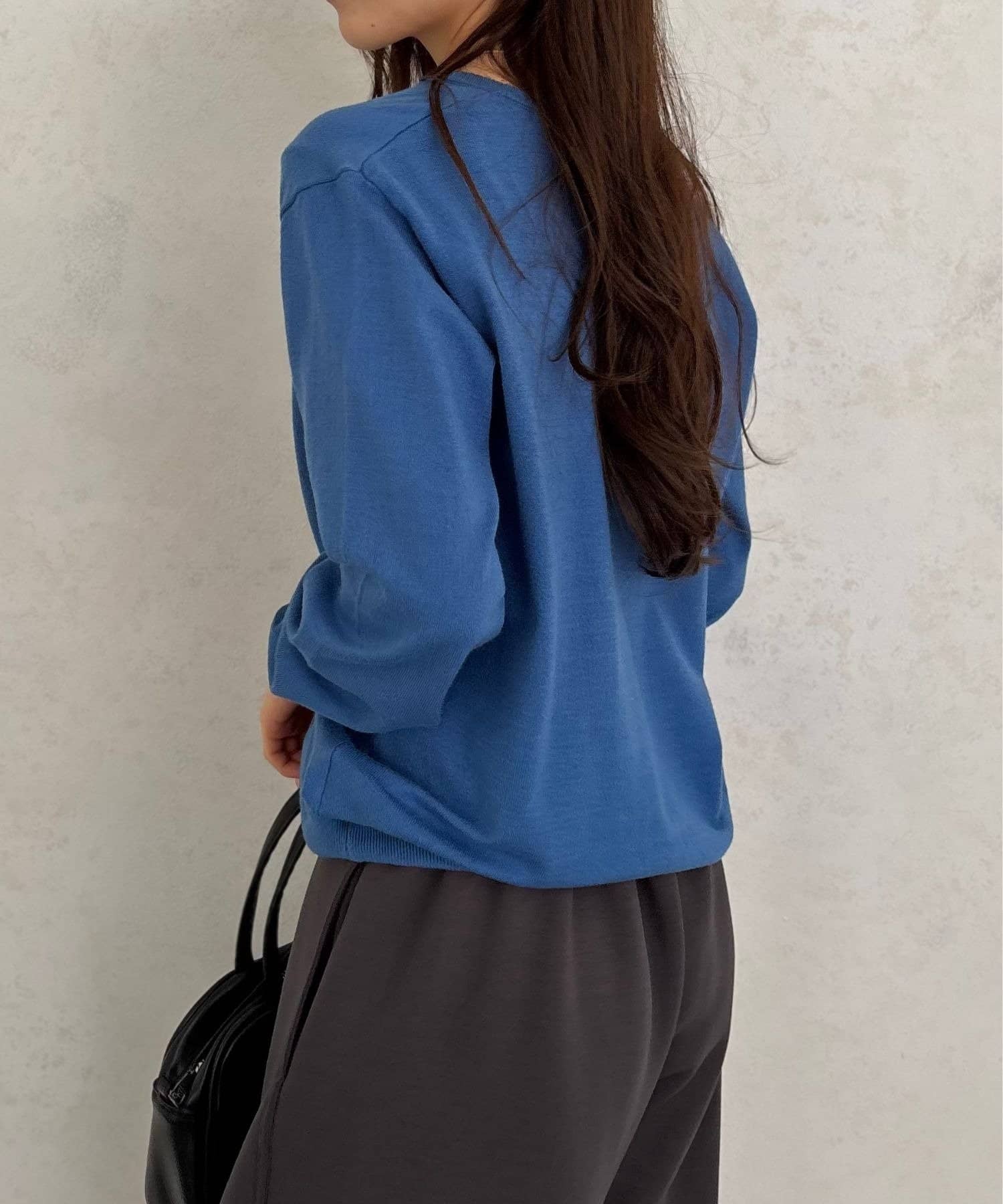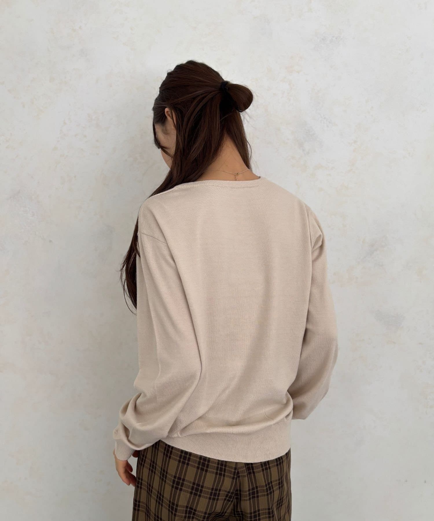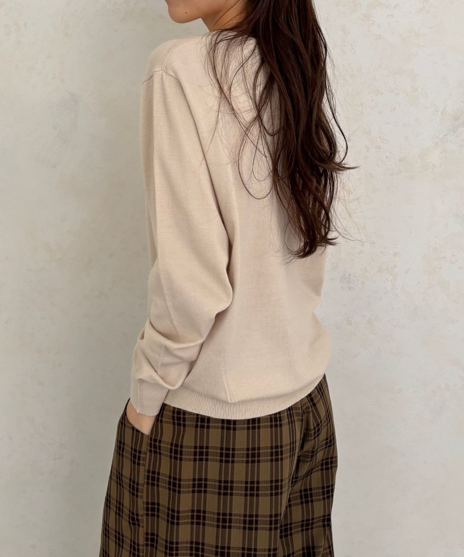 クルーネックのデザインが、デコルテを美しく見せ、女性らしさを引き立てます。
