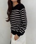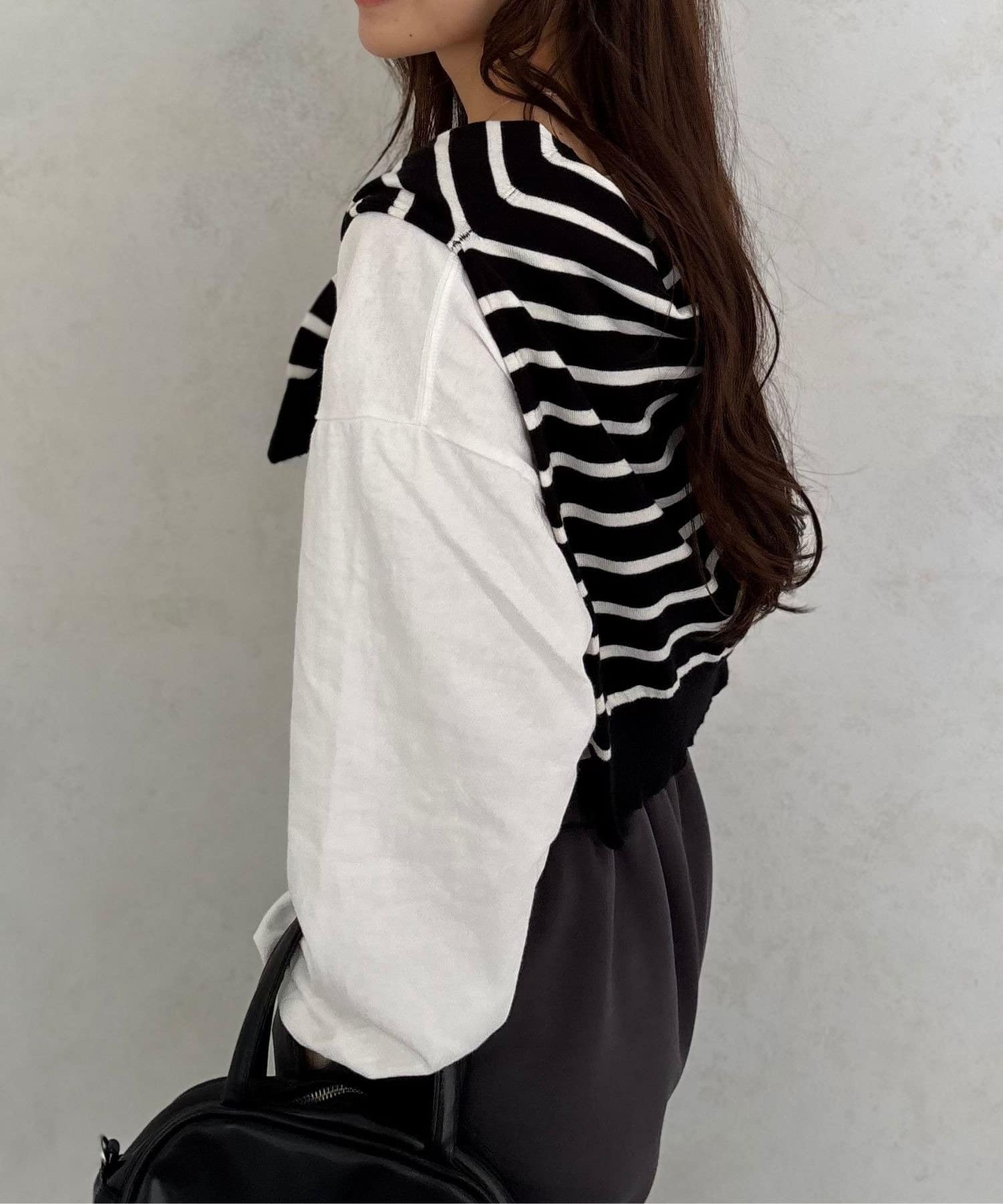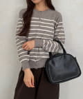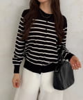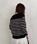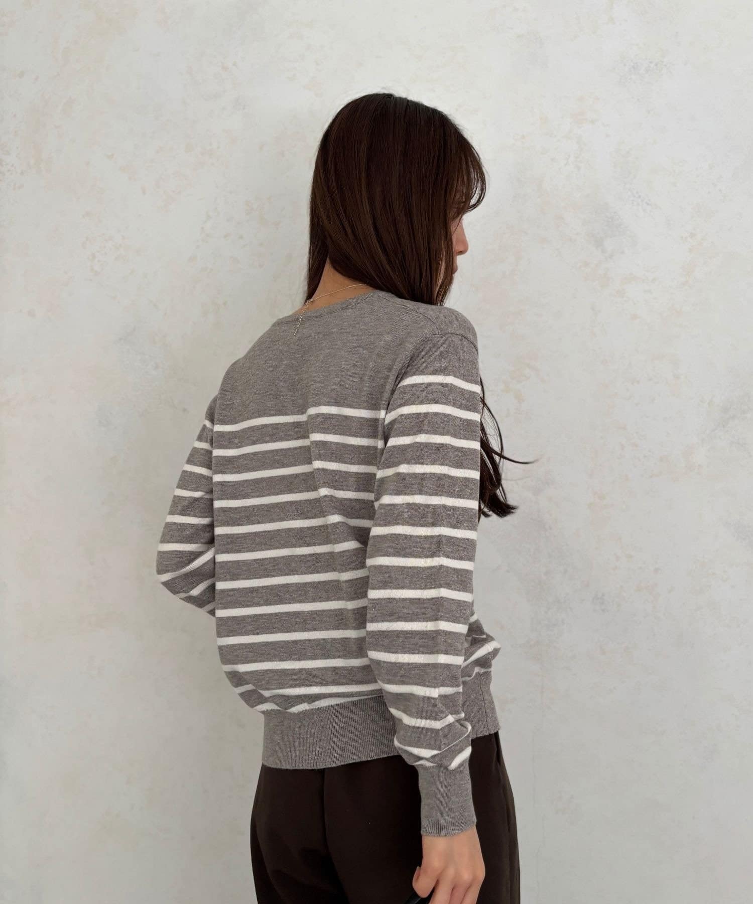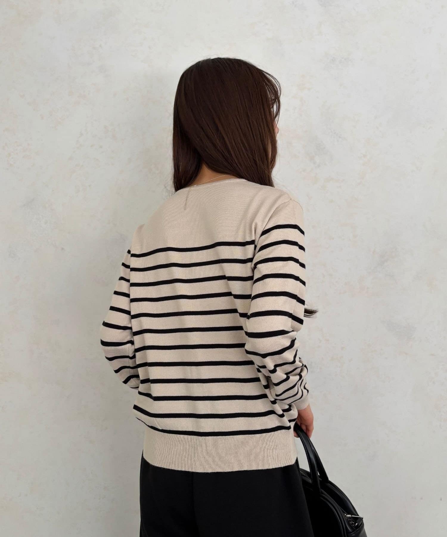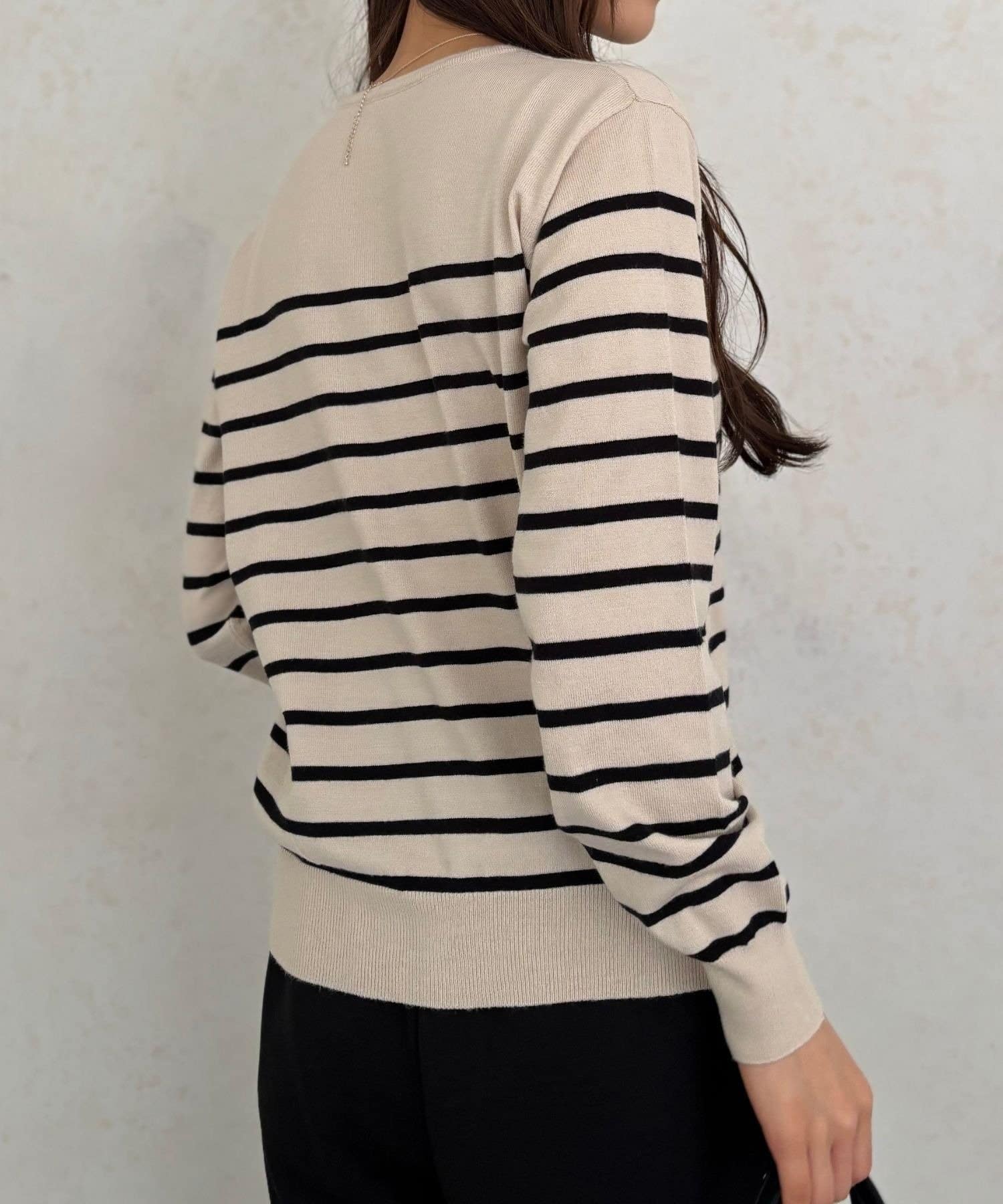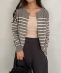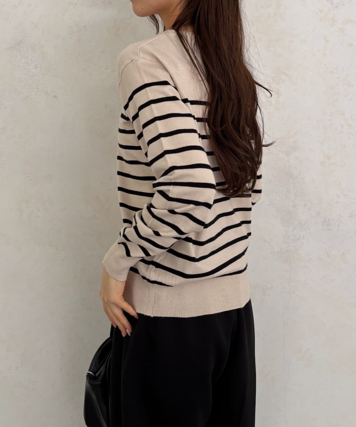 カジュアルになりすぎず、洗練された大人の女性らしさを引き立てる ボーダーニットカーディガン