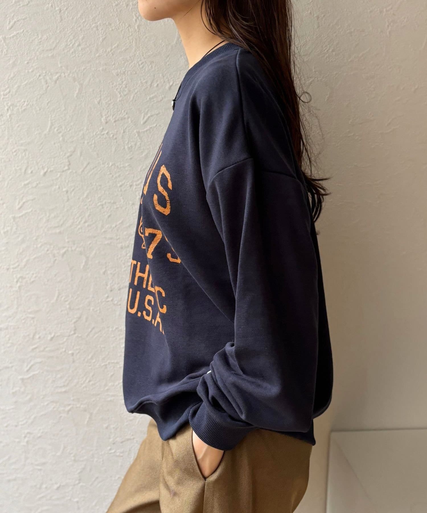 古着のような風合いが魅力の、ヴィンテージライクなロゴプリントスウェット。