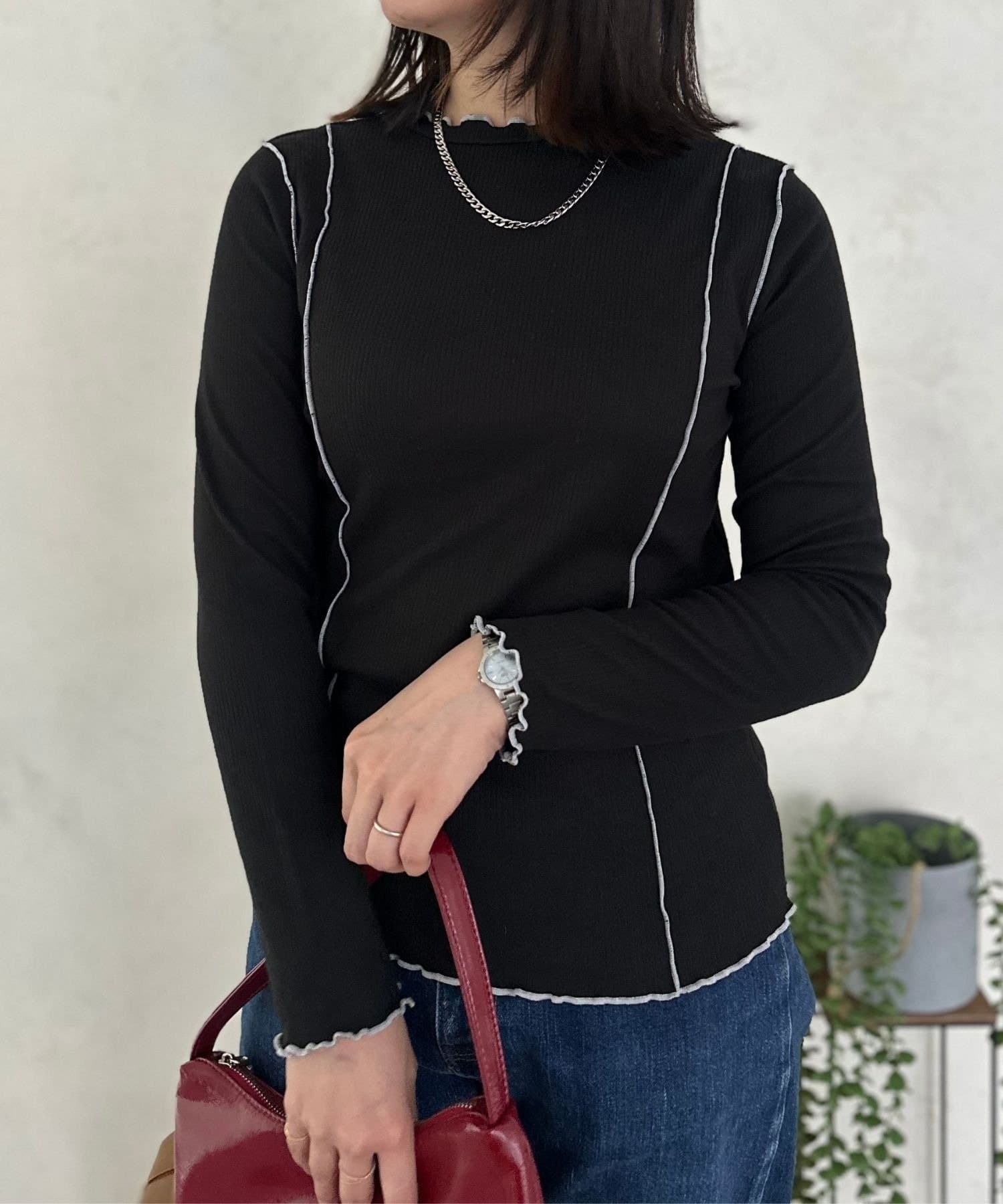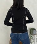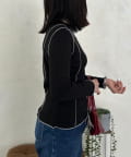 身頃に沿ったパイピングが、全体のシルエットを引き締め、スタイルアップ効果も期待できます。