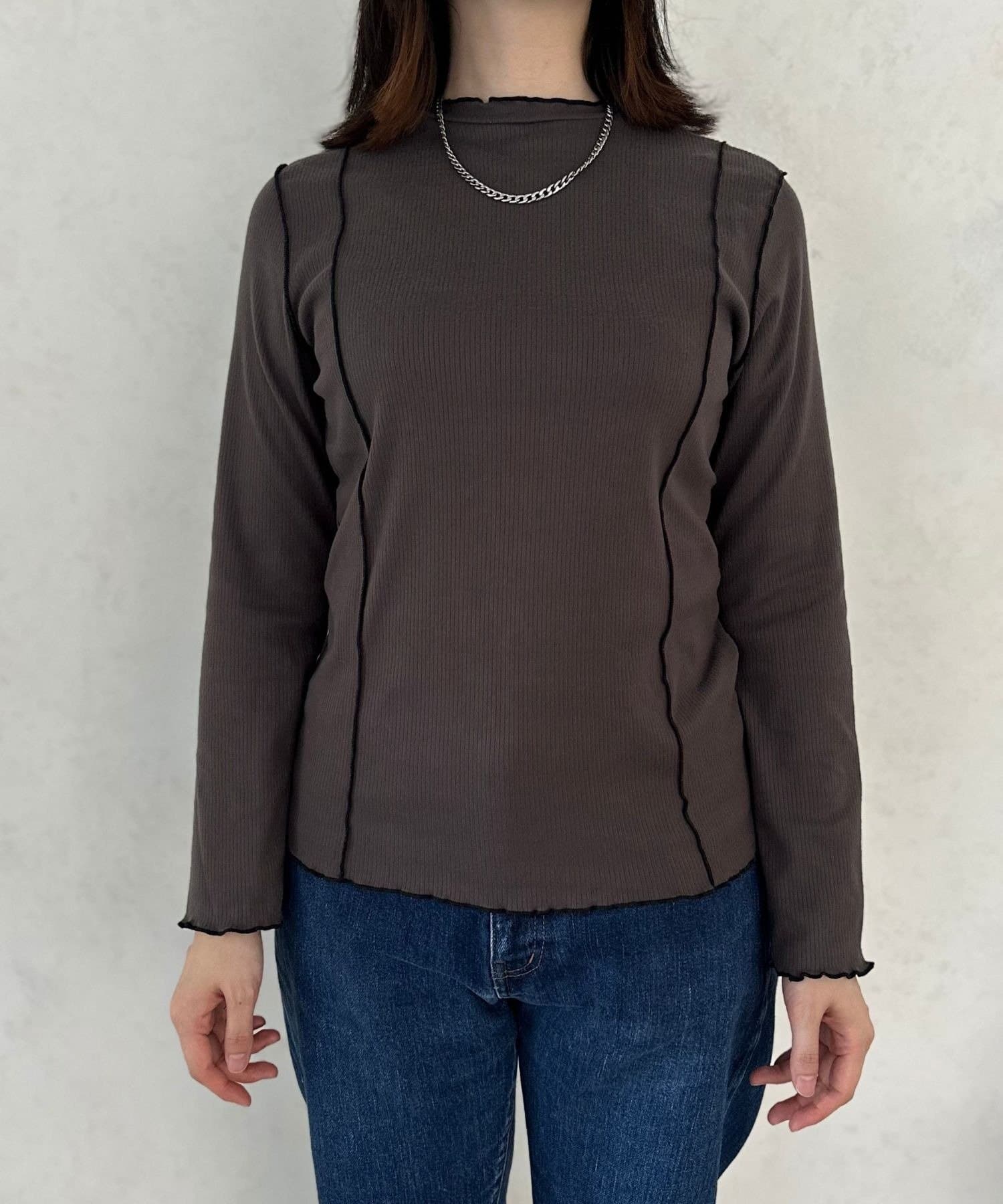 リブ起毛メロウ配色プルオーバー