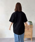 首元にネームデザインを身生地同色でプリントするタグレス仕様で、襟ネームの肌当たりを解消した快適な着心地です。