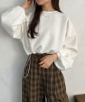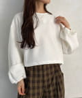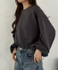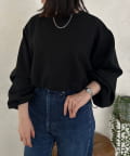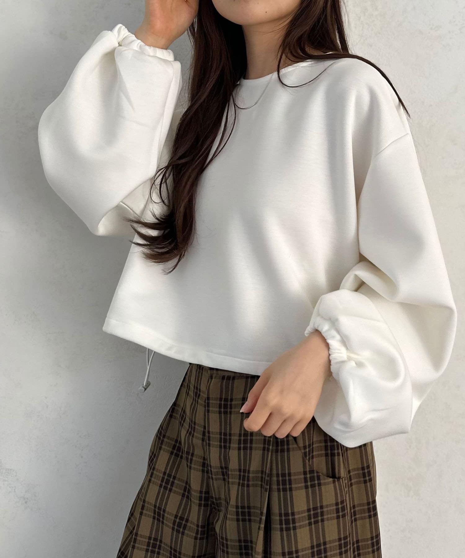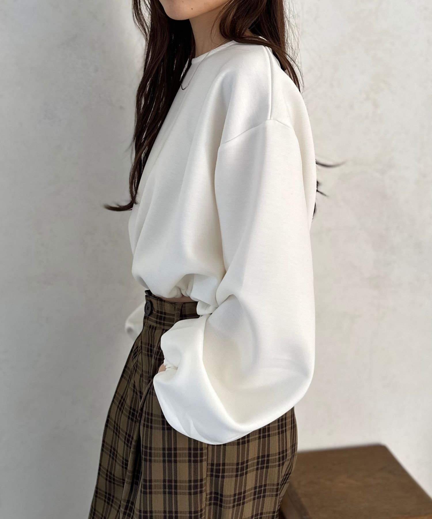 ふんわりとしたボリュームスリーブは、気になる二の腕をカバーしつつ、女性らしい印象をプラス。