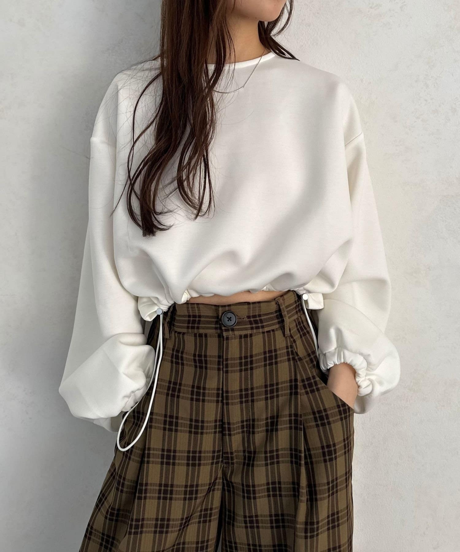 裾を絞って着るとより短丈になり、めちゃくちゃかわいいです!