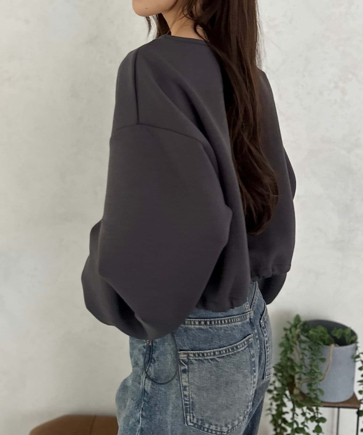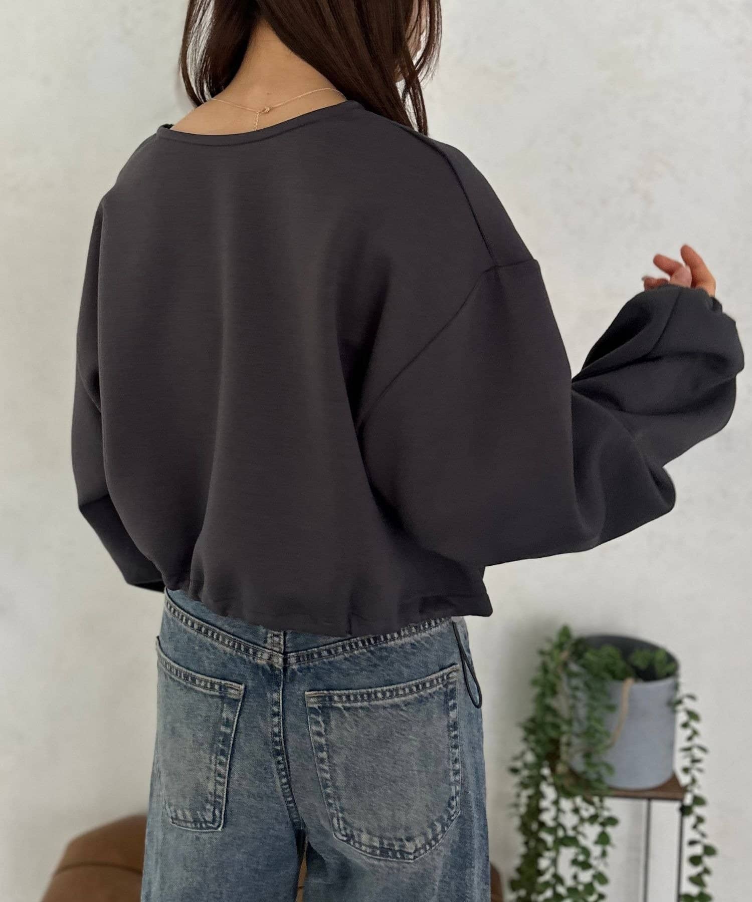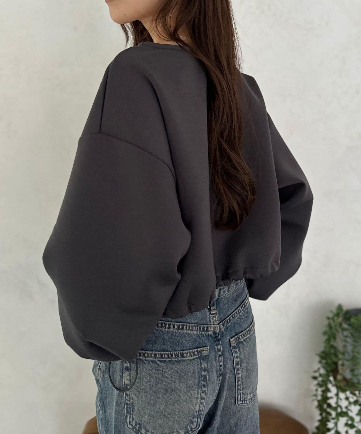 スタイルアップ効果も期待できる短丈デザイン。ハイウエストのボトムスと合わせれば、脚長効果も抜群です。