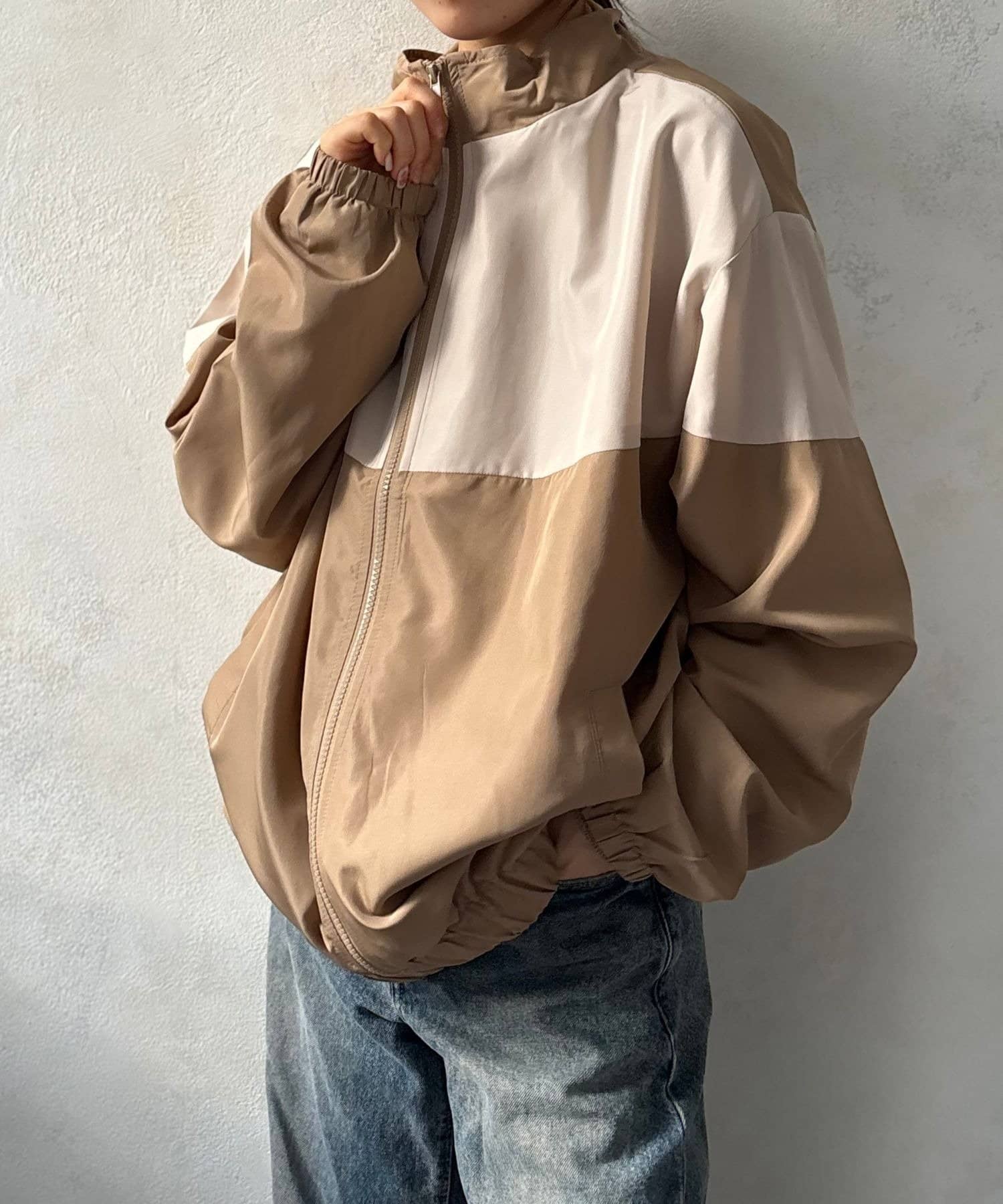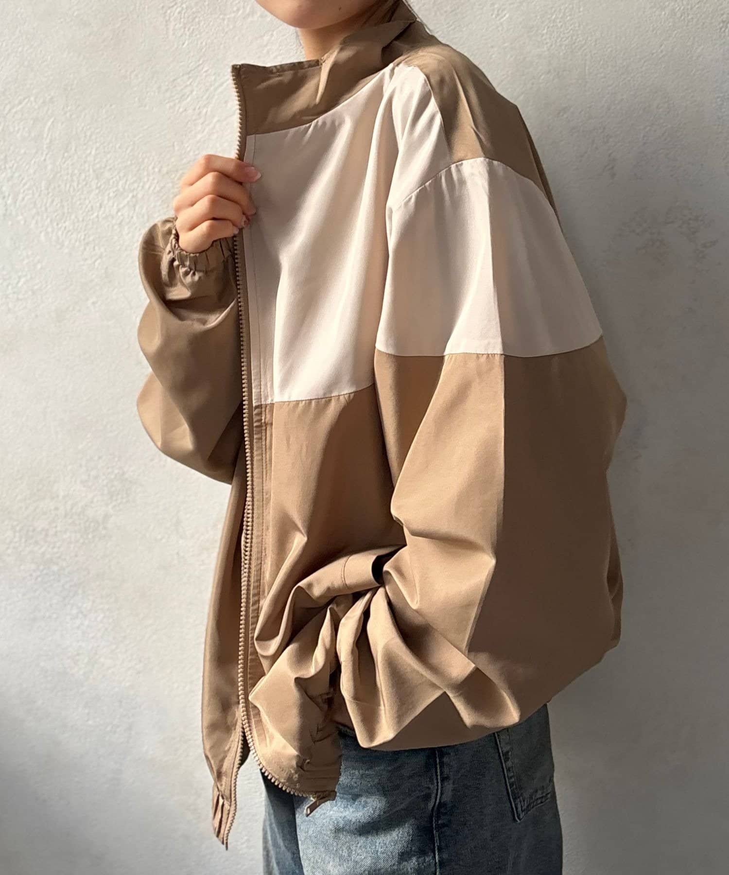 【今売れてます。】配色スタンドカラーzipupブルゾン