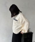フロントのロゴ刺繍が、シンプルな着こなしに遊び心をプラス。