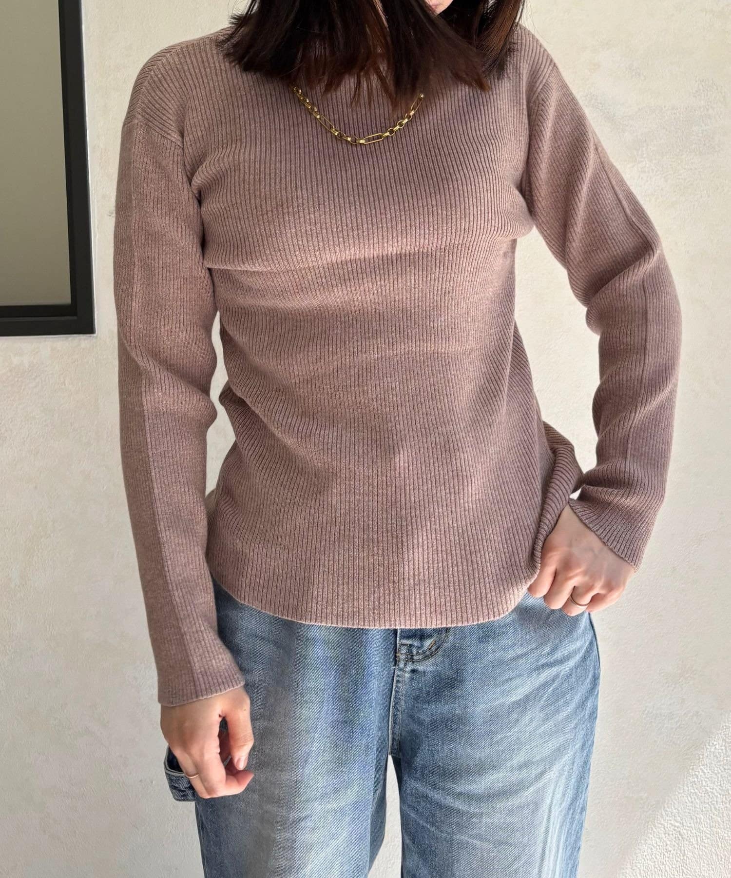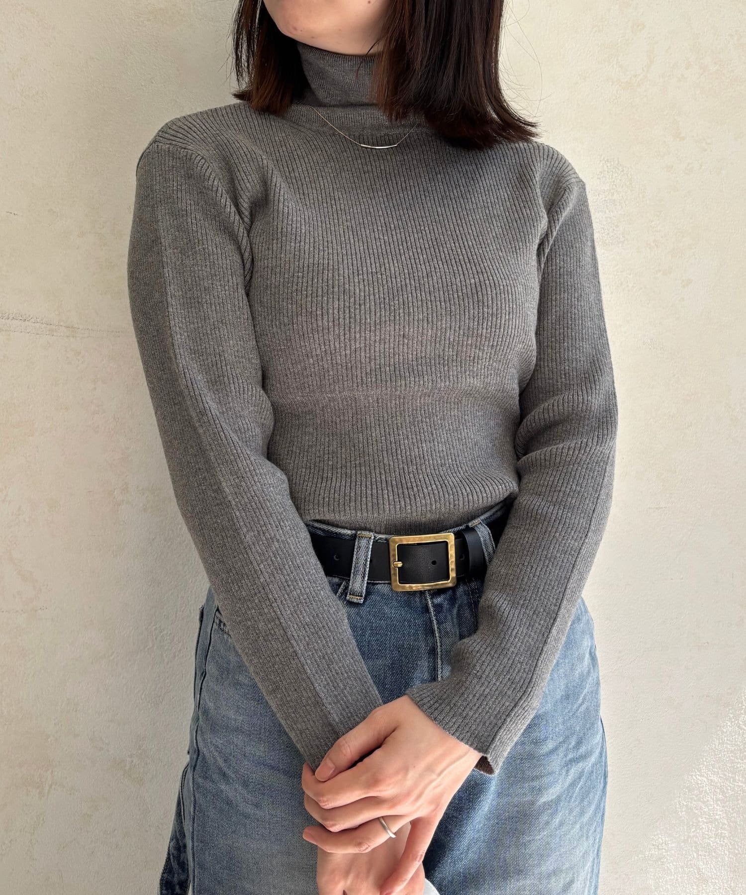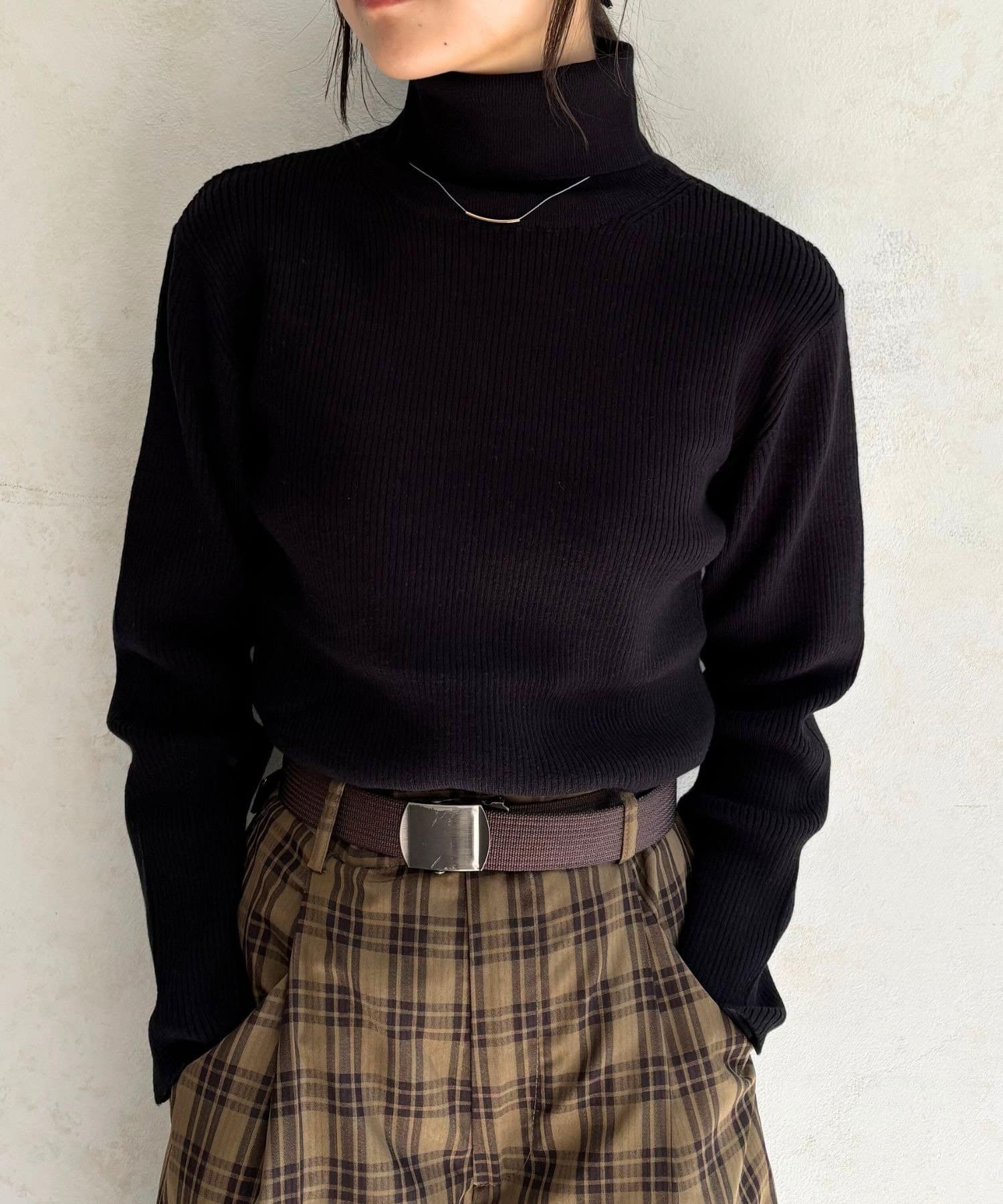 タートルネックなので、首元まで暖かく、秋冬のレイヤードスタイルに重宝します。