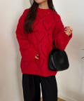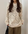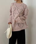 クリスマス・バレンタインにぴったり♡甘すぎないハート柄の透かし編みニット