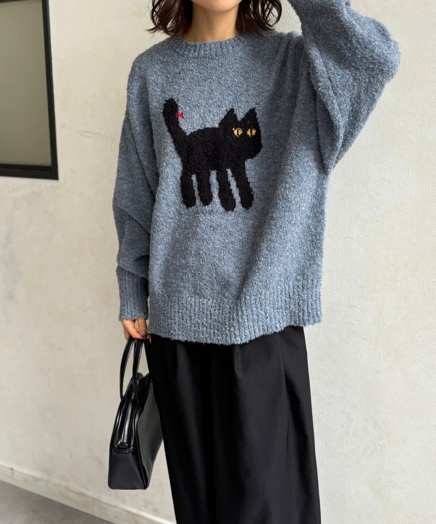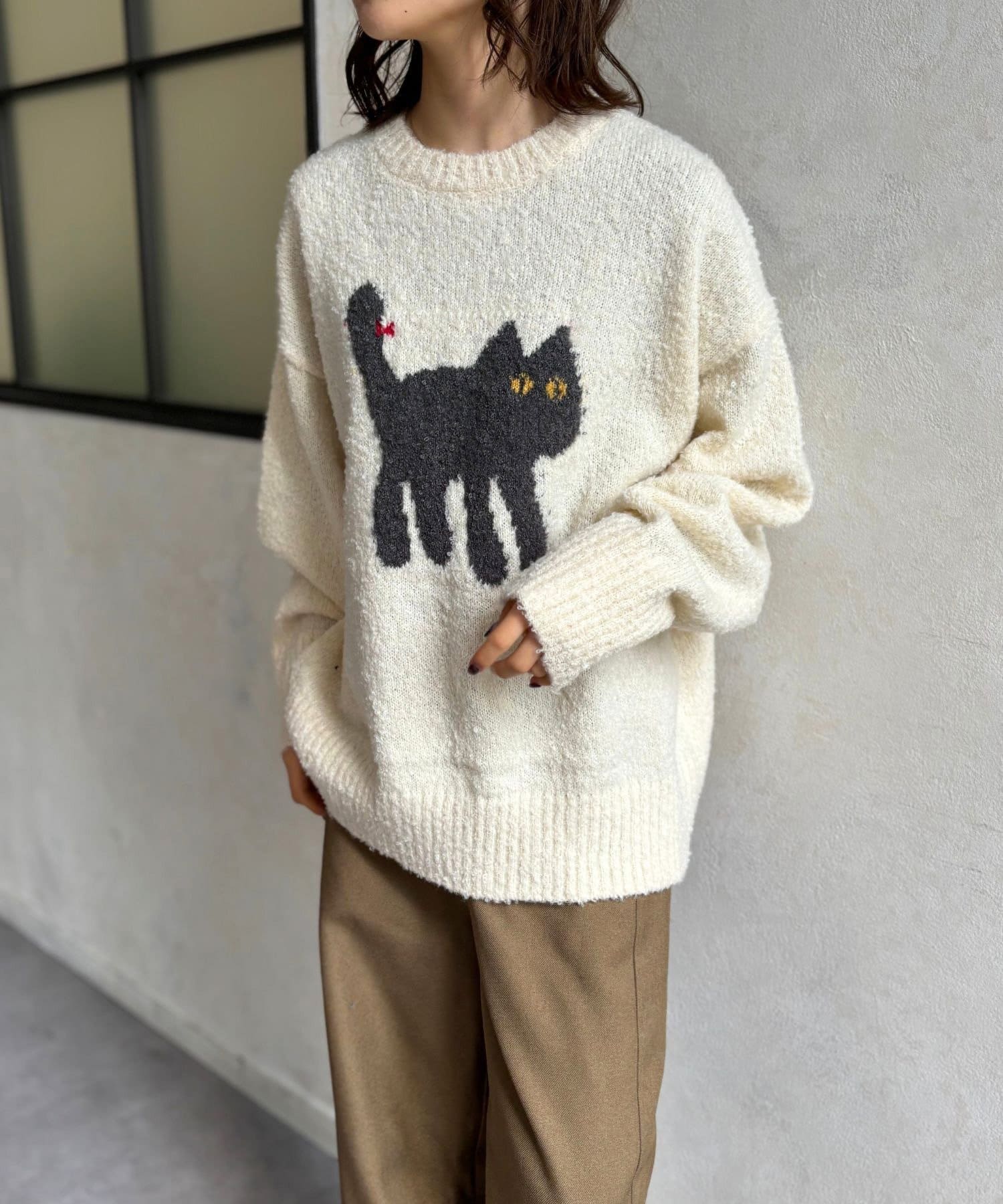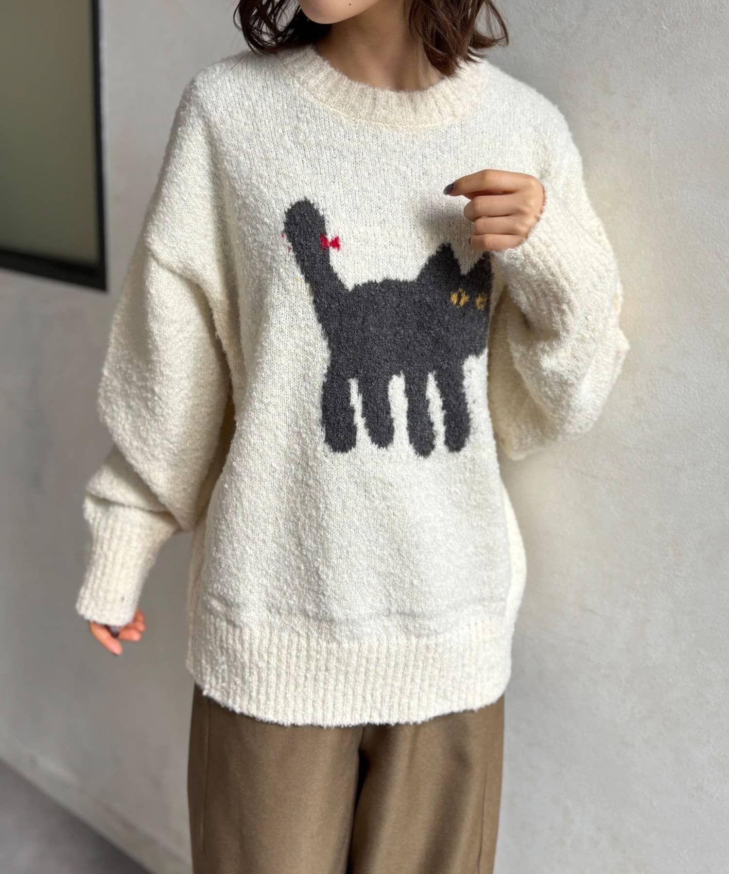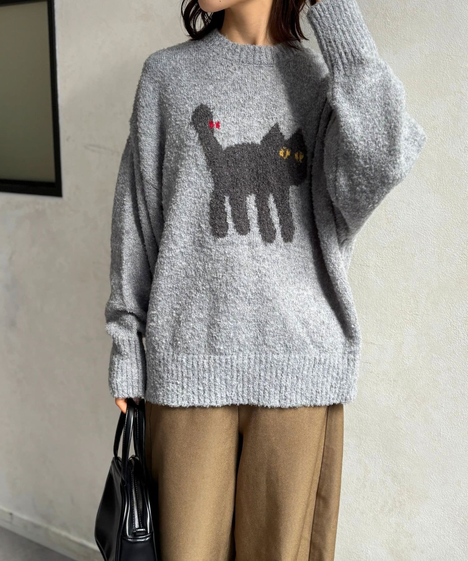 甘すぎない、でもどこかキュートなねこちゃんニットプルオーバー
