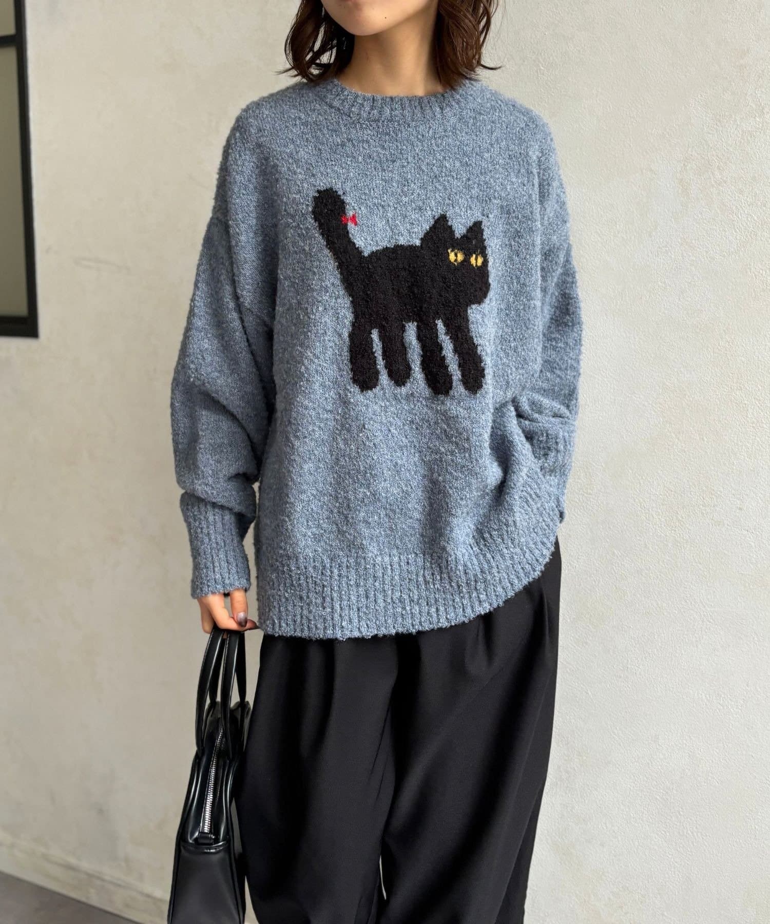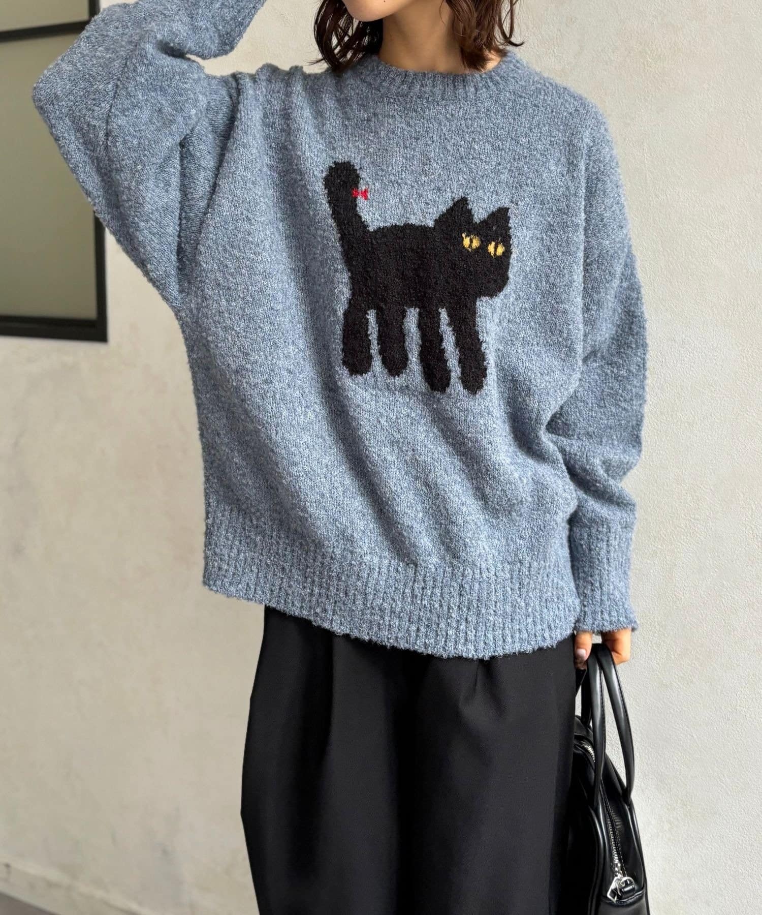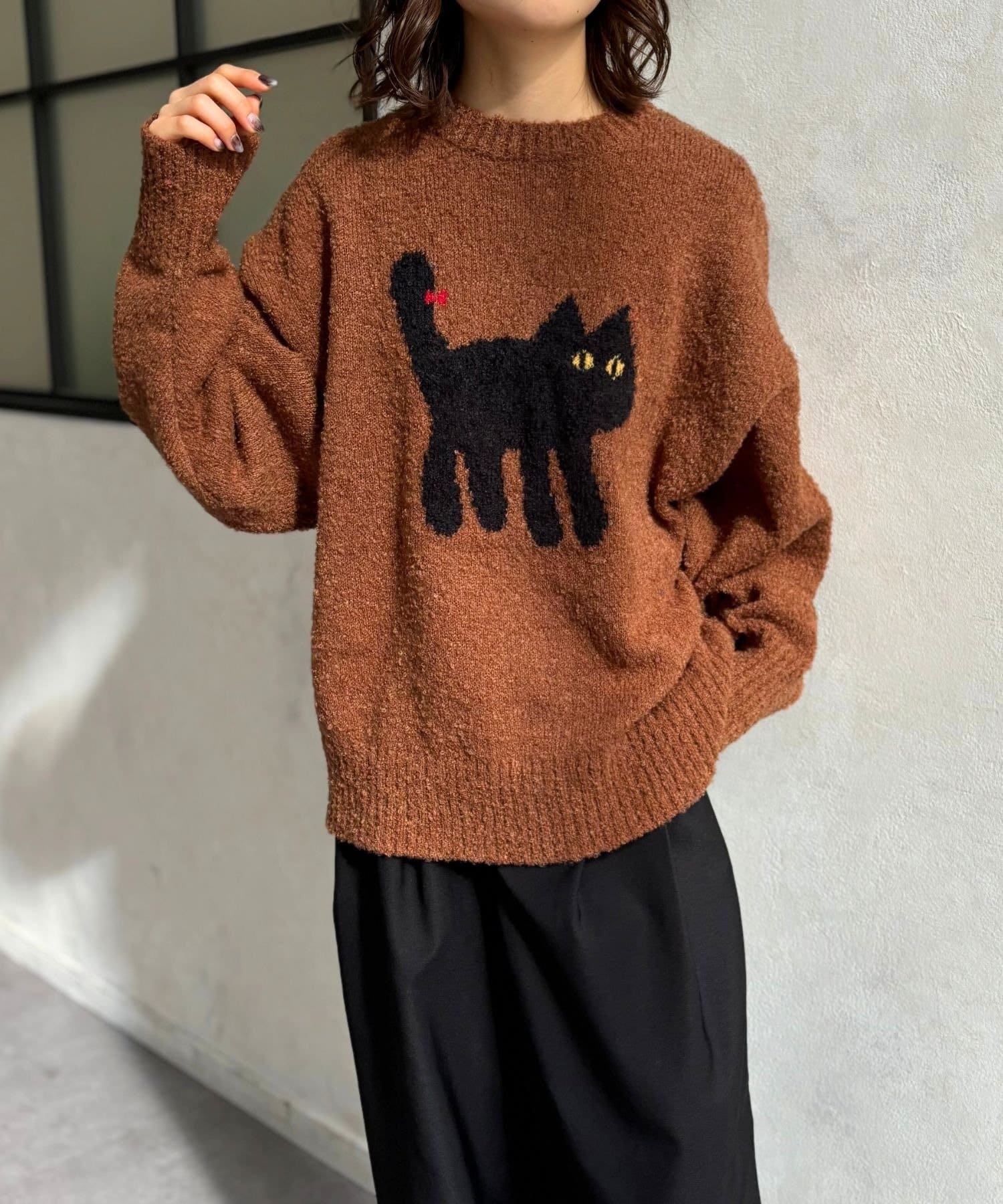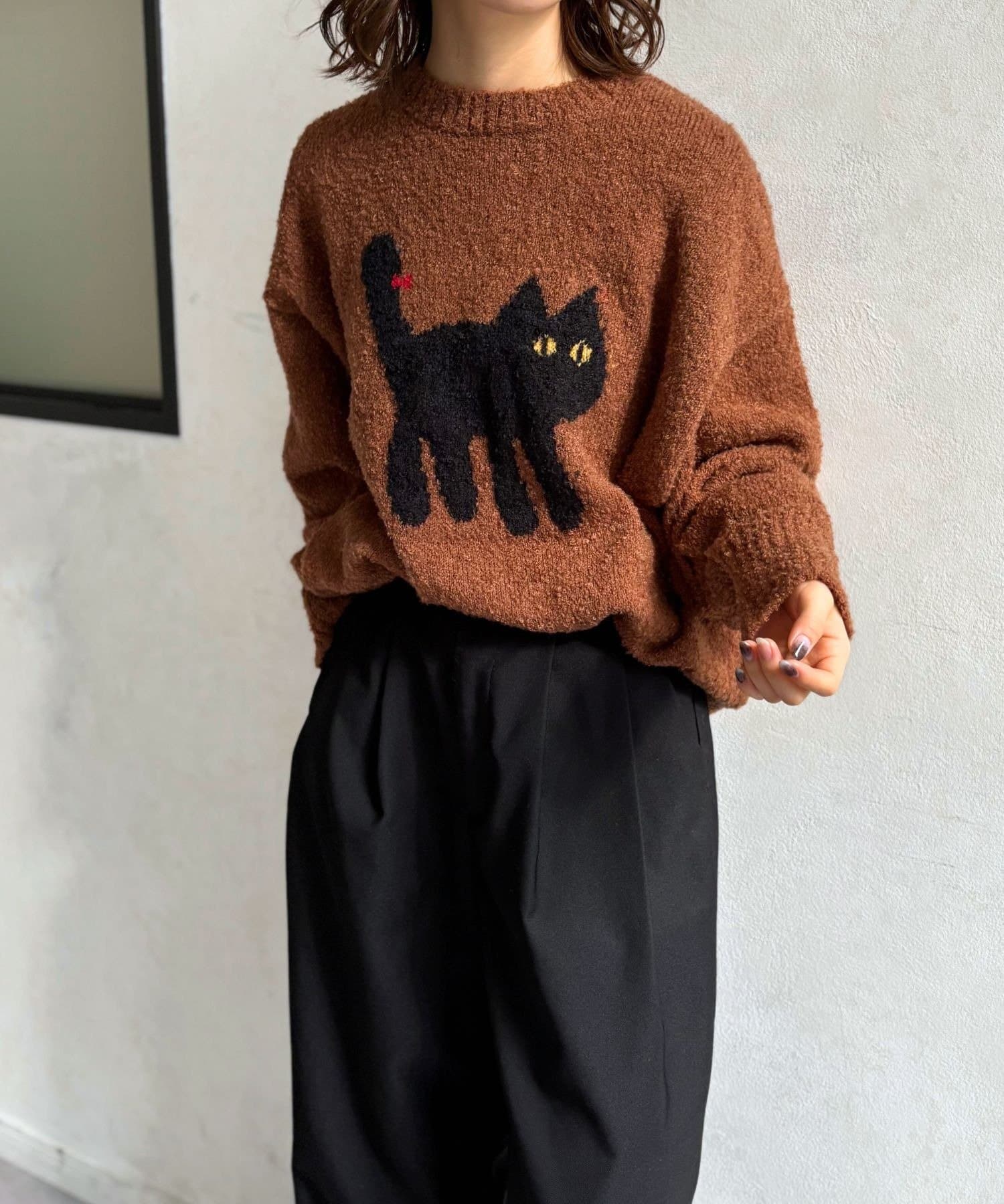 甘すぎない、でもどこかキュートなねこちゃんニットプルオーバー