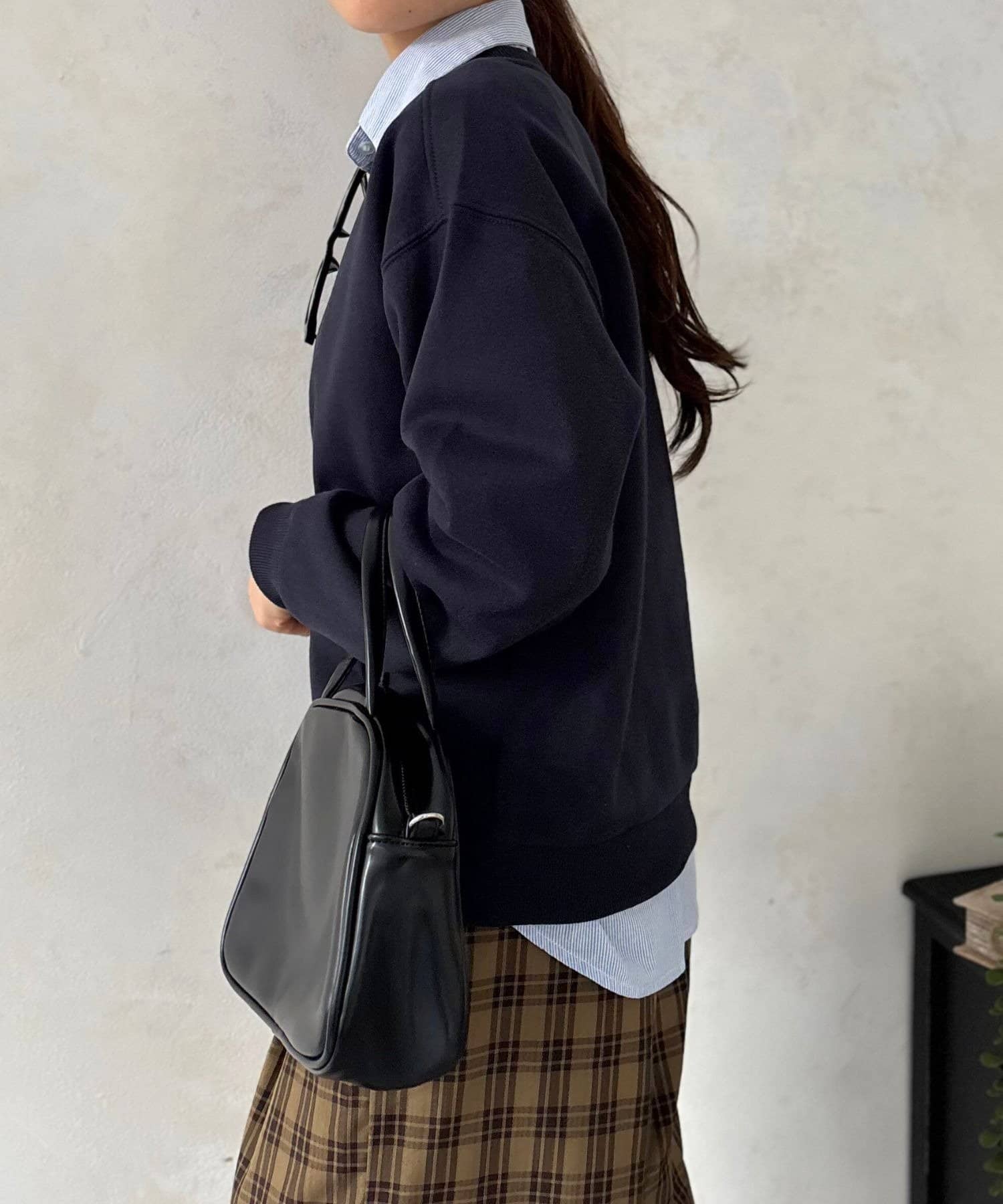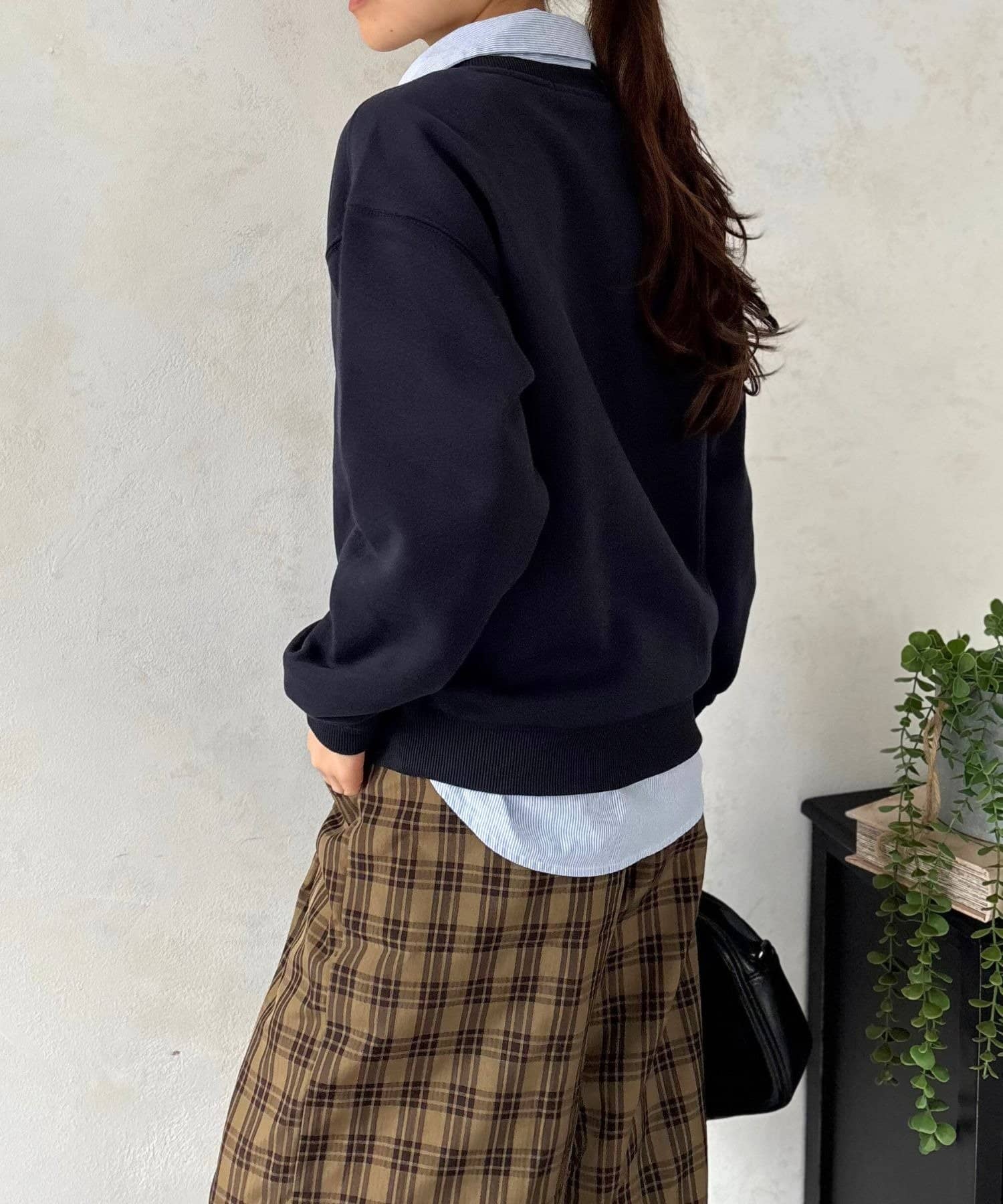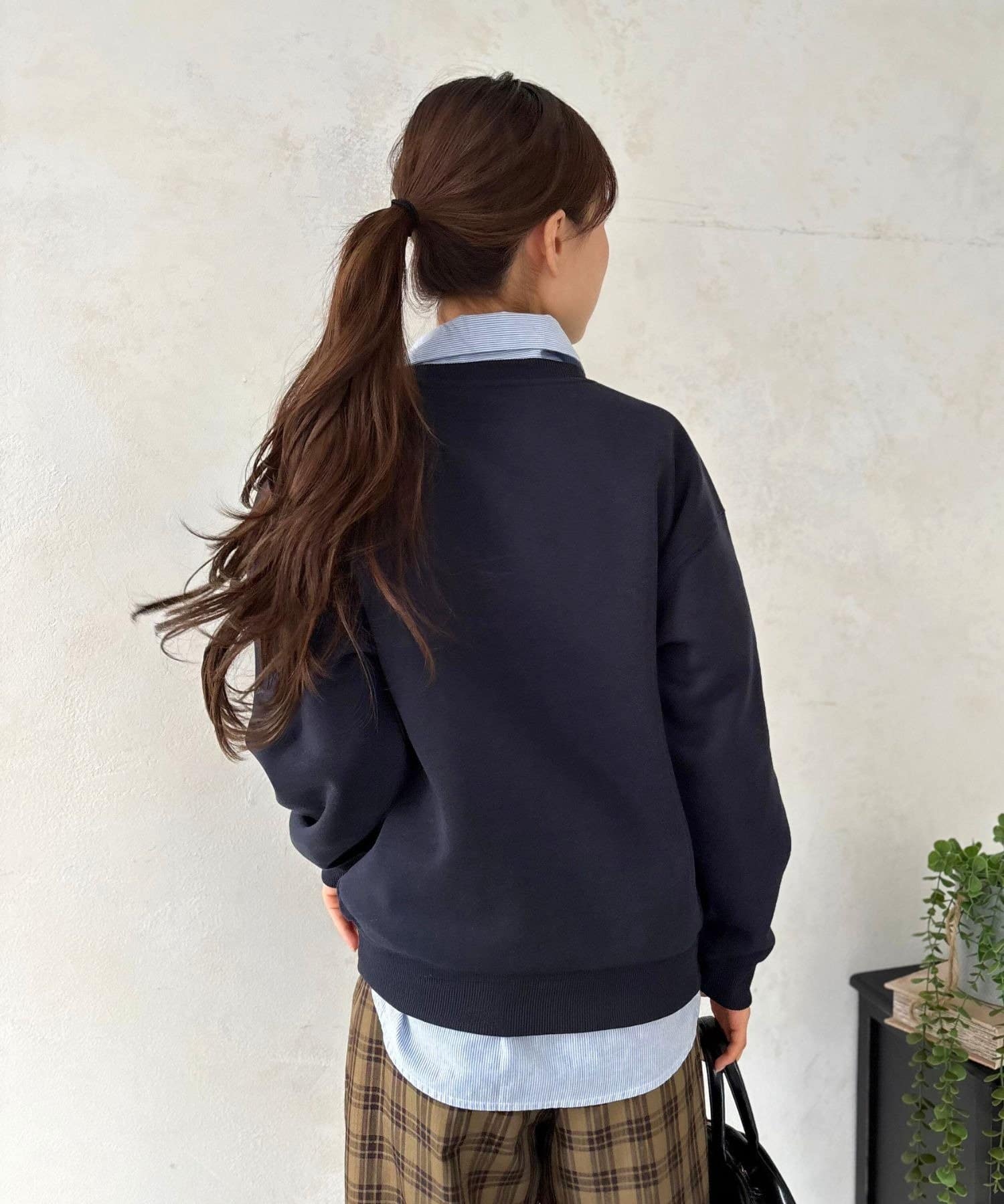 トレーナーはダル着に見えがちですが、シャツなどをレイヤードするだけで一気にこなれ感が出ます!