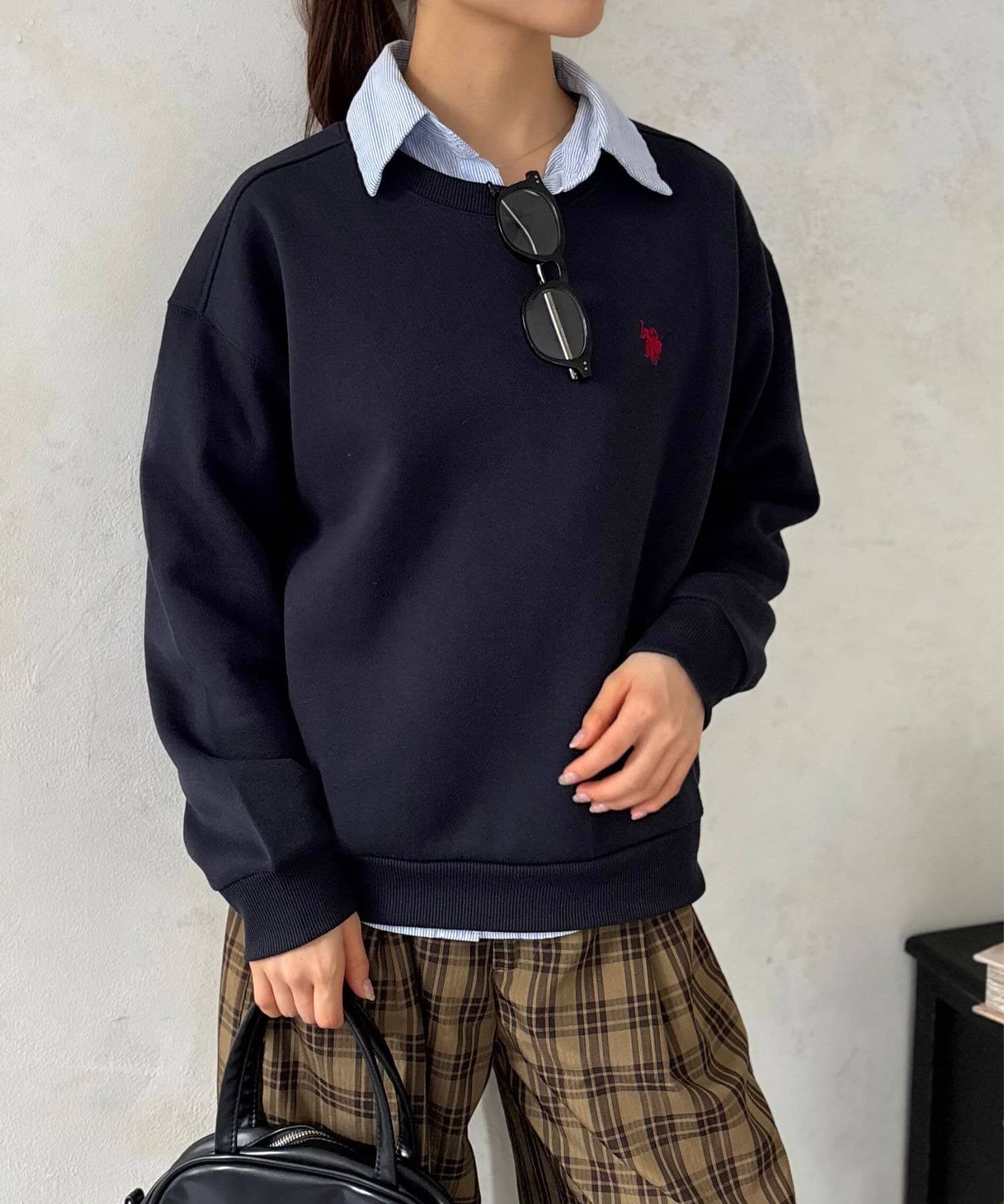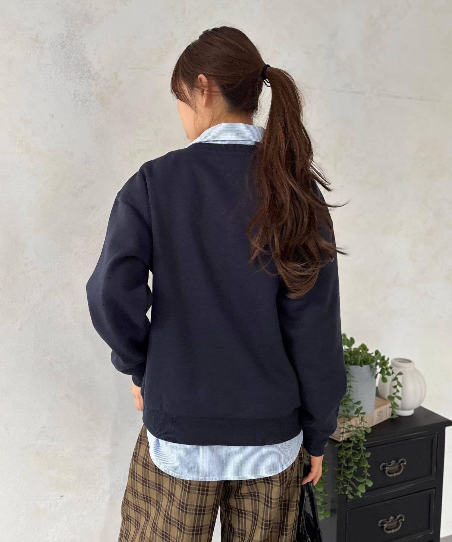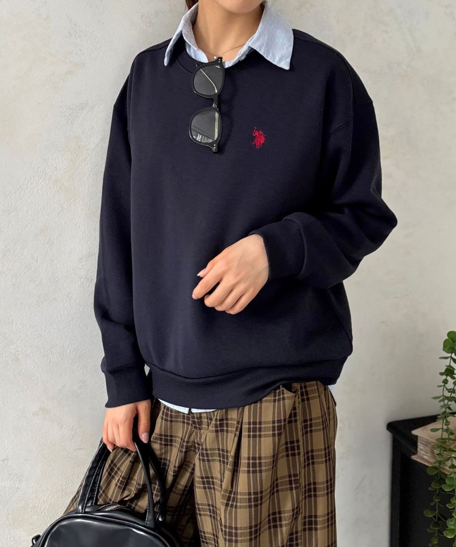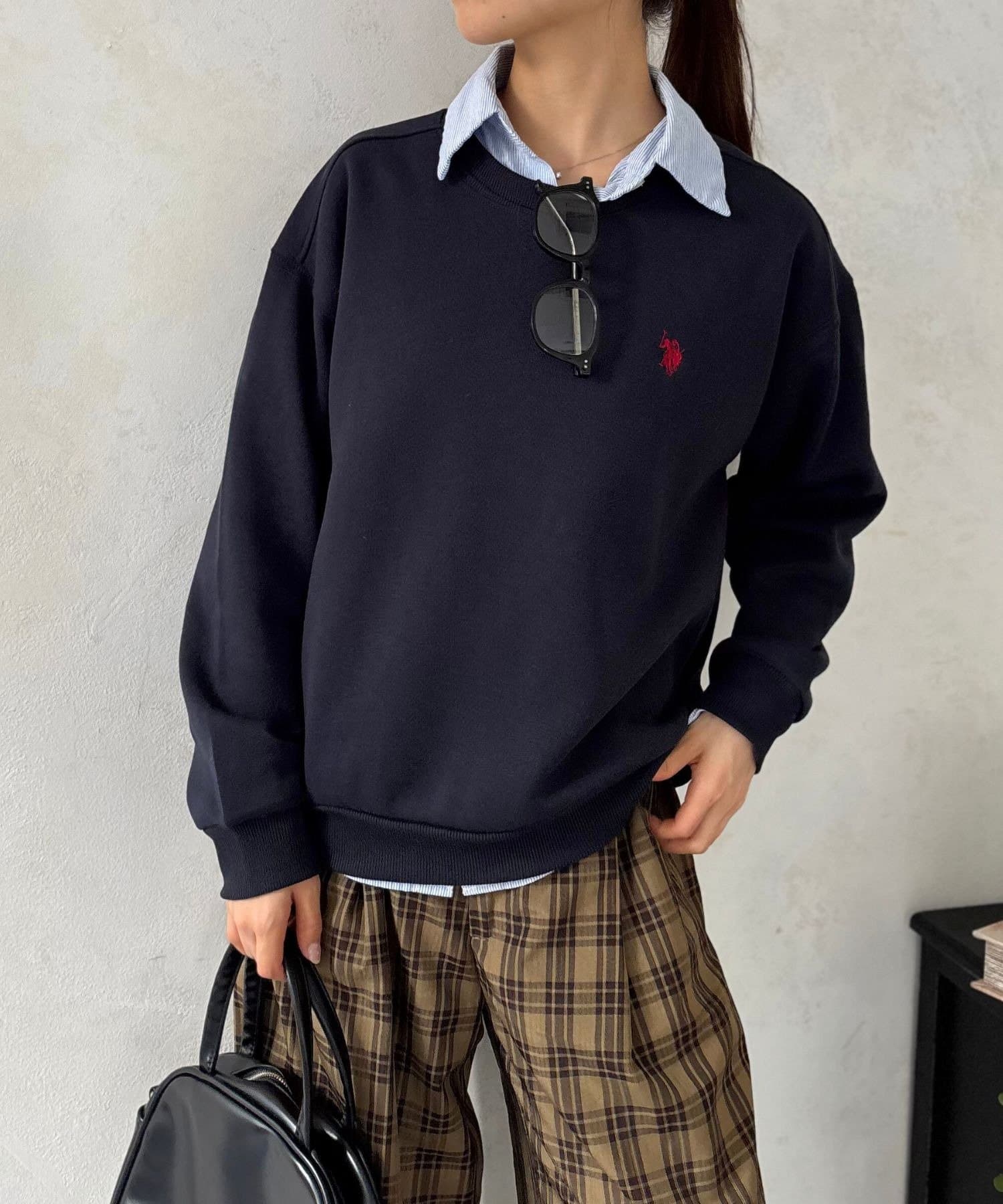 トレーナーはダル着に見えがちですが、シャツなどをレイヤードするだけで一気にこなれ感が出ます!