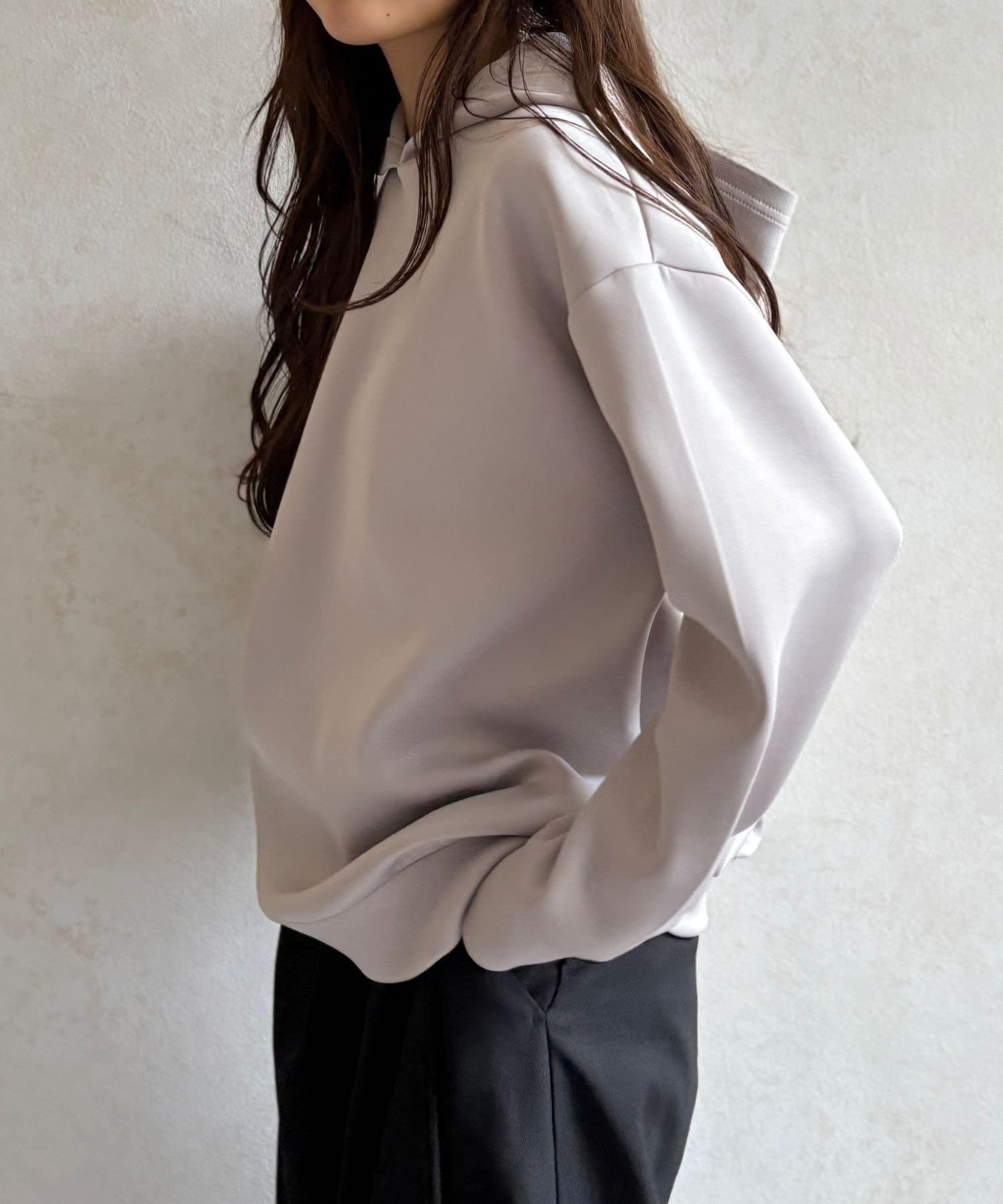 程よいハリ感と滑らかな肌触りで、カジュアルになりすぎず、上品な印象に。
