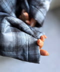 落ち着いた色合いのチェック柄は、カジュアルながらも上品な印象。
