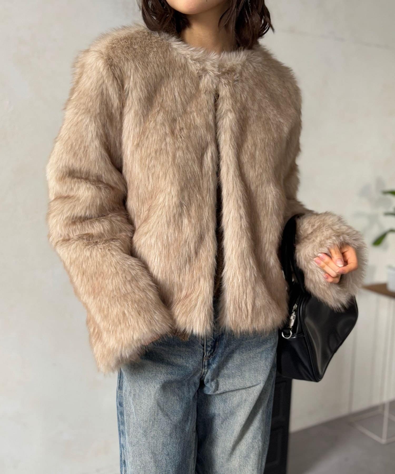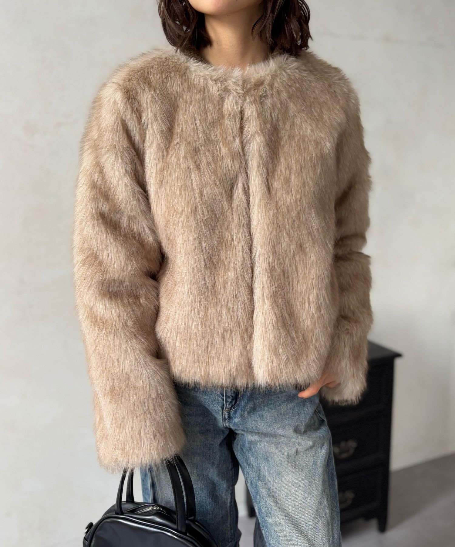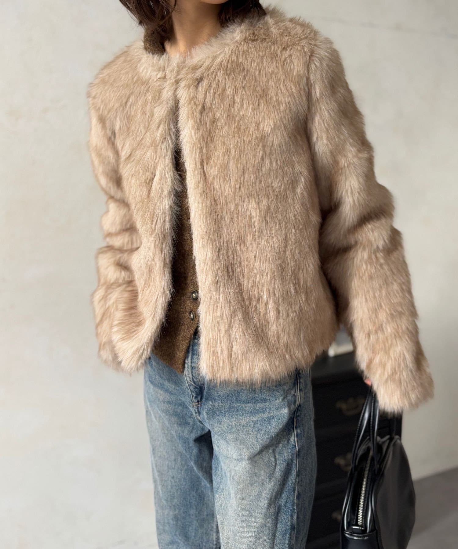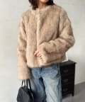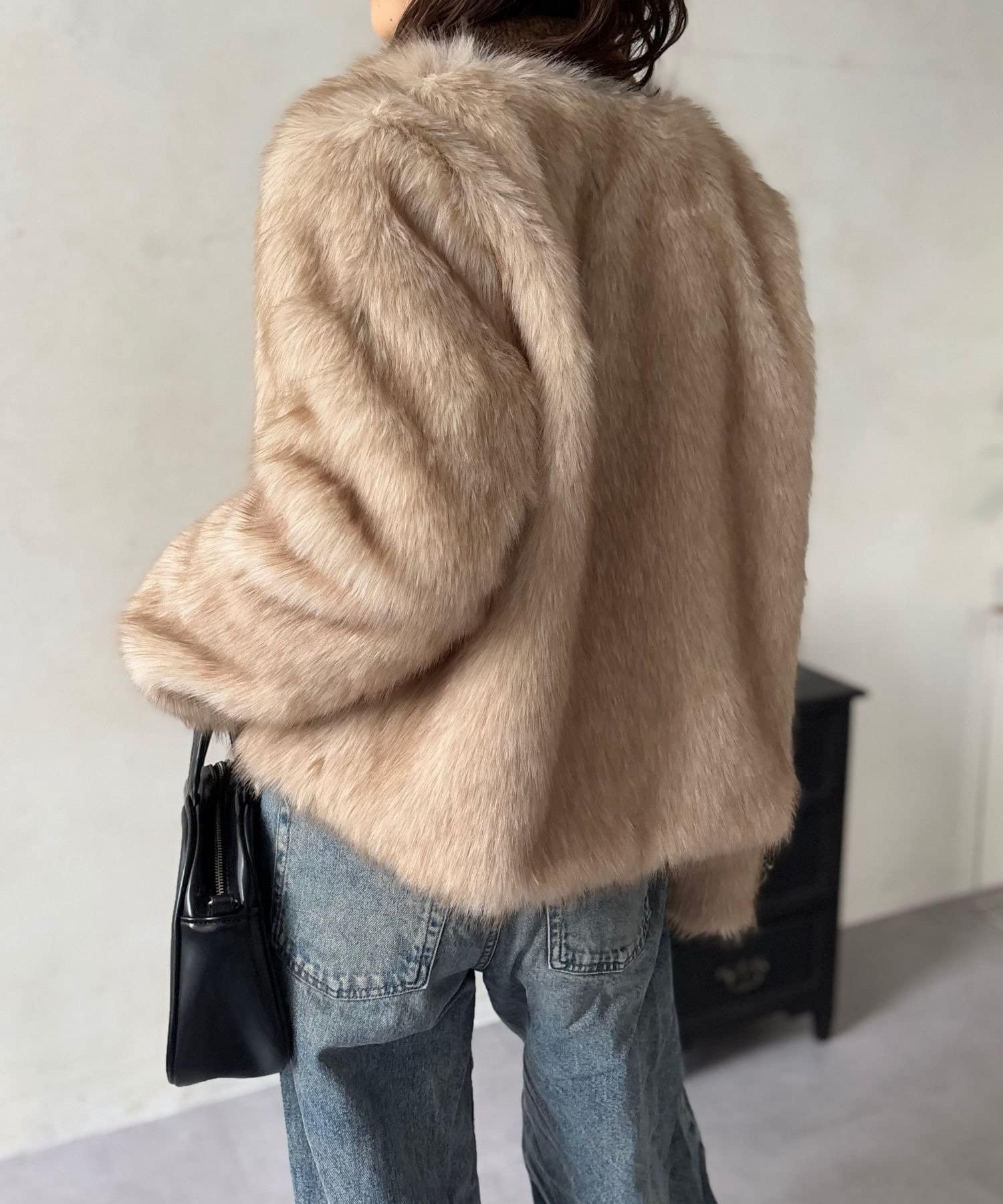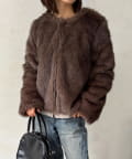 【上品見え/スタイルアップ】ノーカラーファージャケット