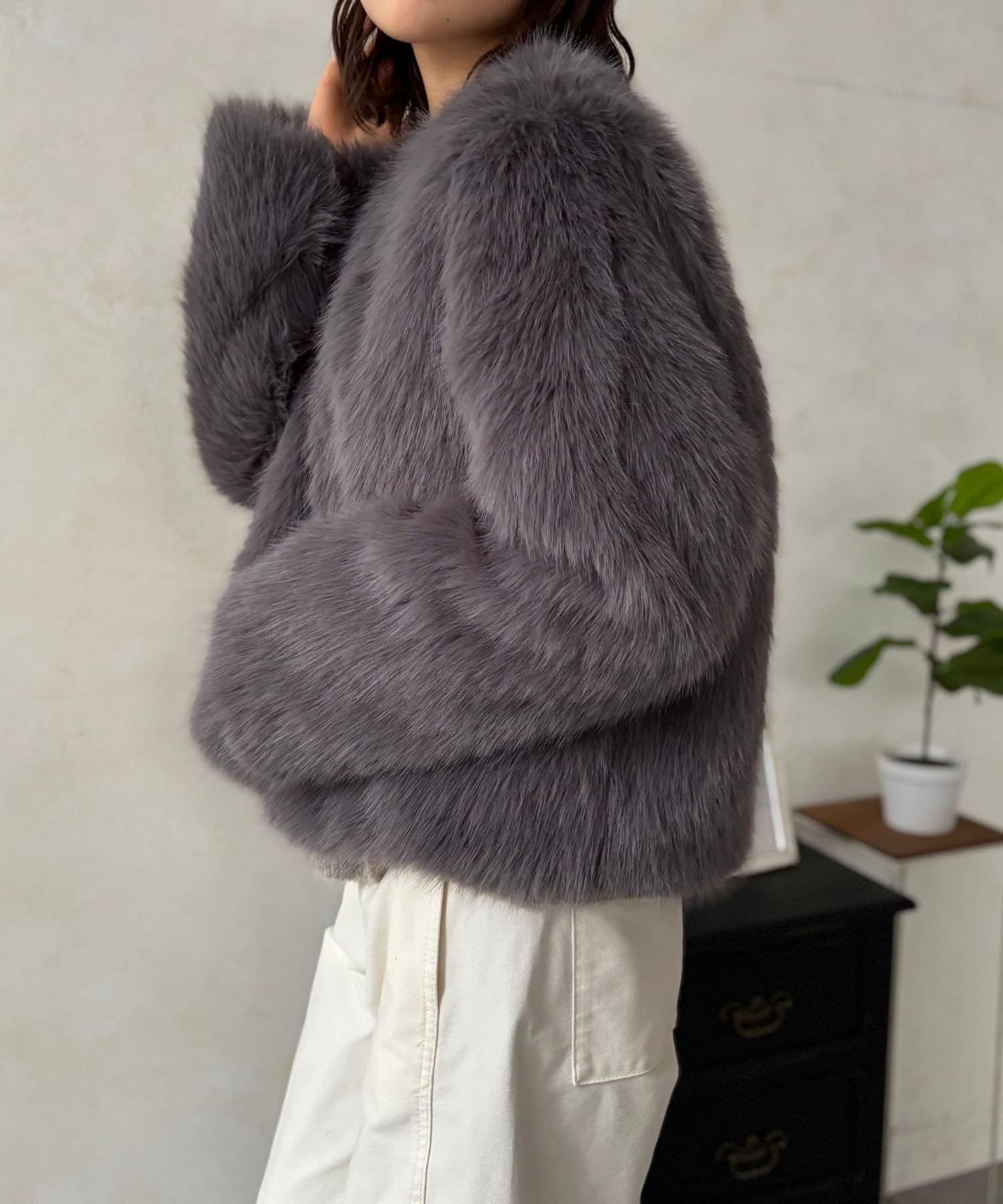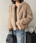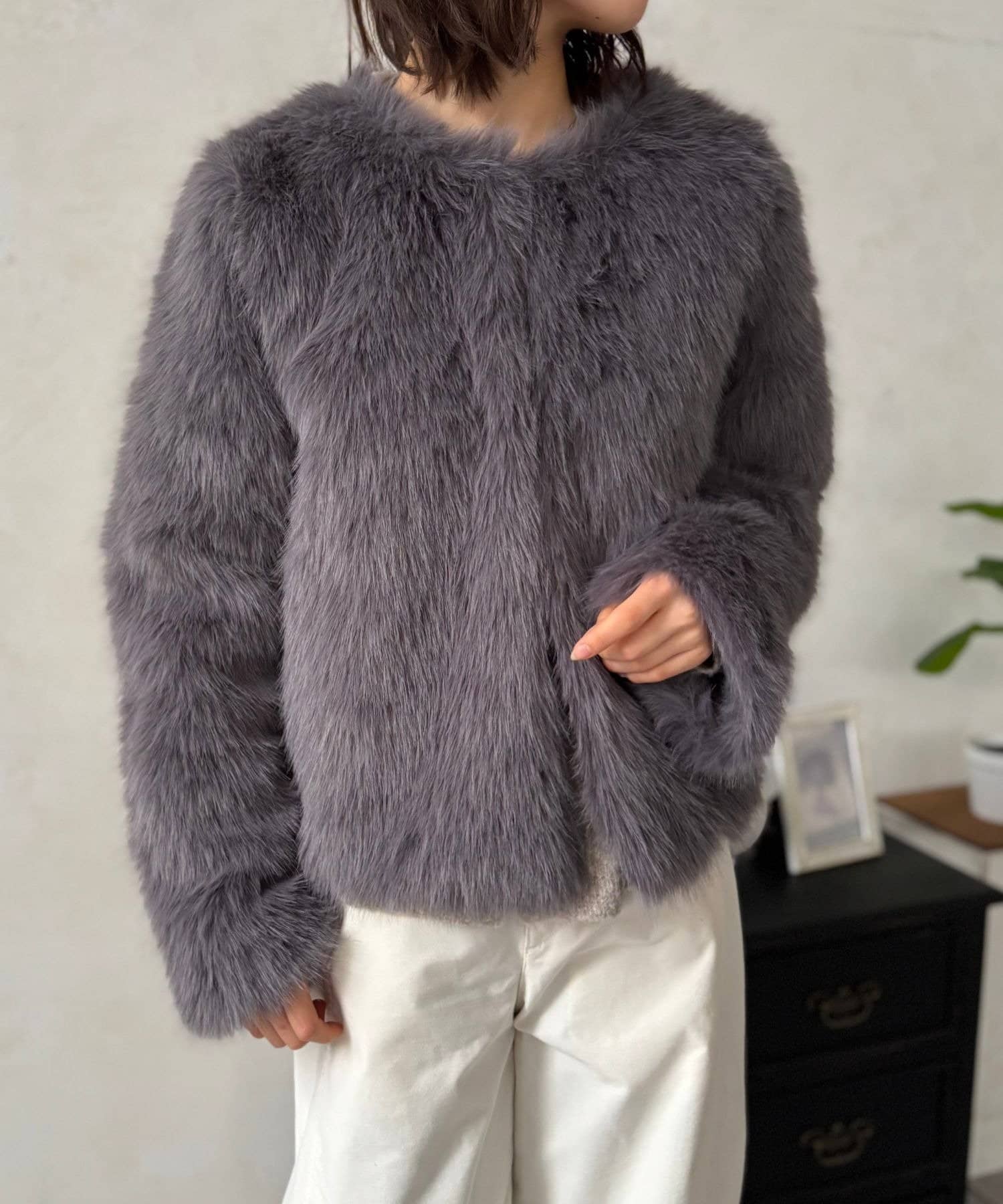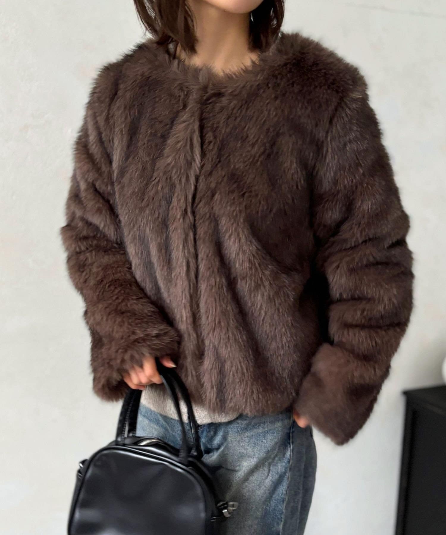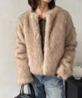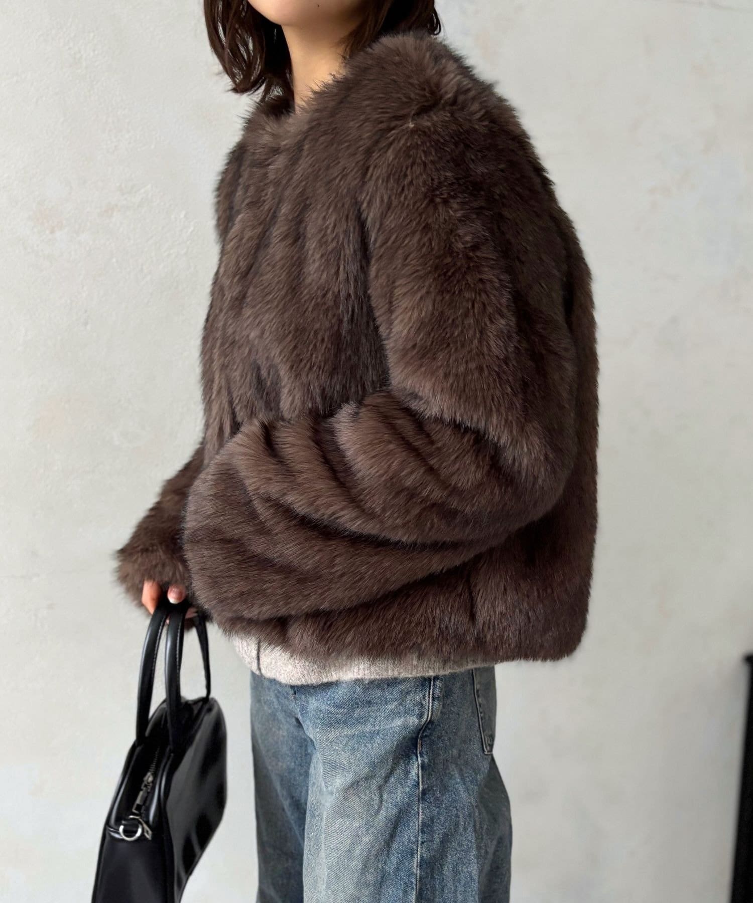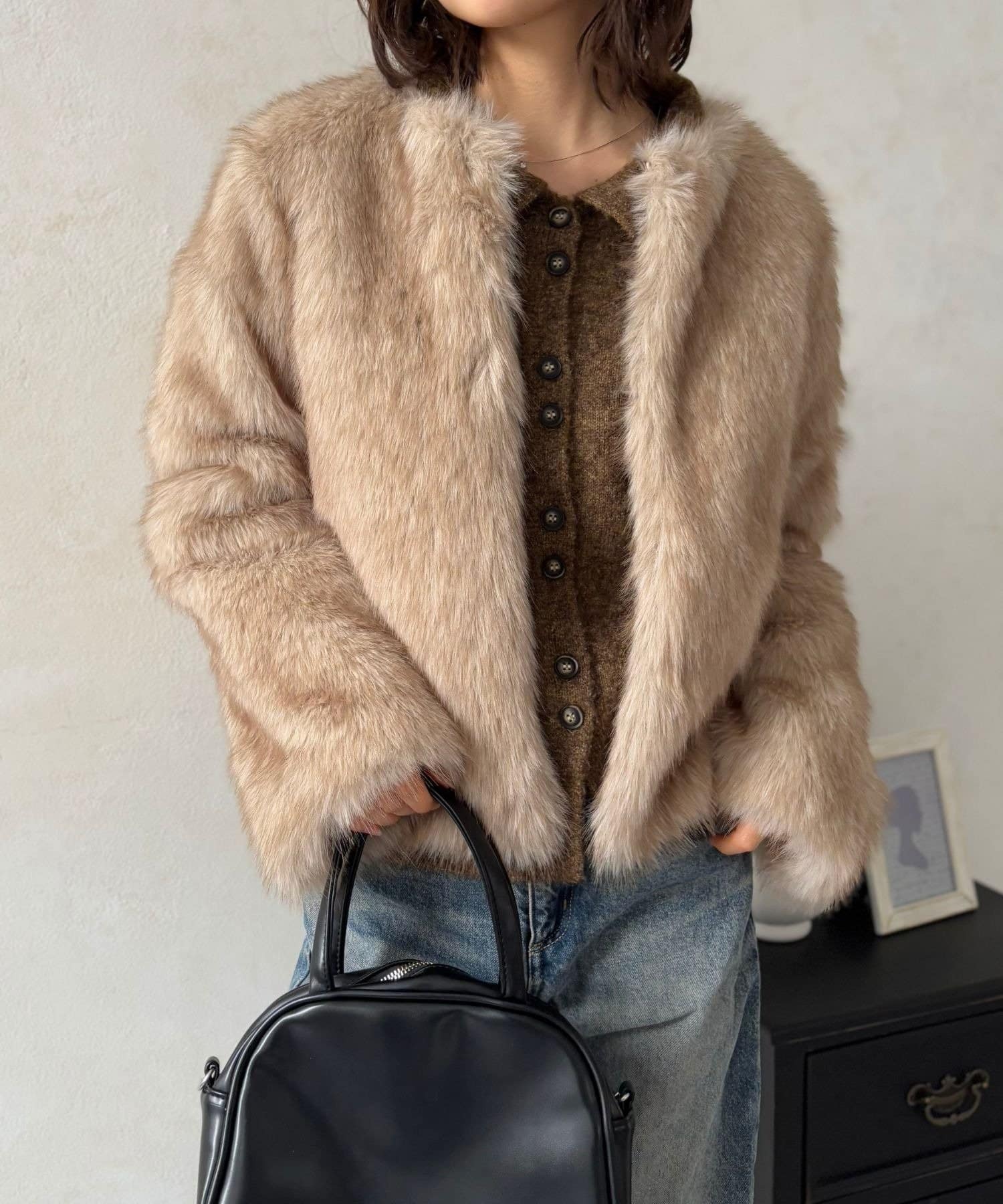 【上品見え/スタイルアップ】ノーカラーファージャケット