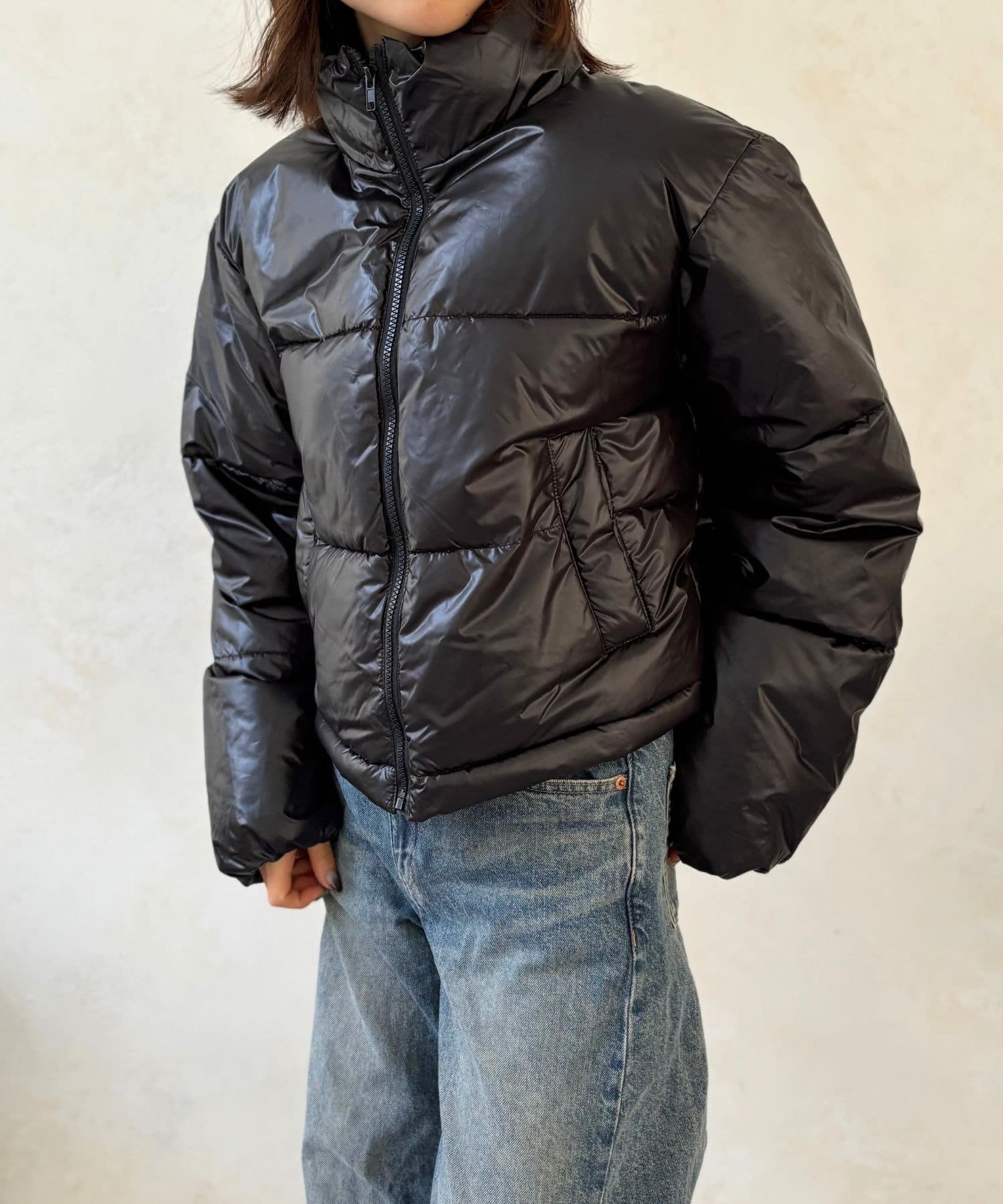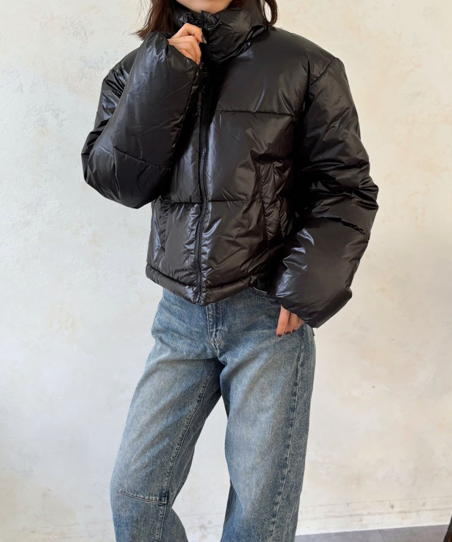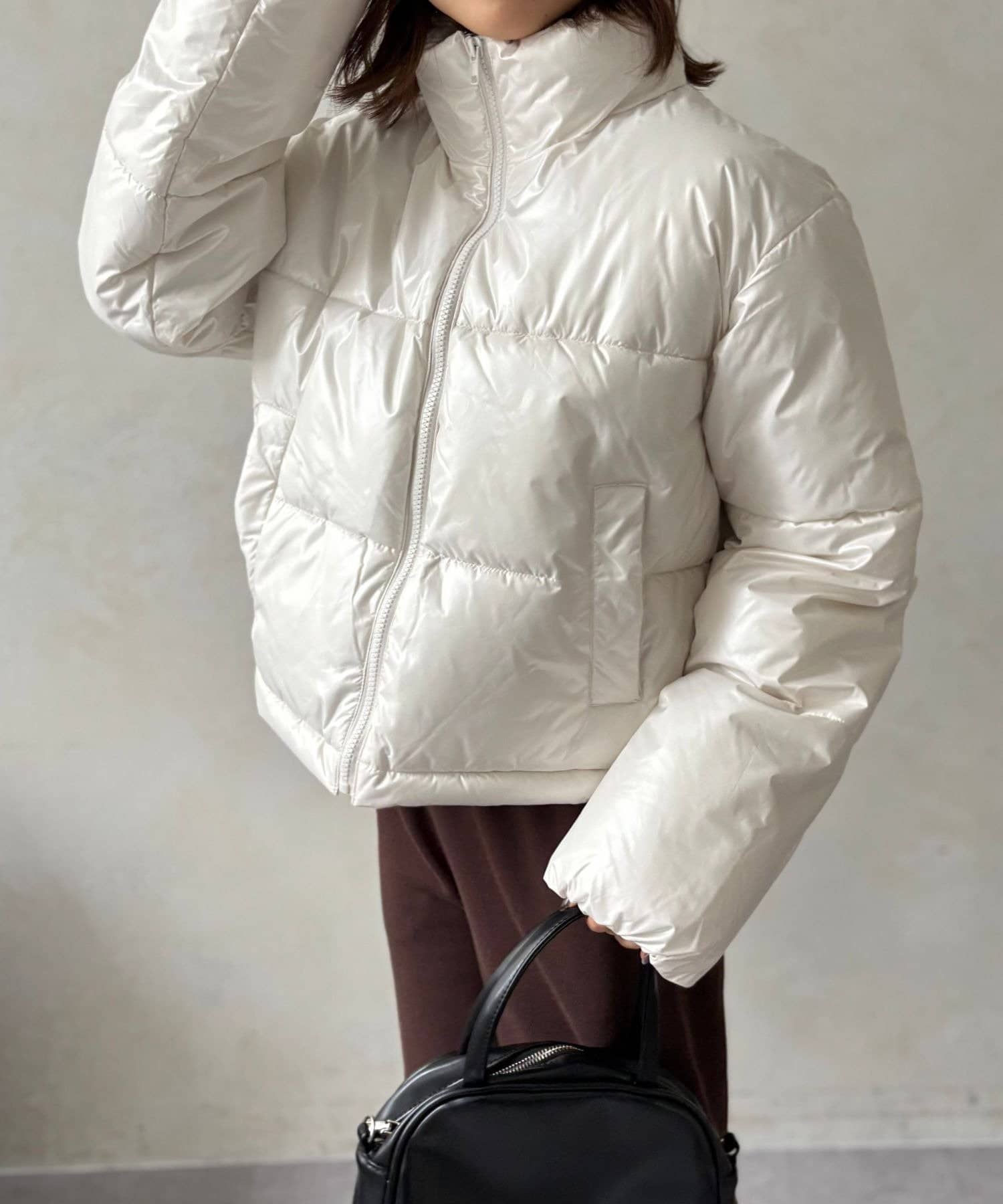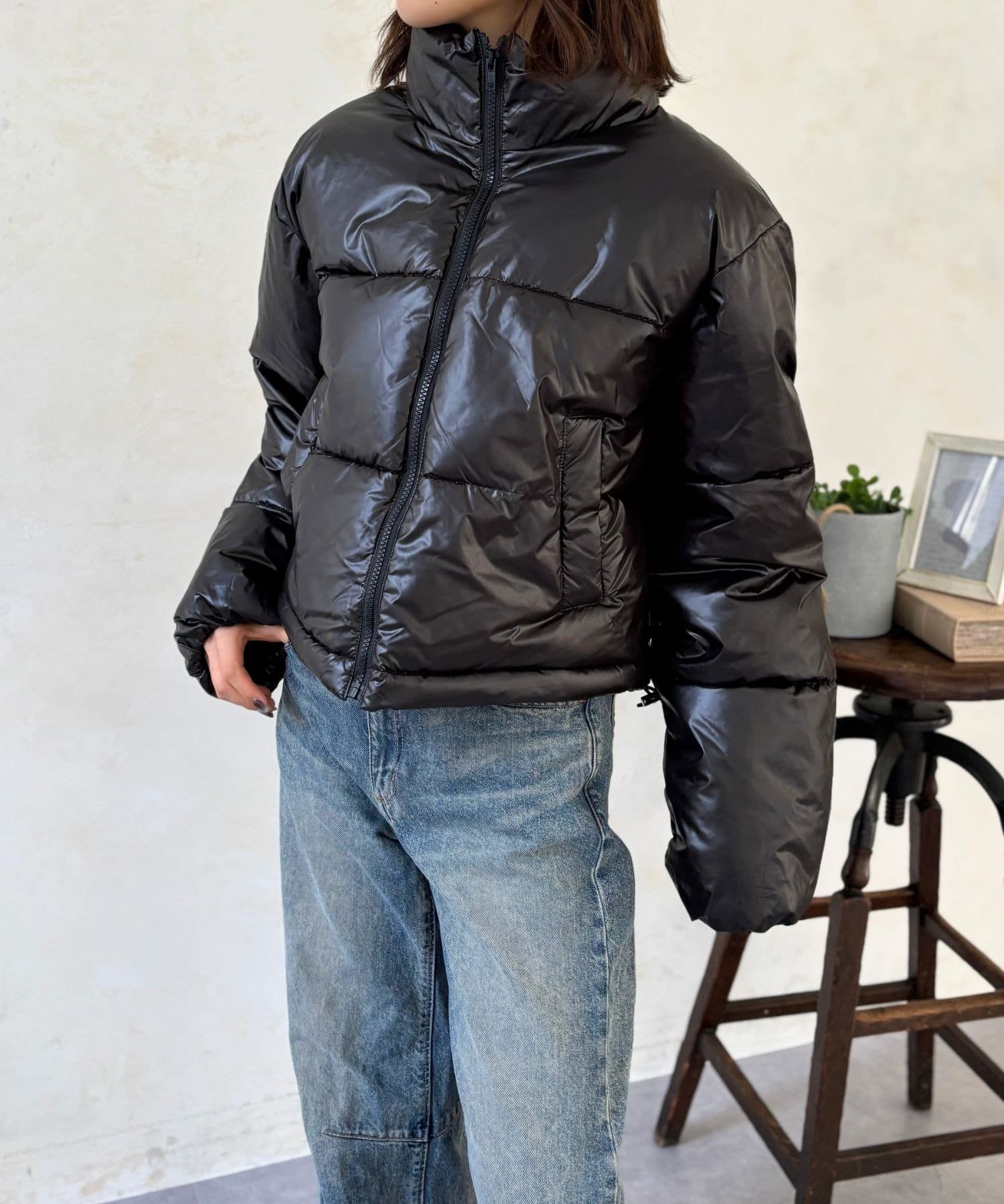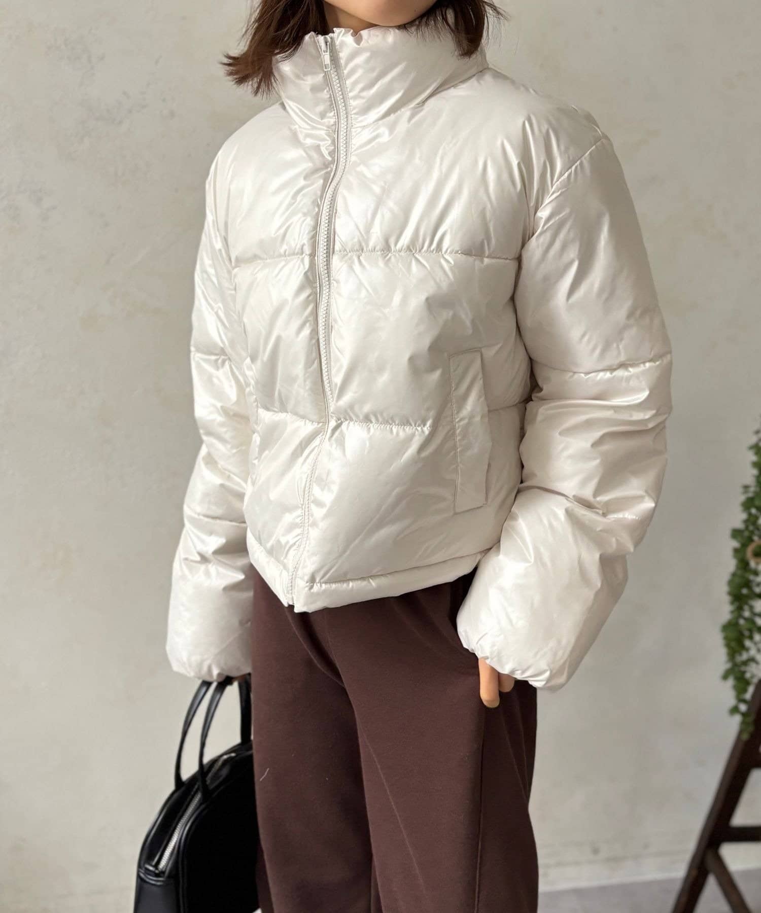 光沢感が魅力! ふんわり暖かショート丈中綿ブルゾン